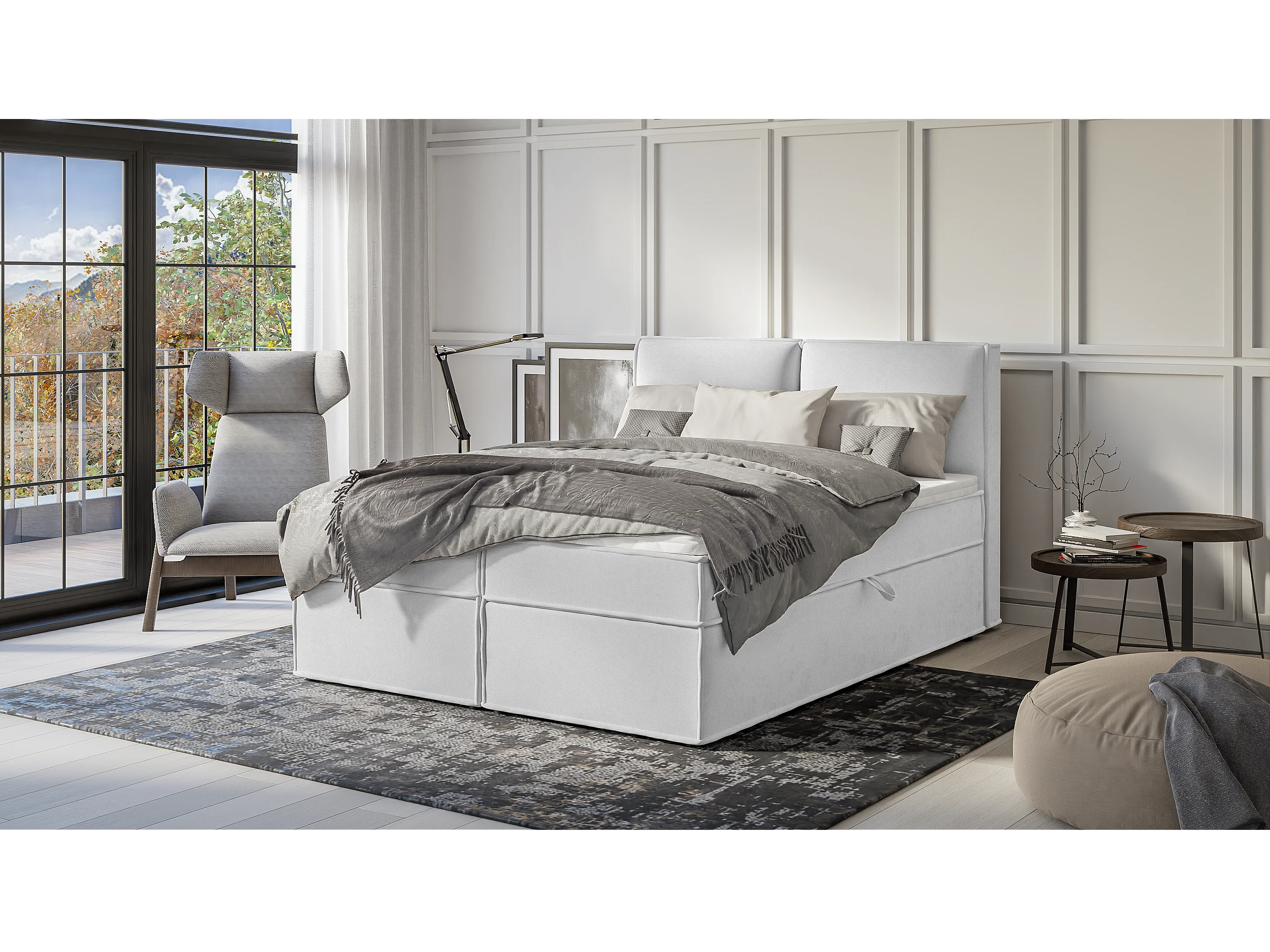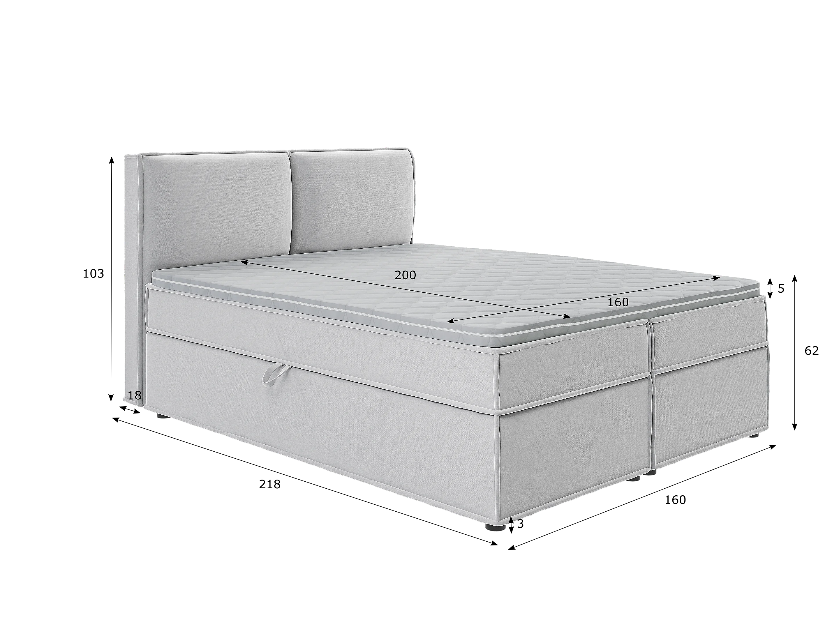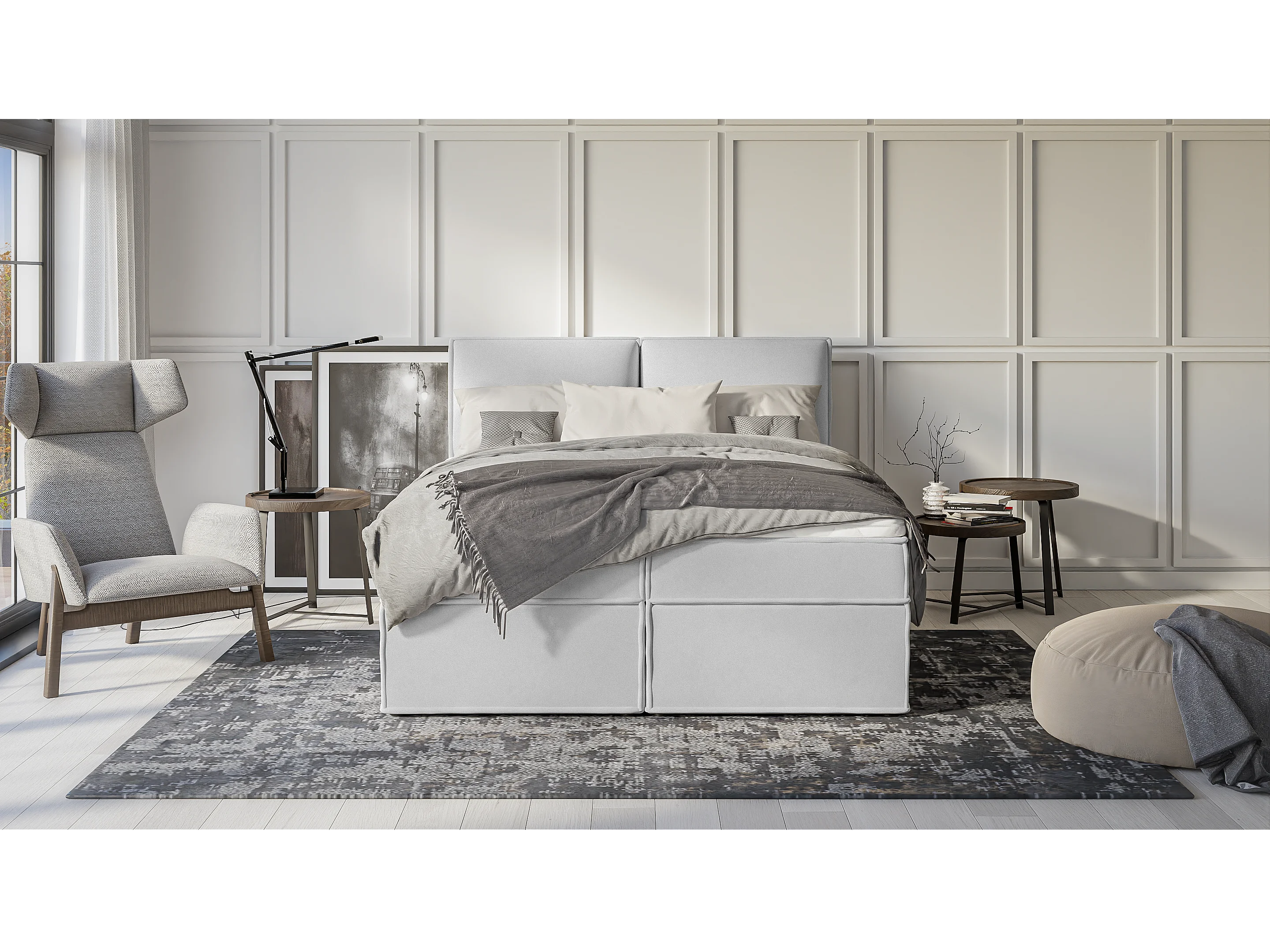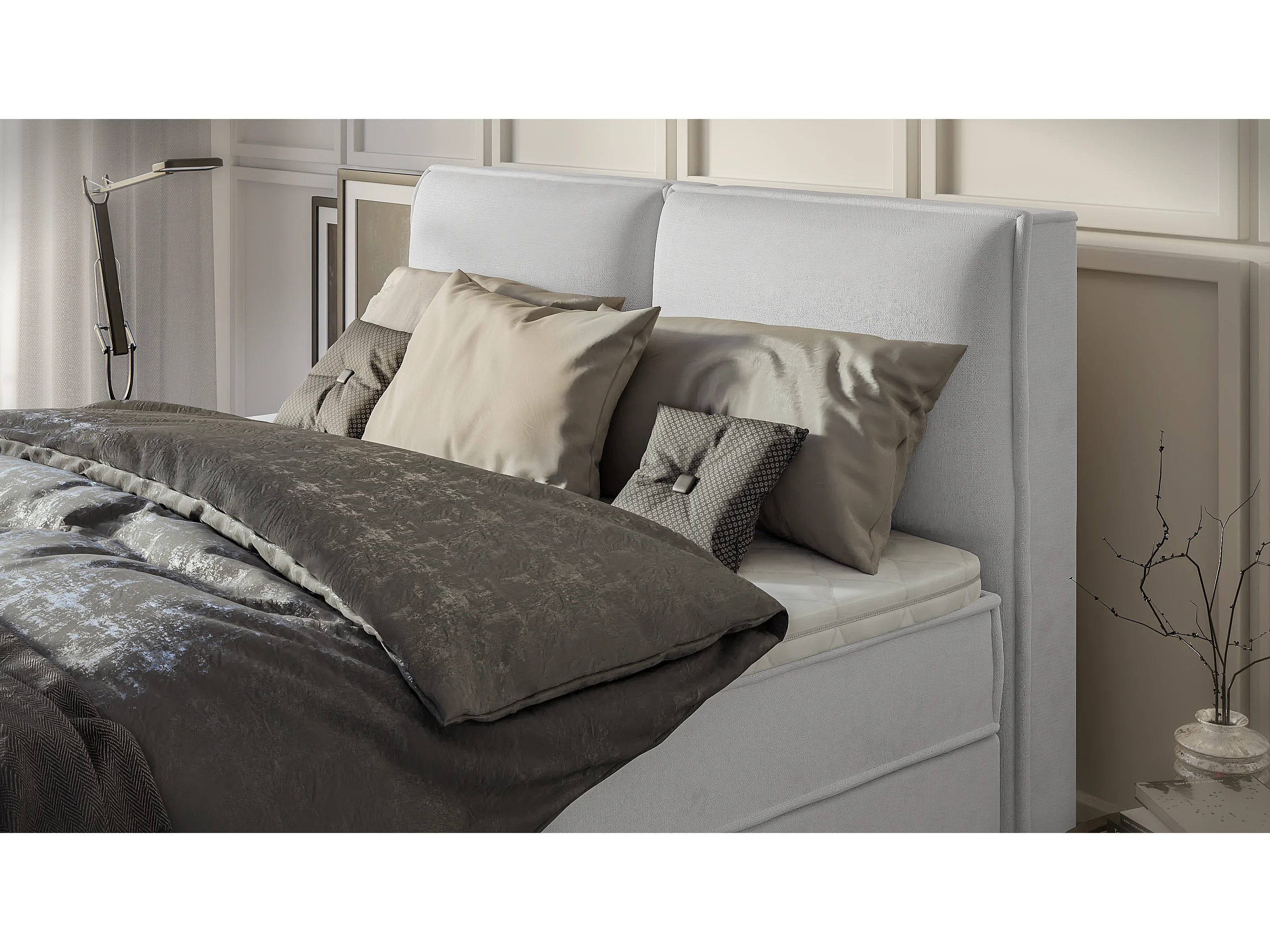 Dexter - Modernes Boxspringbett 160x200 mit Topper und Bettkästen aus Silber Luxusmicrofaser
