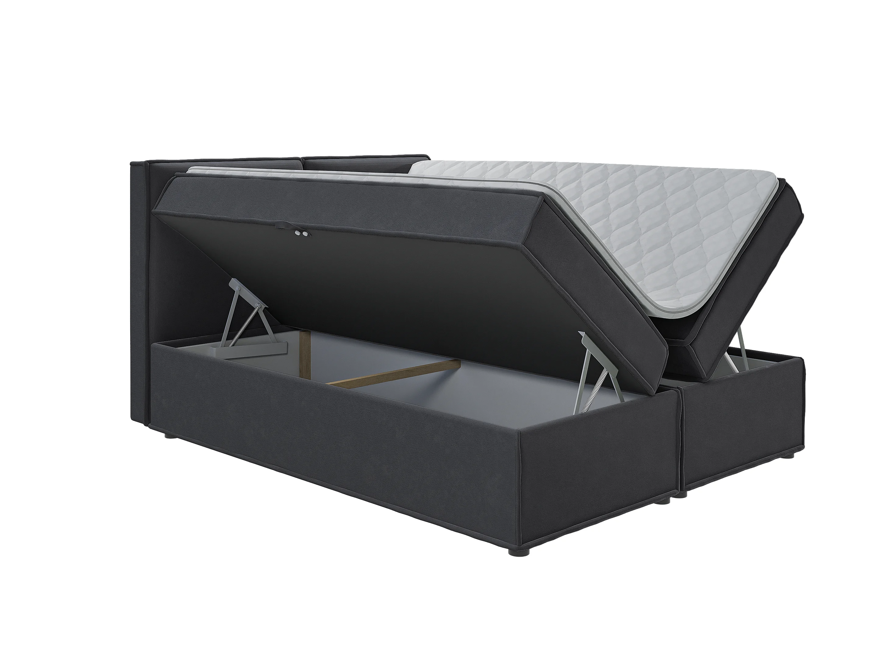Dexter - Modernes Boxspringbett 160x200 mit Topper und Bettkästen aus Graphit Luxusmicrofaser