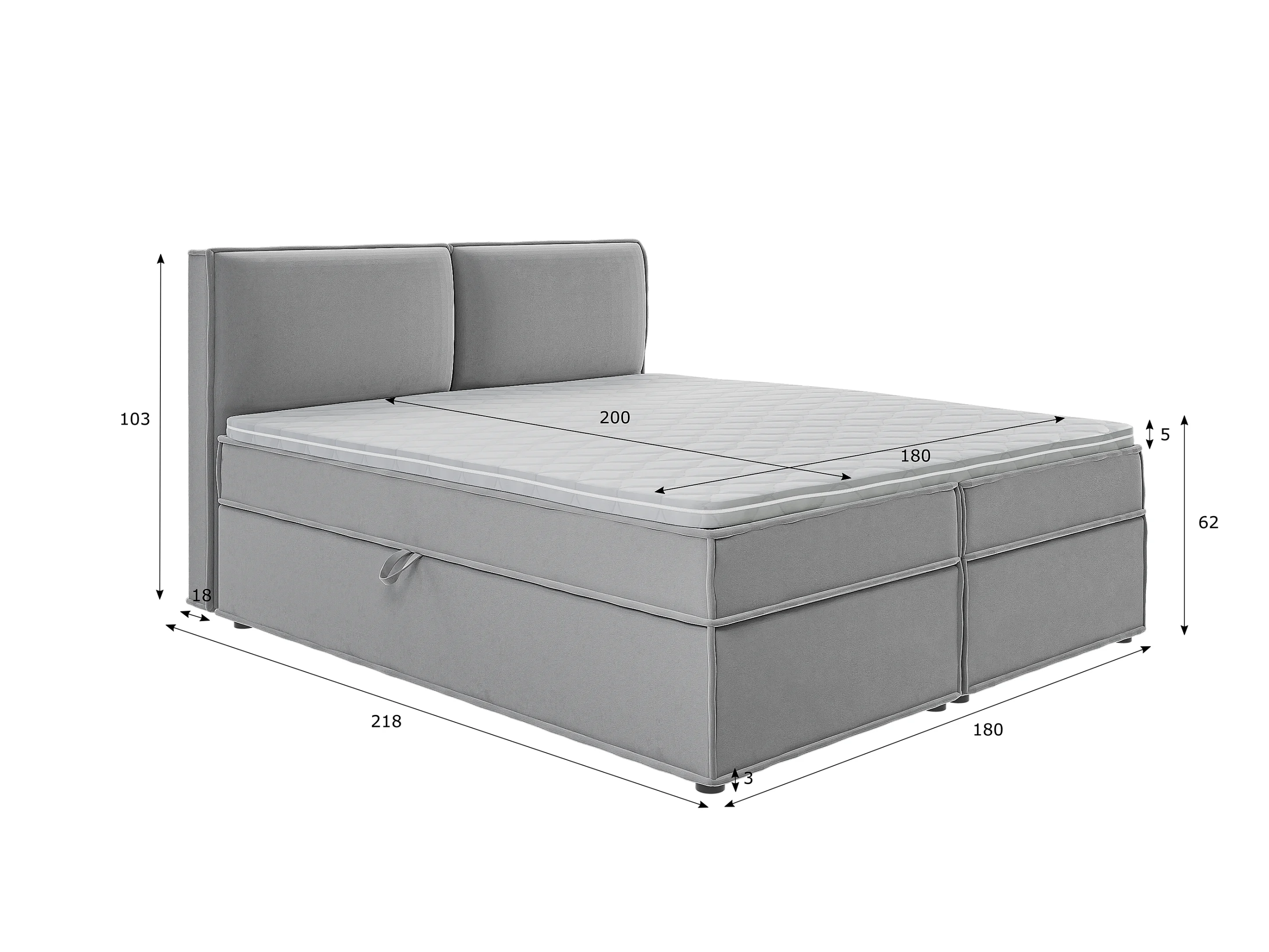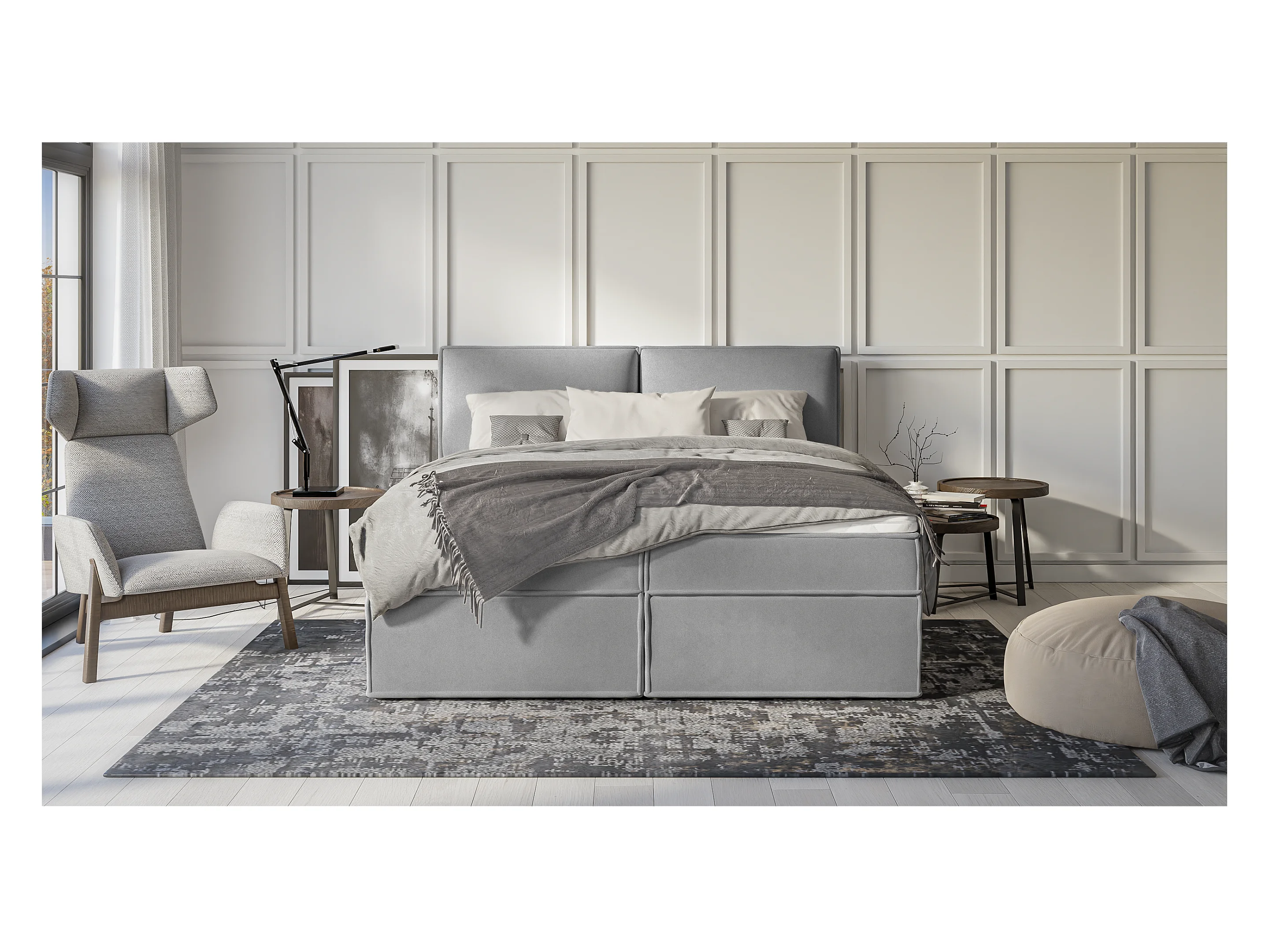 Dexter - Modernes Boxspringbett 180x200 mit Topper und Bettkästen aus Grau Luxusmicrofaser