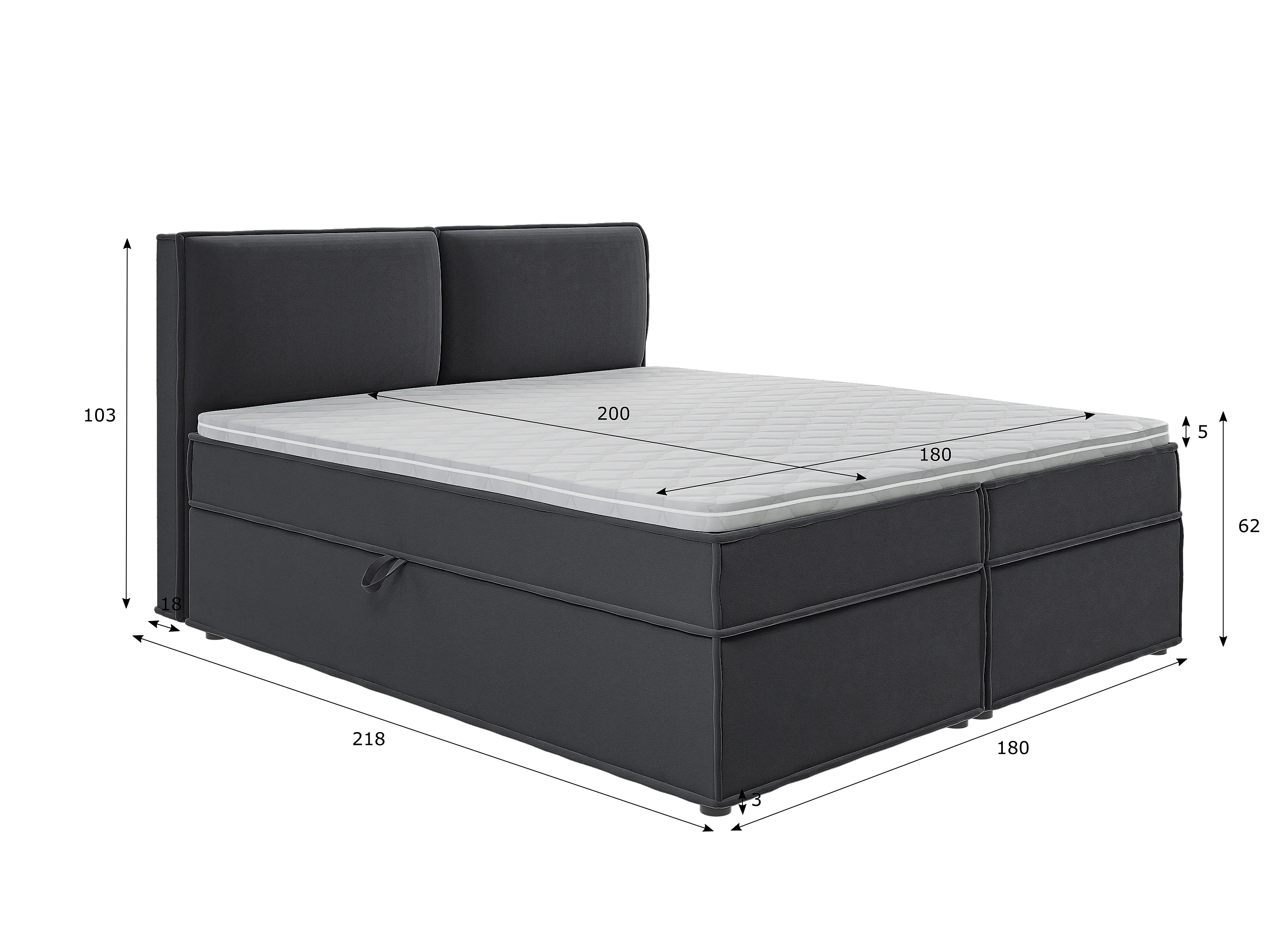 Dexter - Modernes Boxspringbett 180x200 mit Topper und Bettkästen aus Graphit Luxusmicrofaser