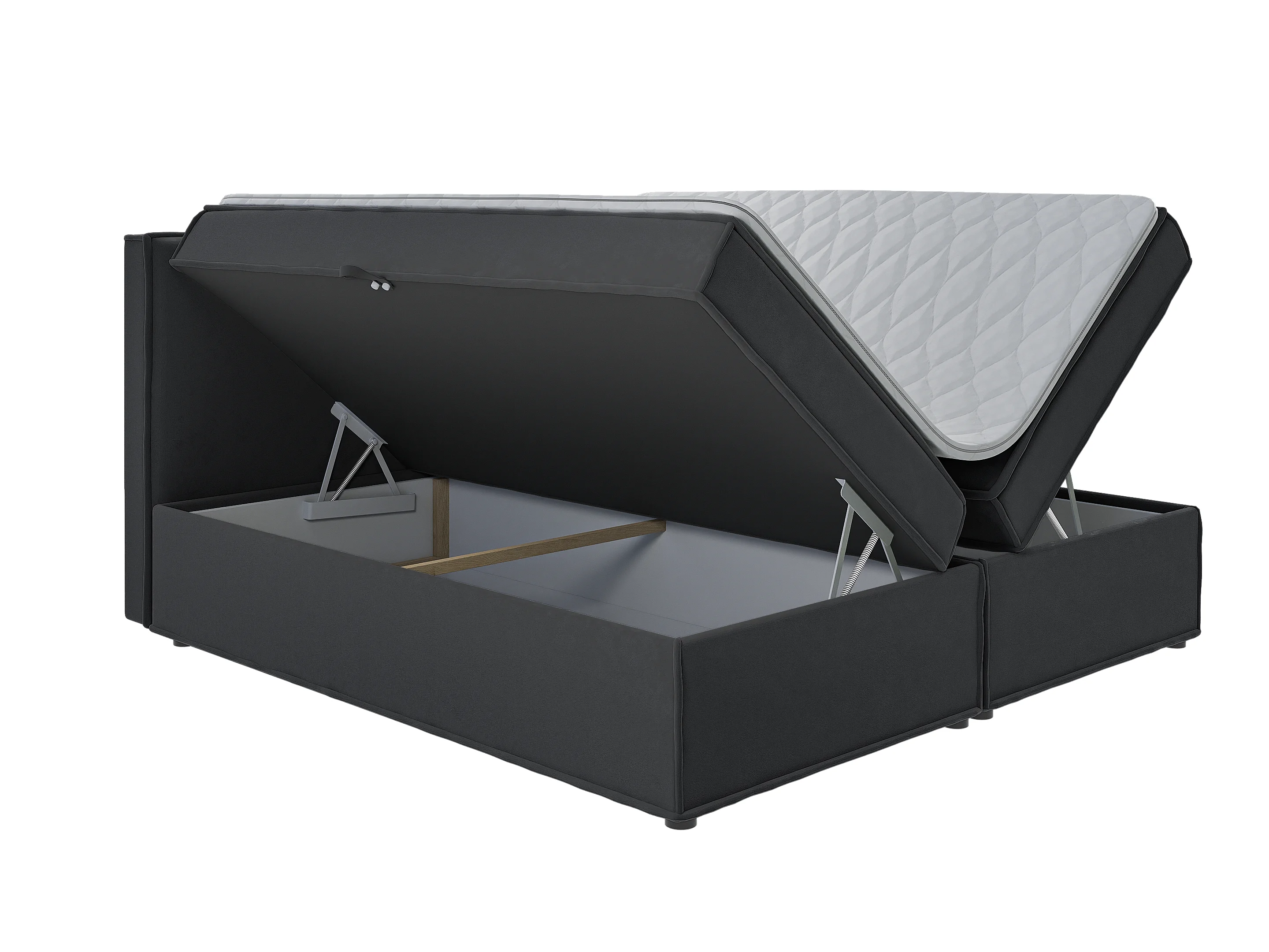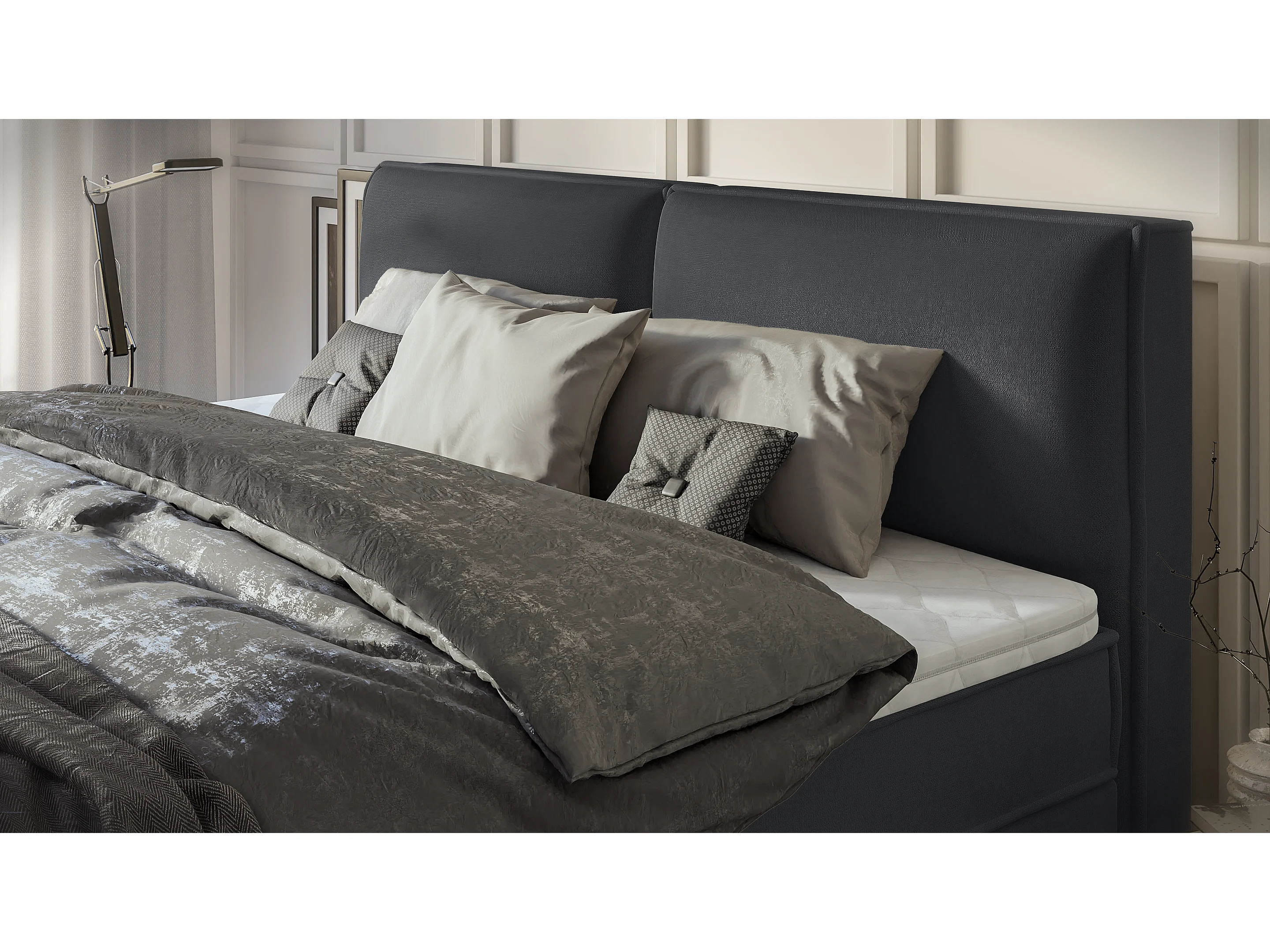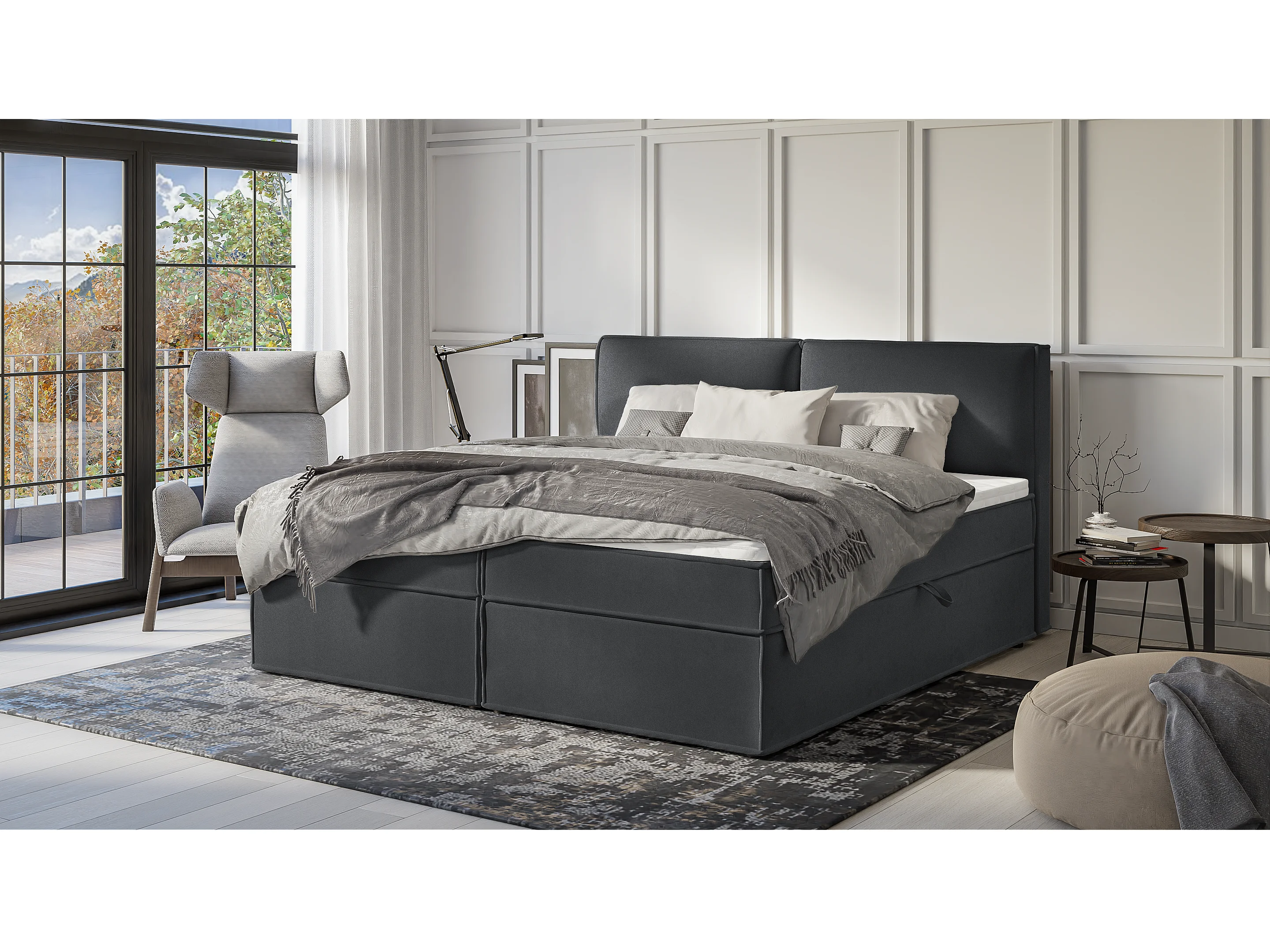 Dexter - Modernes Boxspringbett 200x200 mit Topper und Bettkästen aus Graphit Luxusmicrofaser