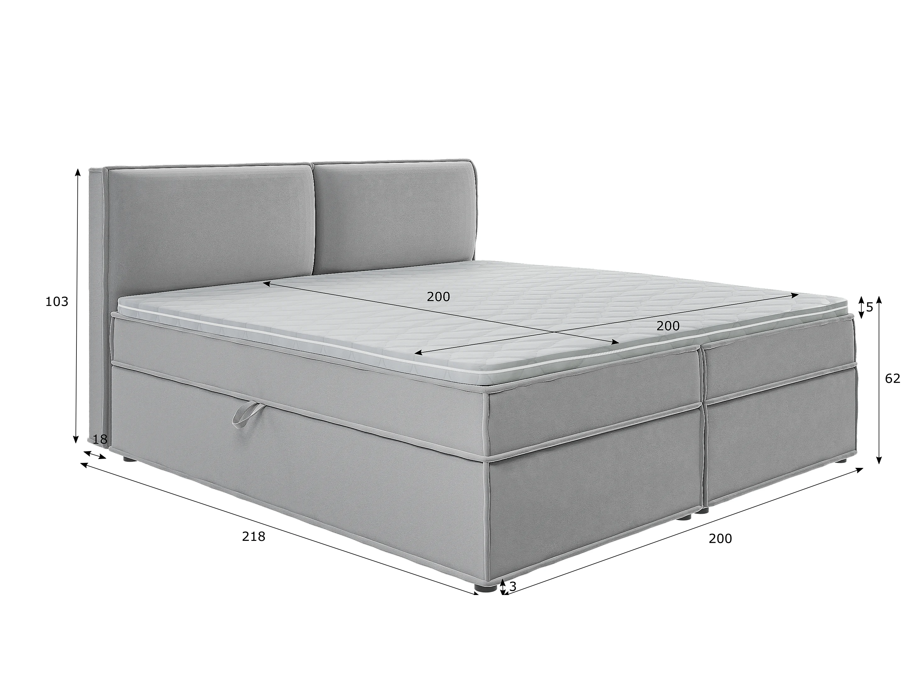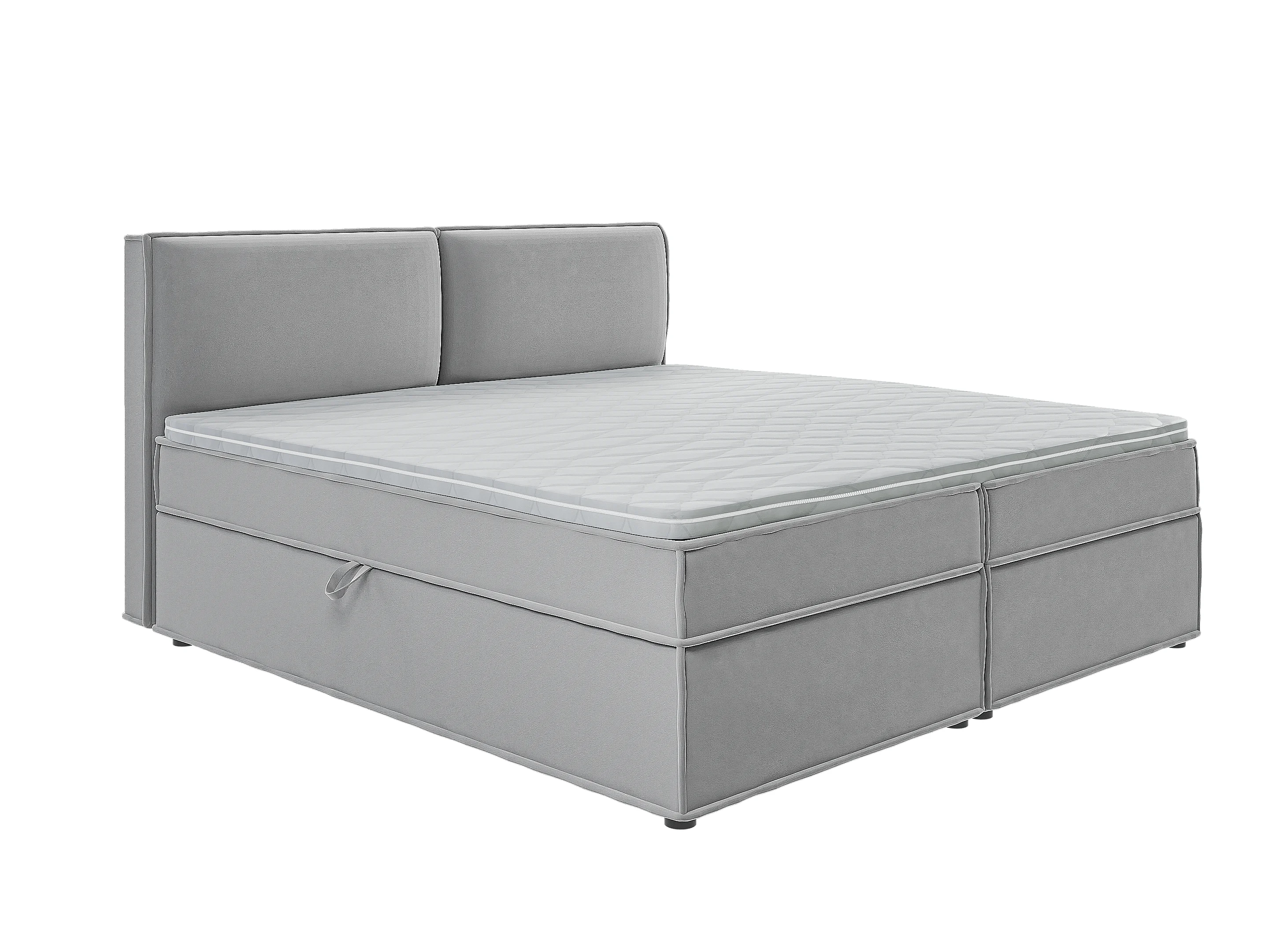 Dexter - Modernes Boxspringbett 200x200 mit Topper und Bettkästen aus Grau Luxusmicrofaser