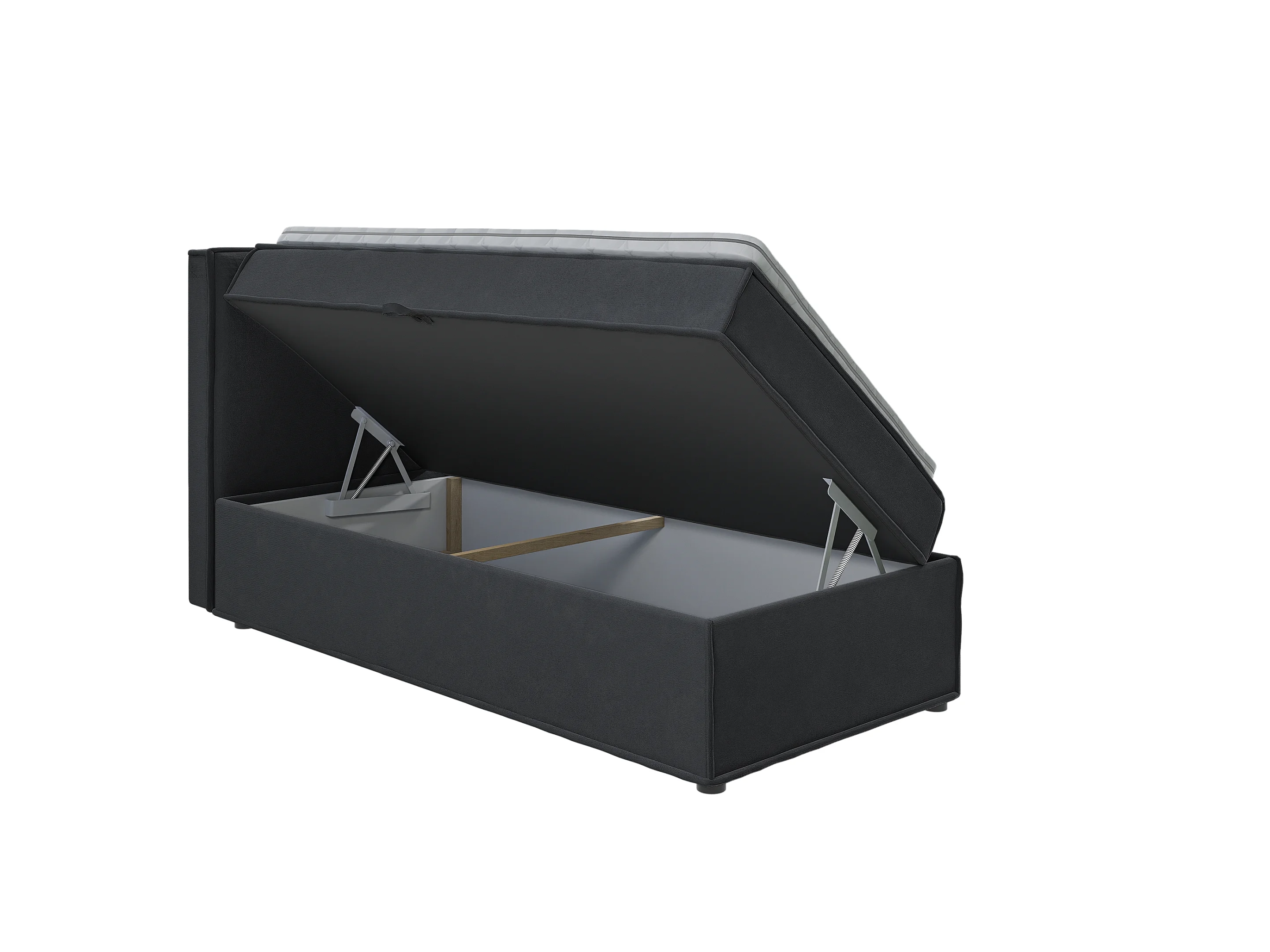 Dexter - Modernes Boxspringbett 90x200 mit Topper und Bettkästen aus Graphit Luxusmicrofaser