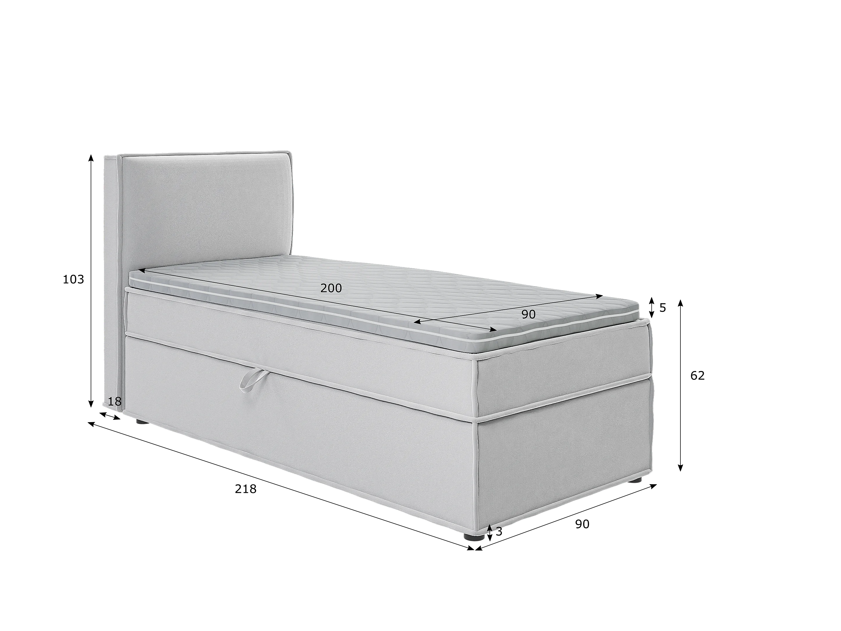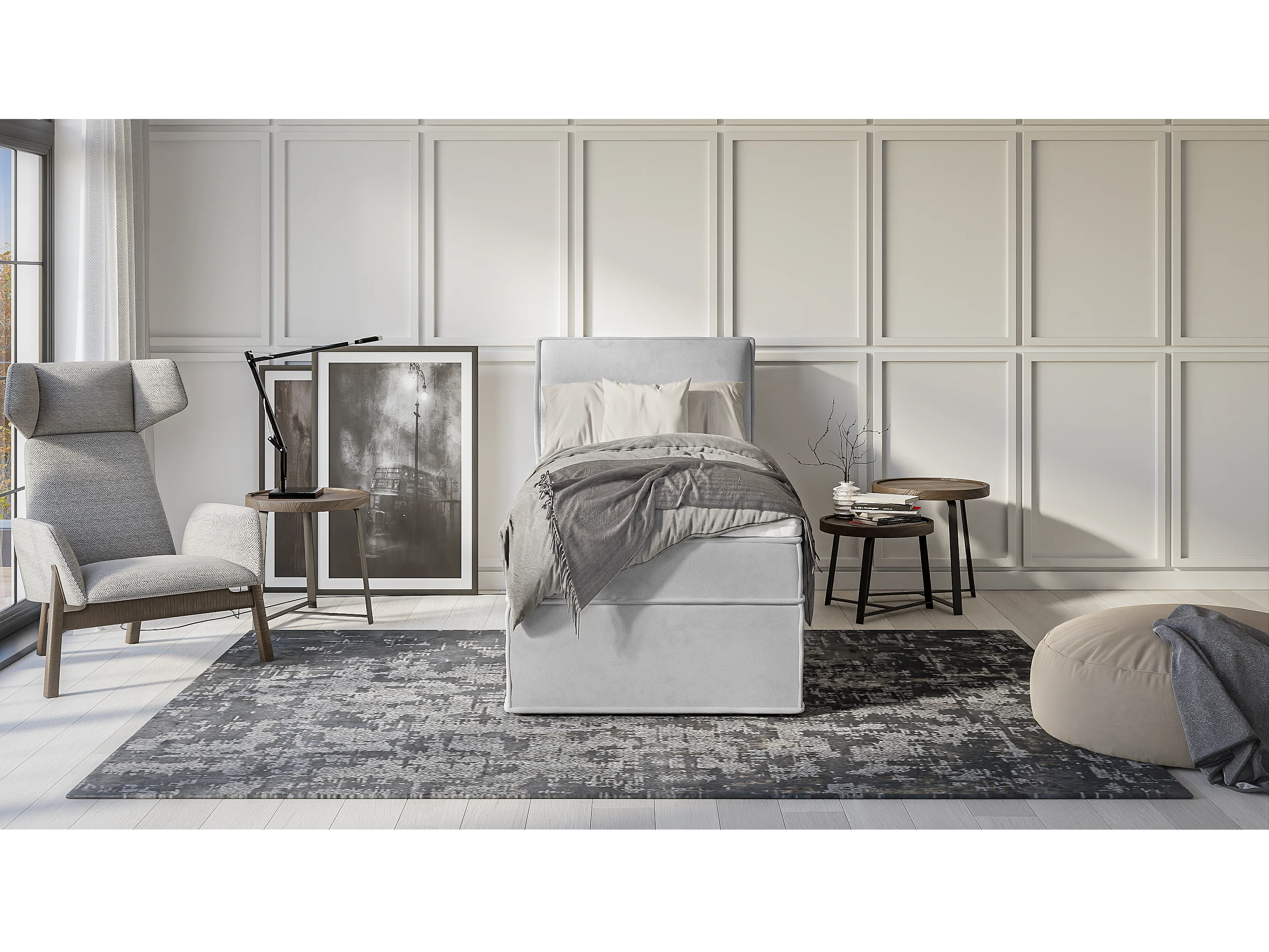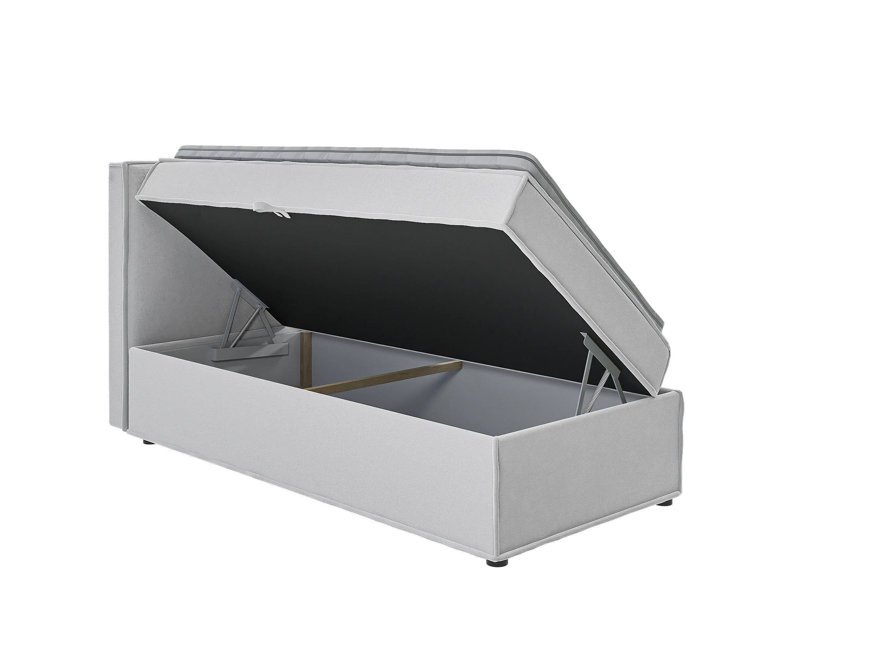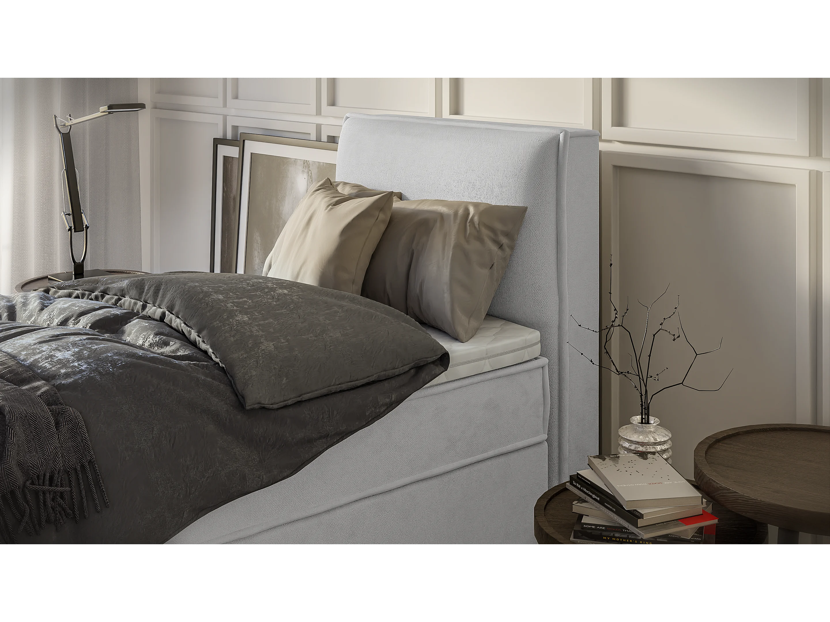Dexter - Modernes Boxspringbett 90x200 mit Topper und Bettkästen aus Silber Luxusmicrofaser