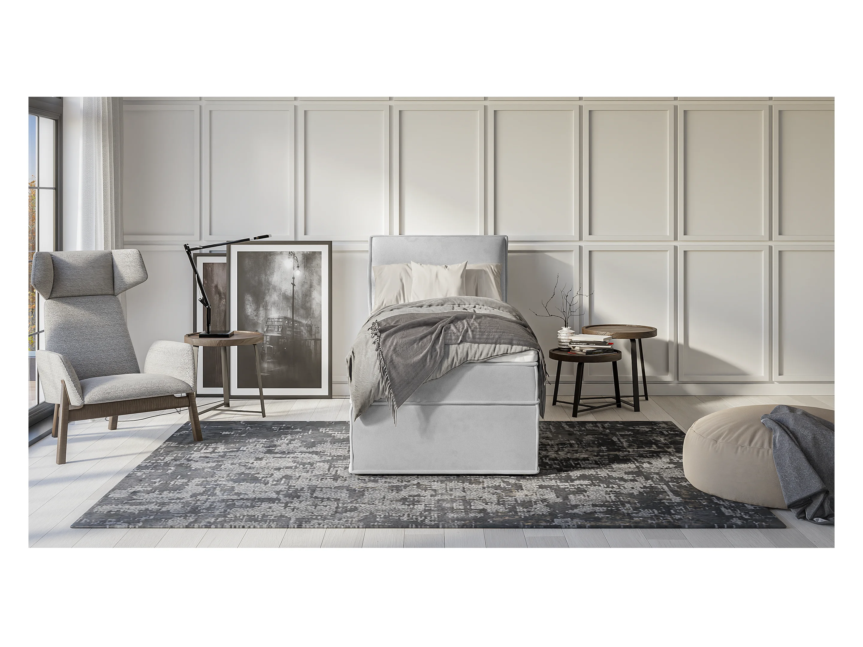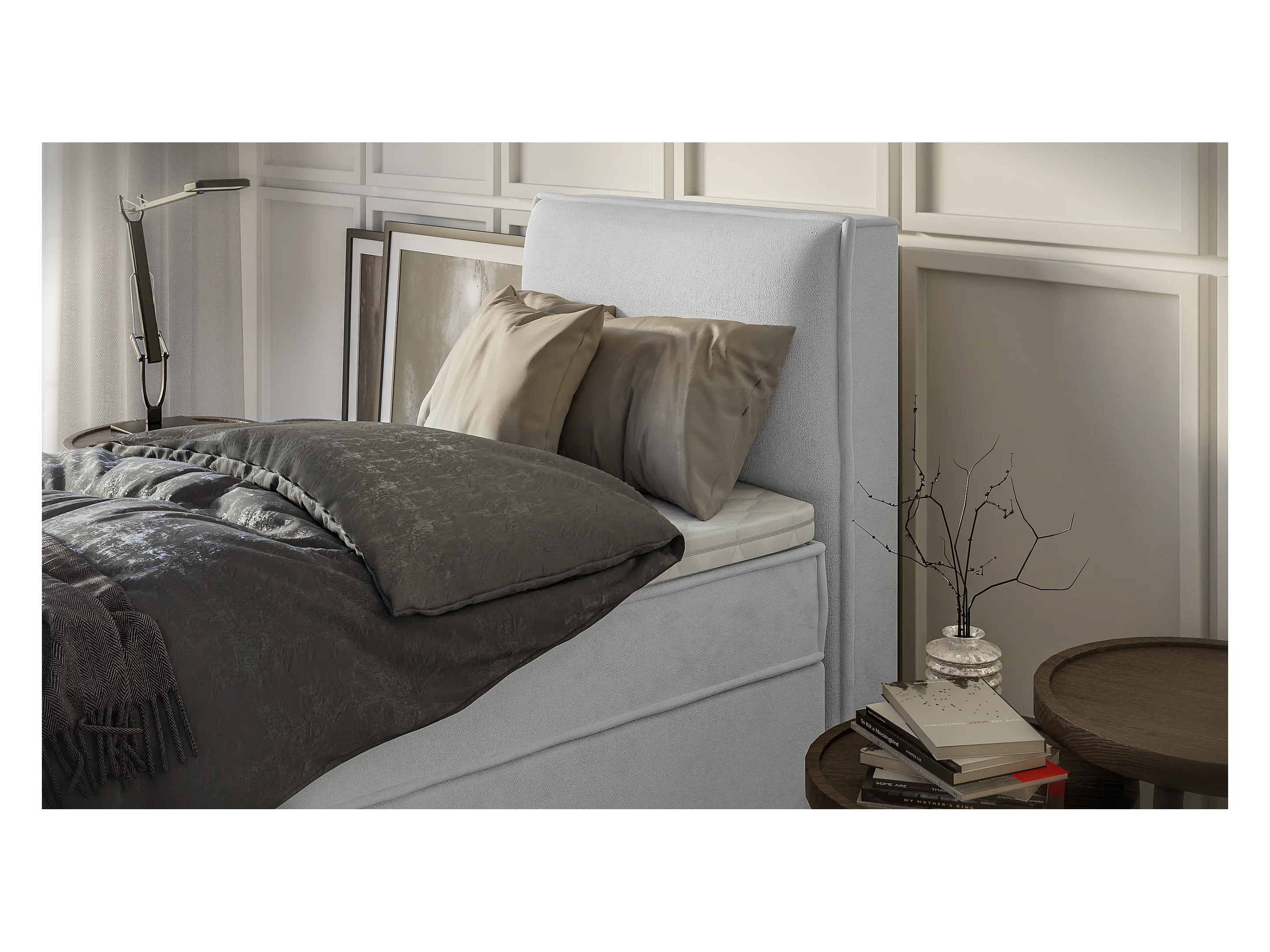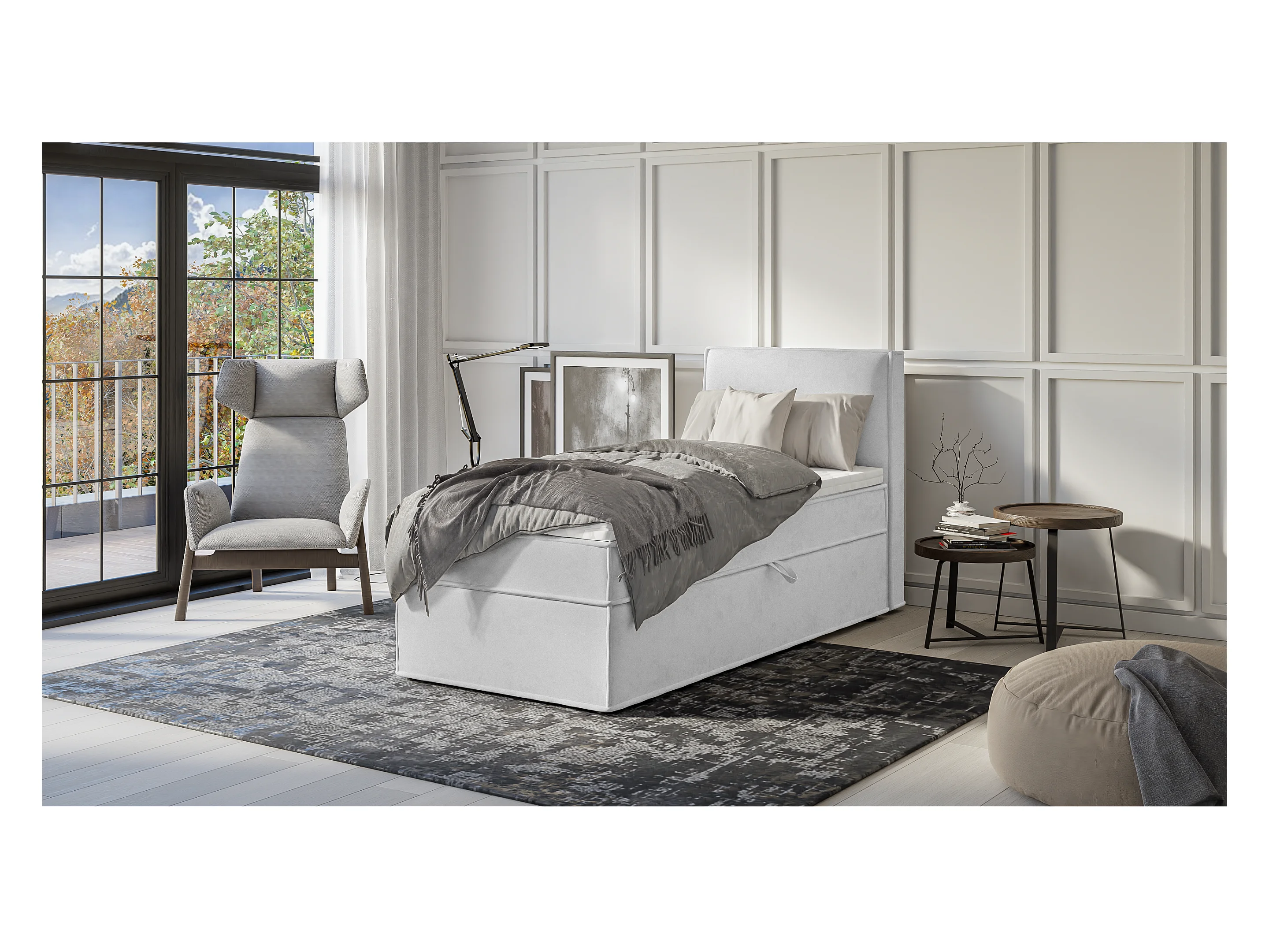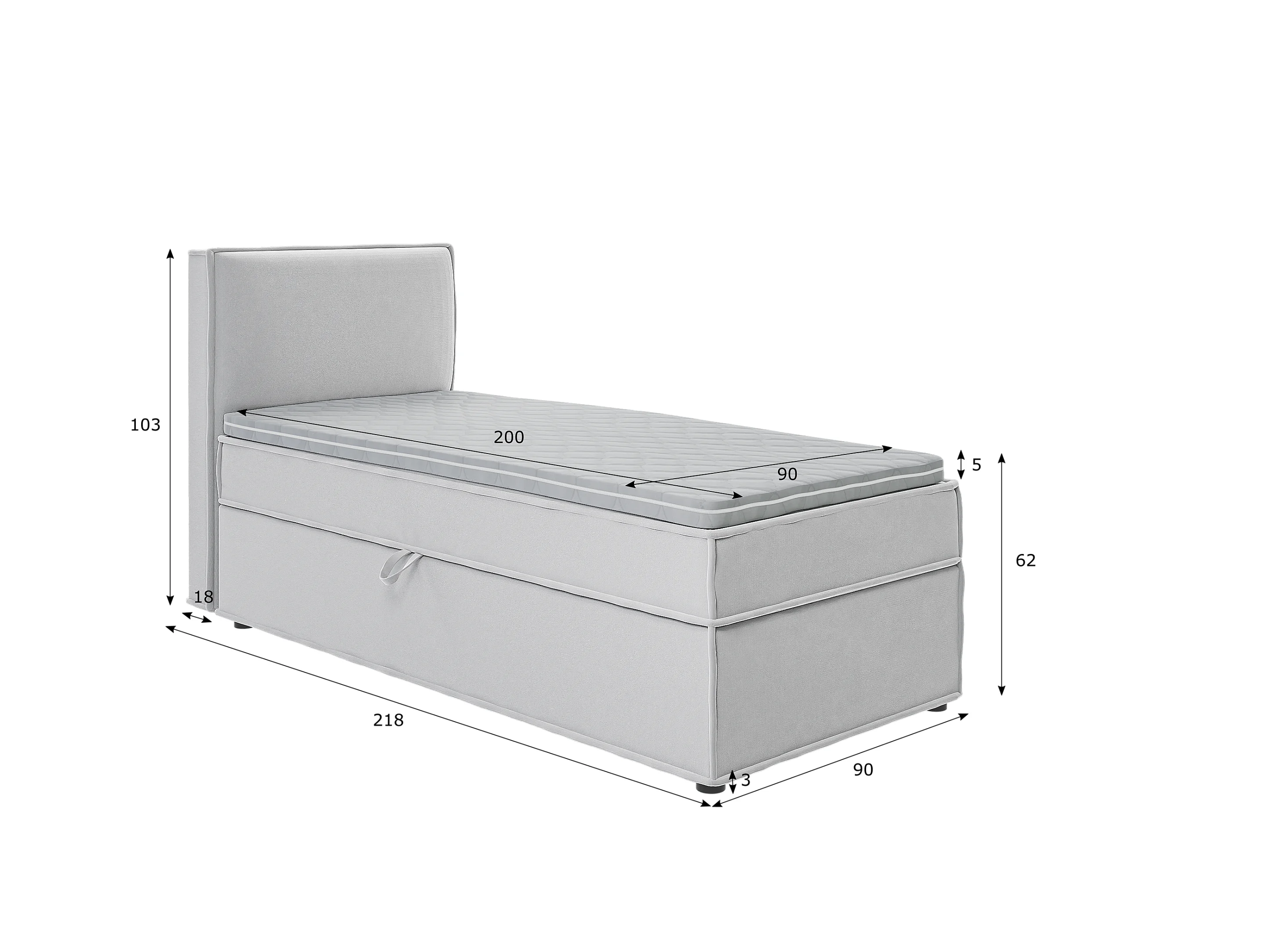 Dexter - Modernes Boxspringbett 90x200 mit Topper und Bettkästen aus Silber Luxusmicrofaser