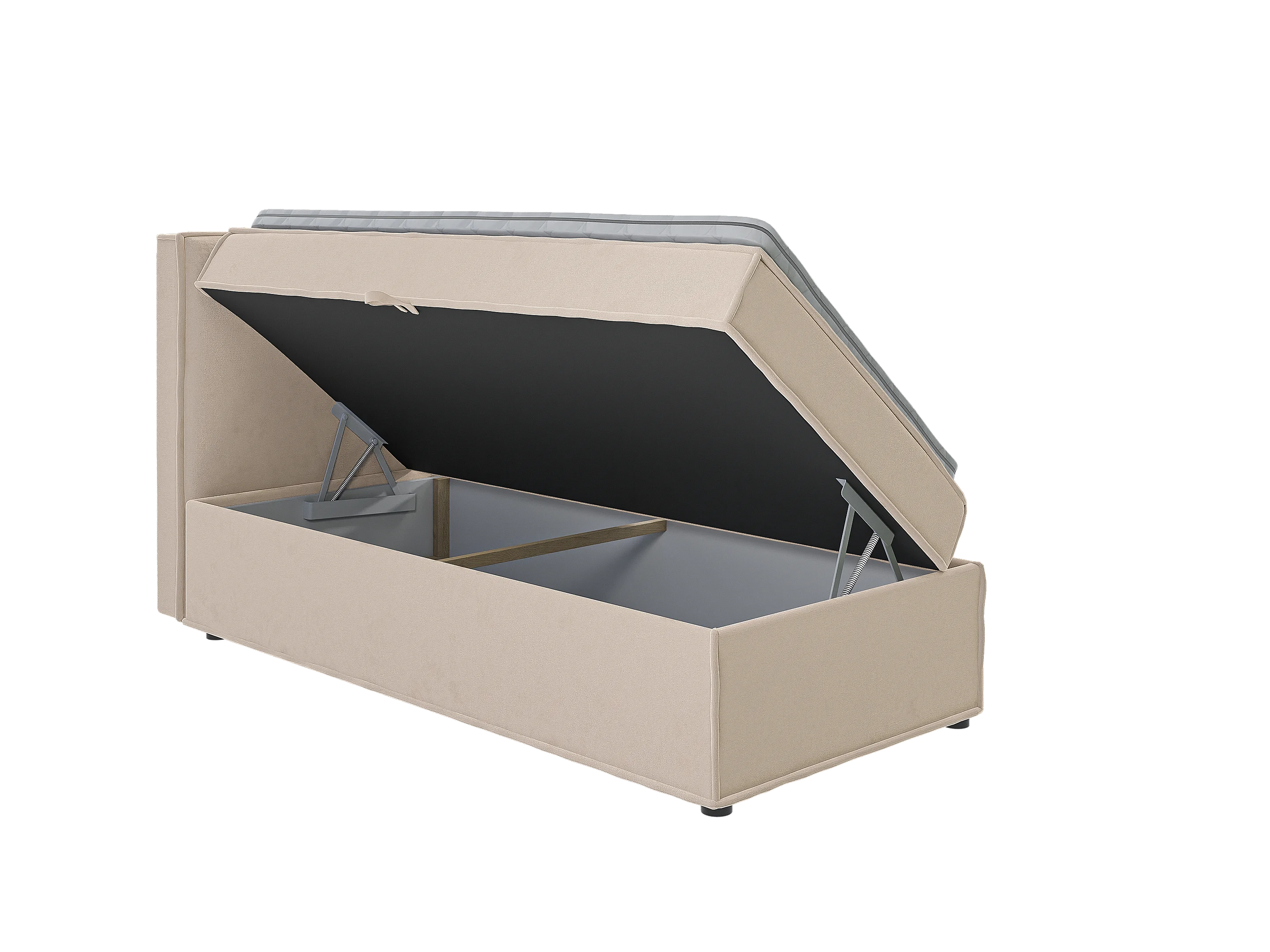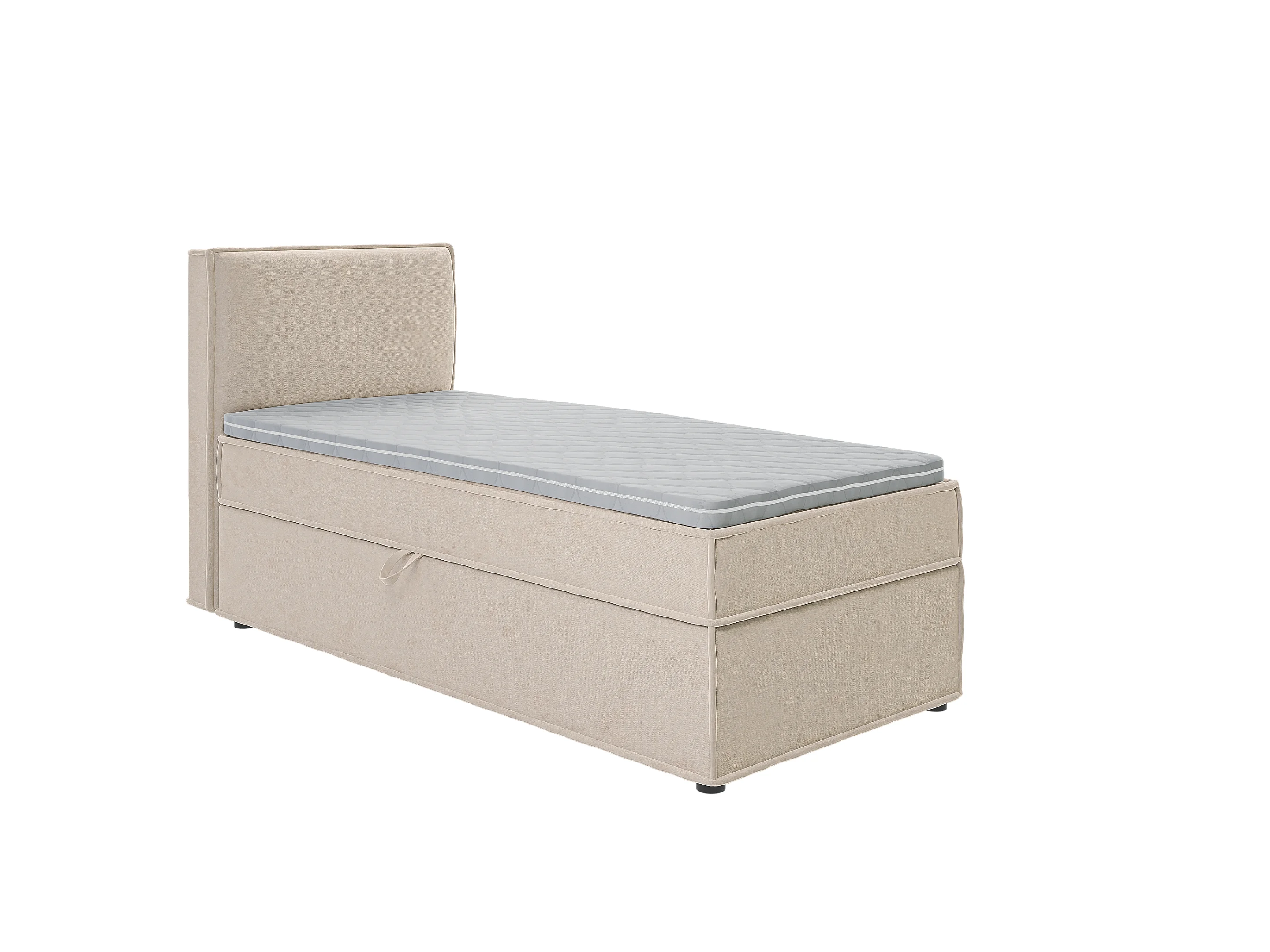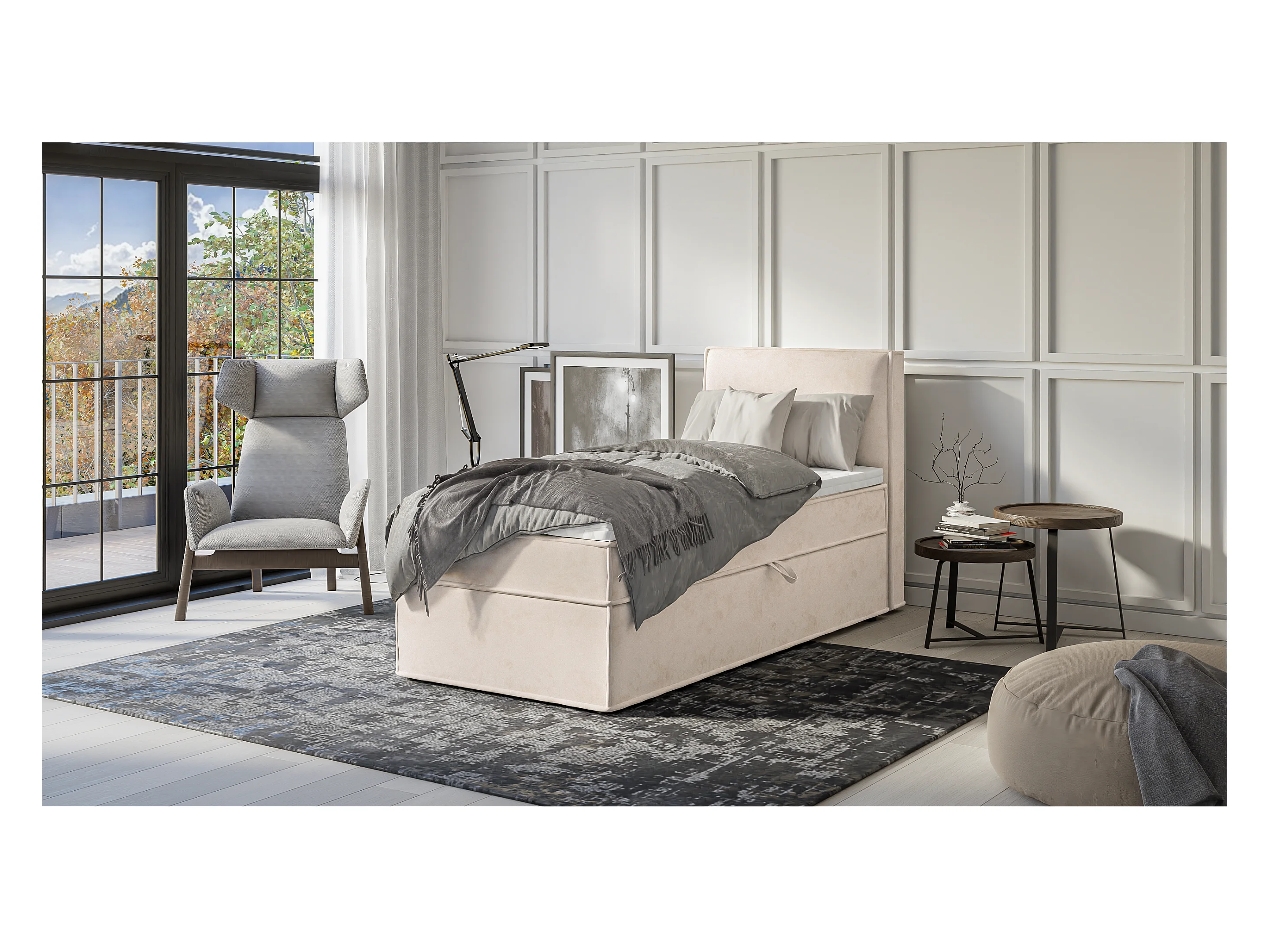 Dexter - Modernes Boxspringbett 90x200 mit Topper und Bettkästen aus Beige Luxusmicrofaser