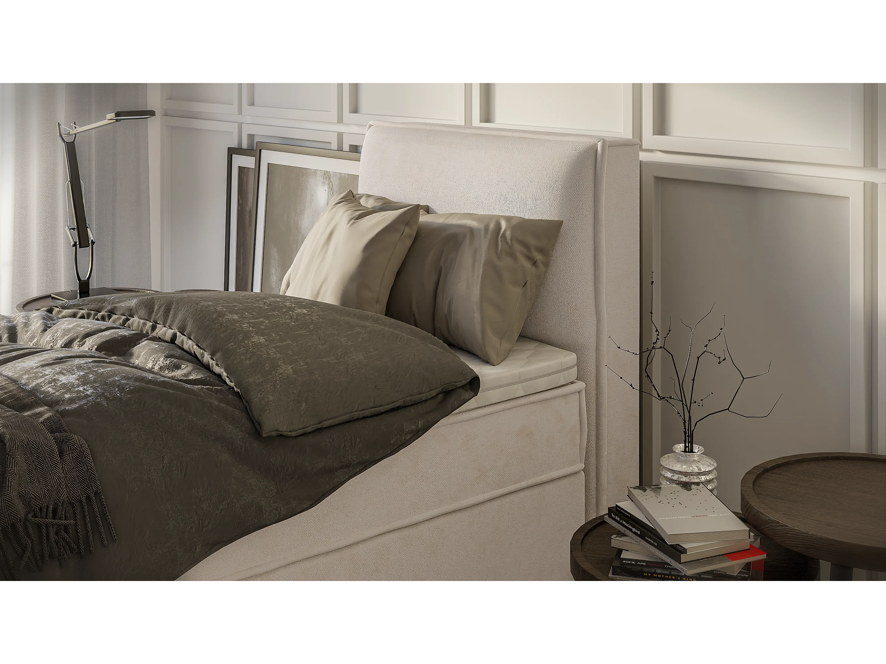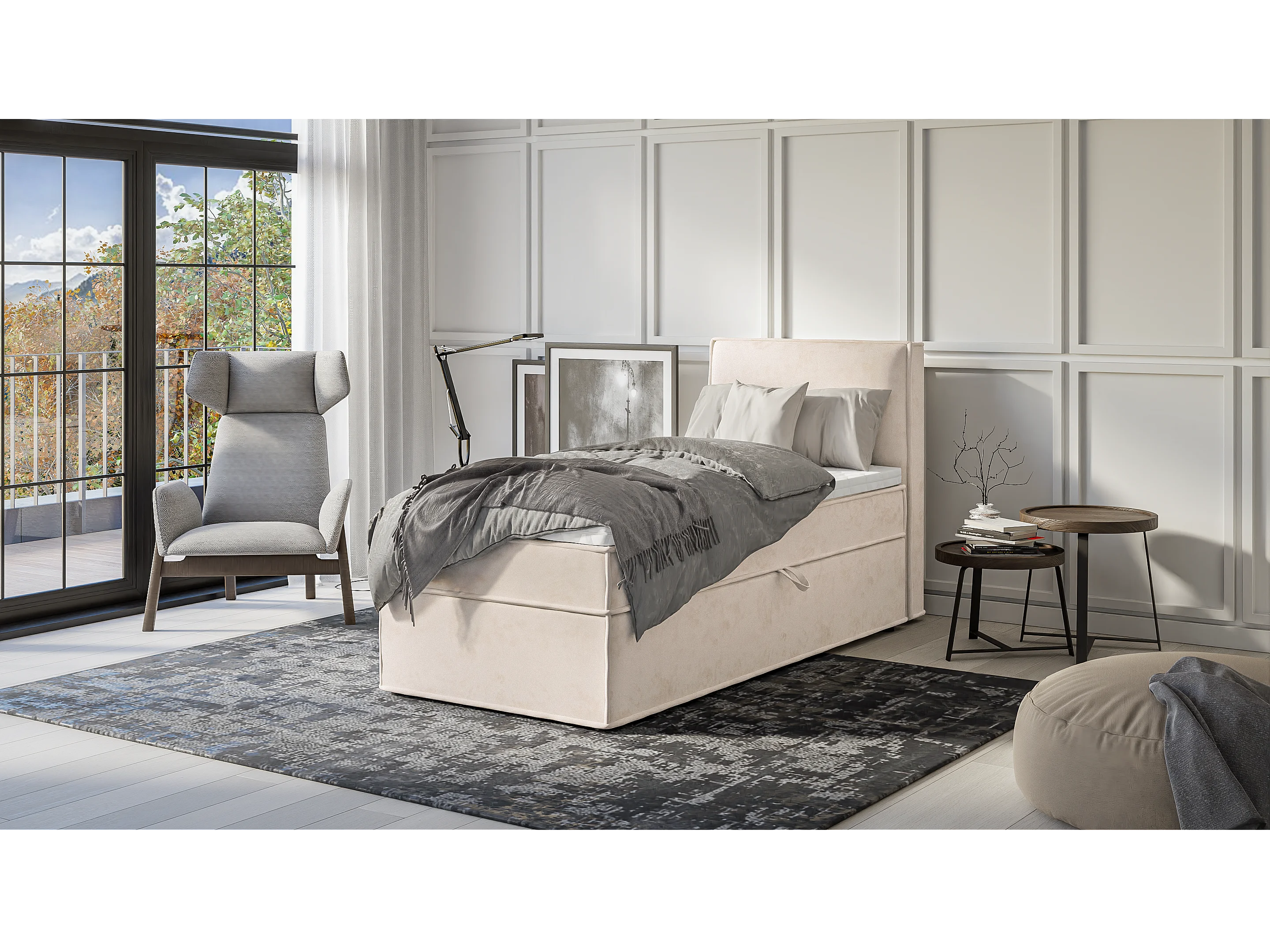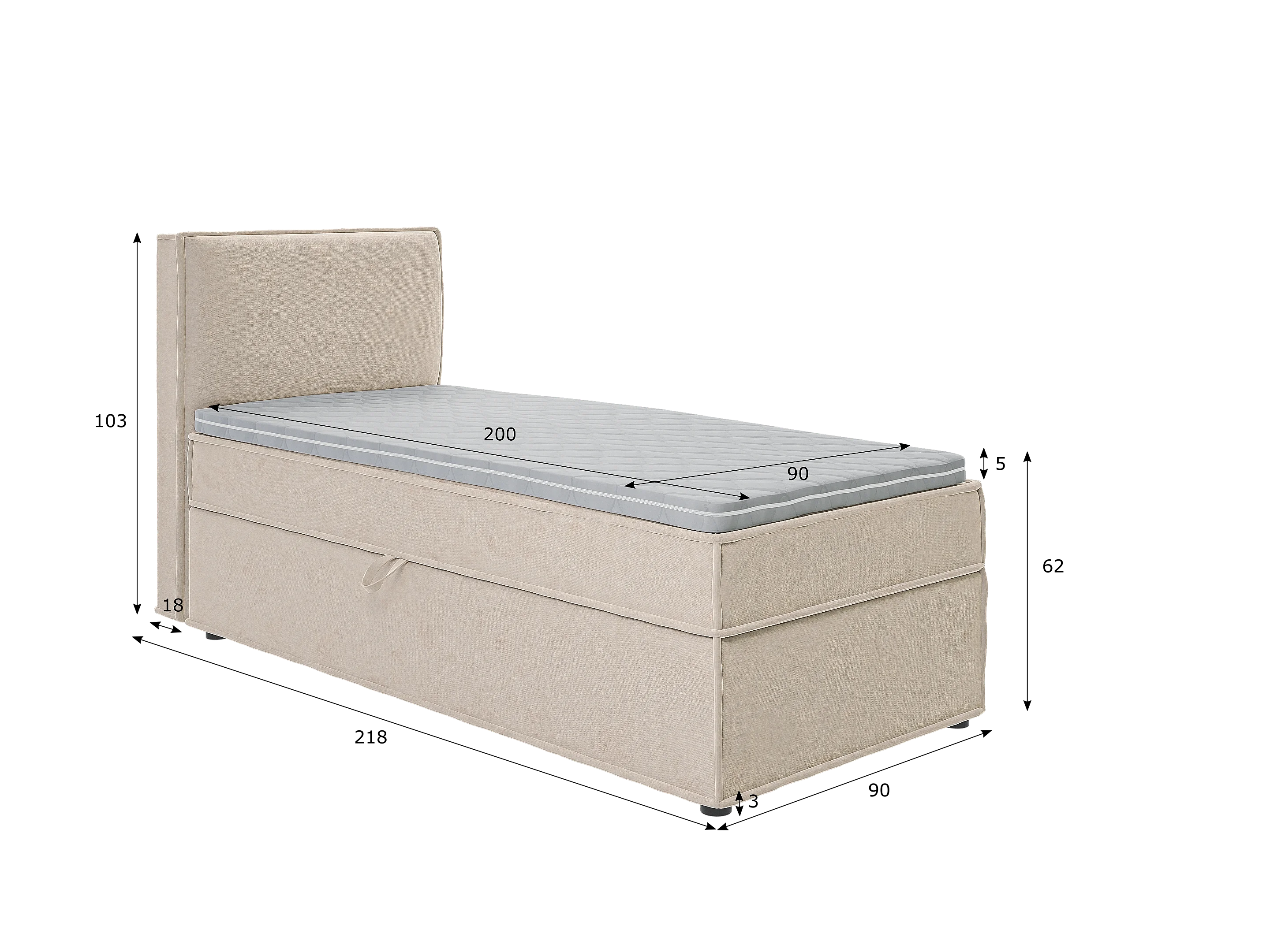 Dexter - Modernes Boxspringbett 90x200 mit Topper und Bettkästen aus Beige Luxusmicrofaser