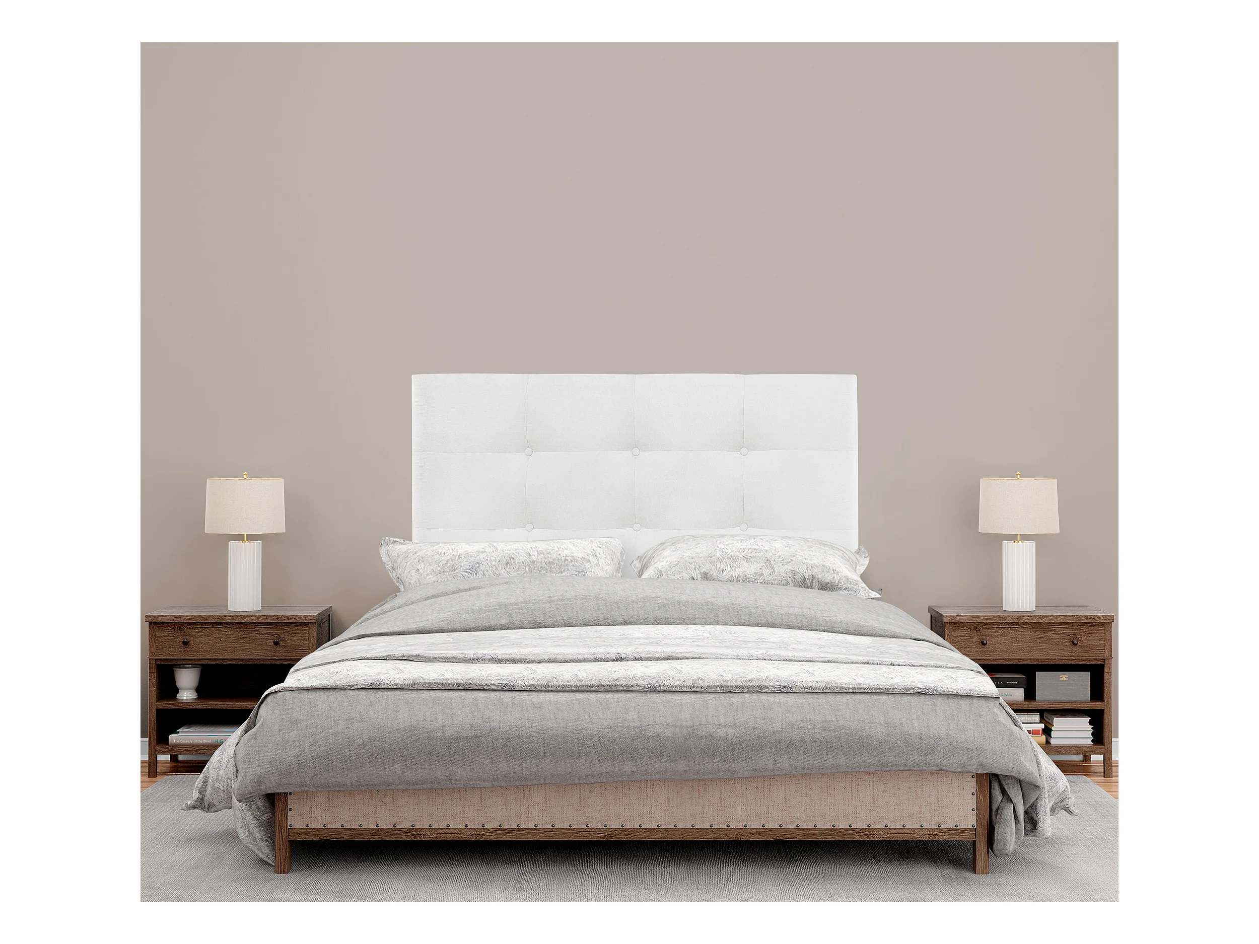 DHOME Aqualine getuftetes Stoffkopfteil 105 x 115 cm mit Bettbeinen 105 – Weiß
