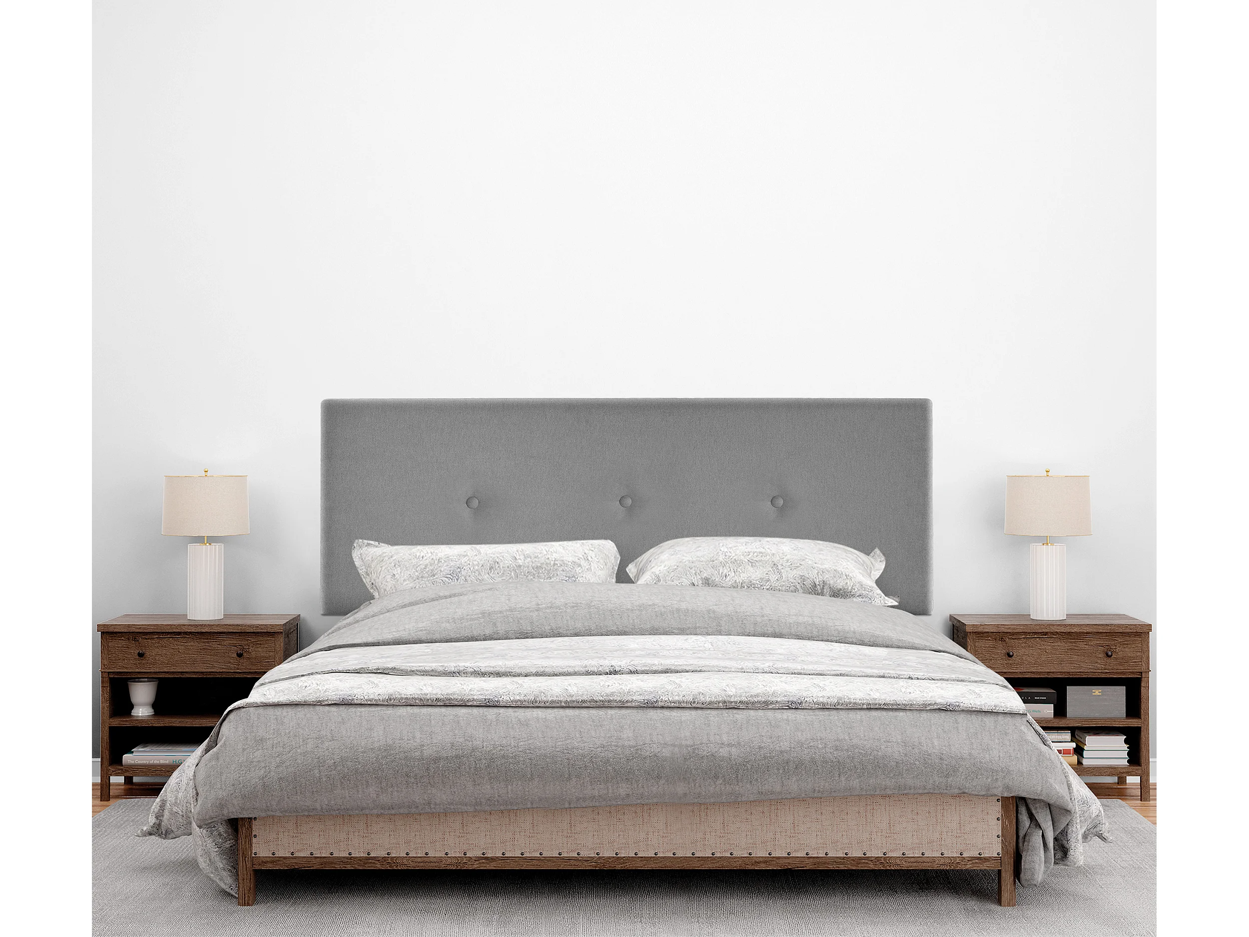 DHOME Aqualine Stoff Kopfteil glatt mit Knöpfen 135x50cm Betten 120/135 - Grau