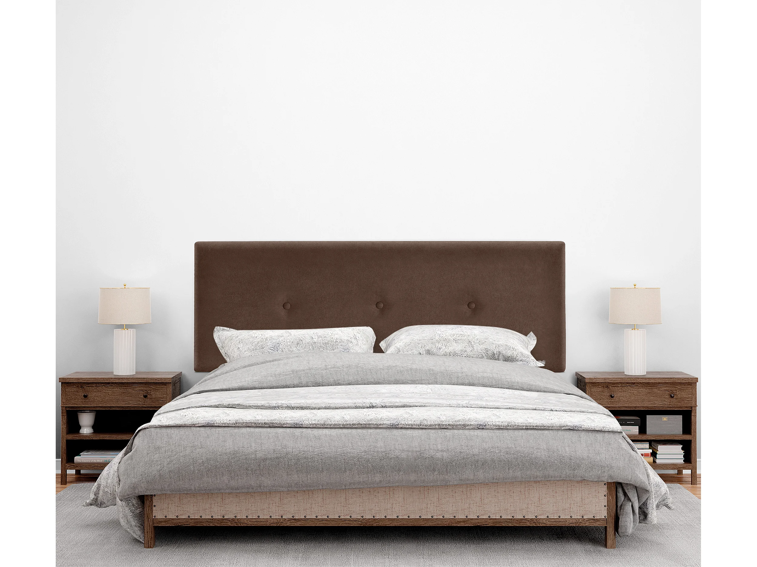 DHOME Aqualine Stoff Kopfteil glatt mit Knöpfen 145x50cm Betten 135/140 - Braun