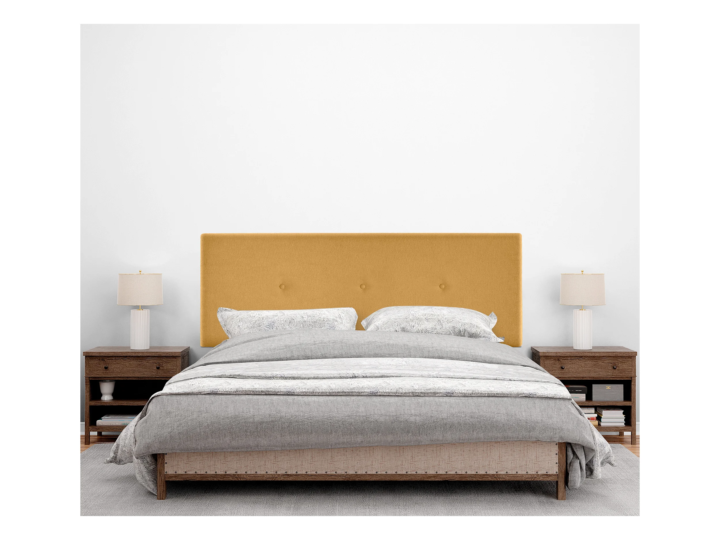 DHOME Aqualine Stoff Kopfteil glatt mit Knöpfen 150x105cm Mit Beinen Betten 150 - Senf