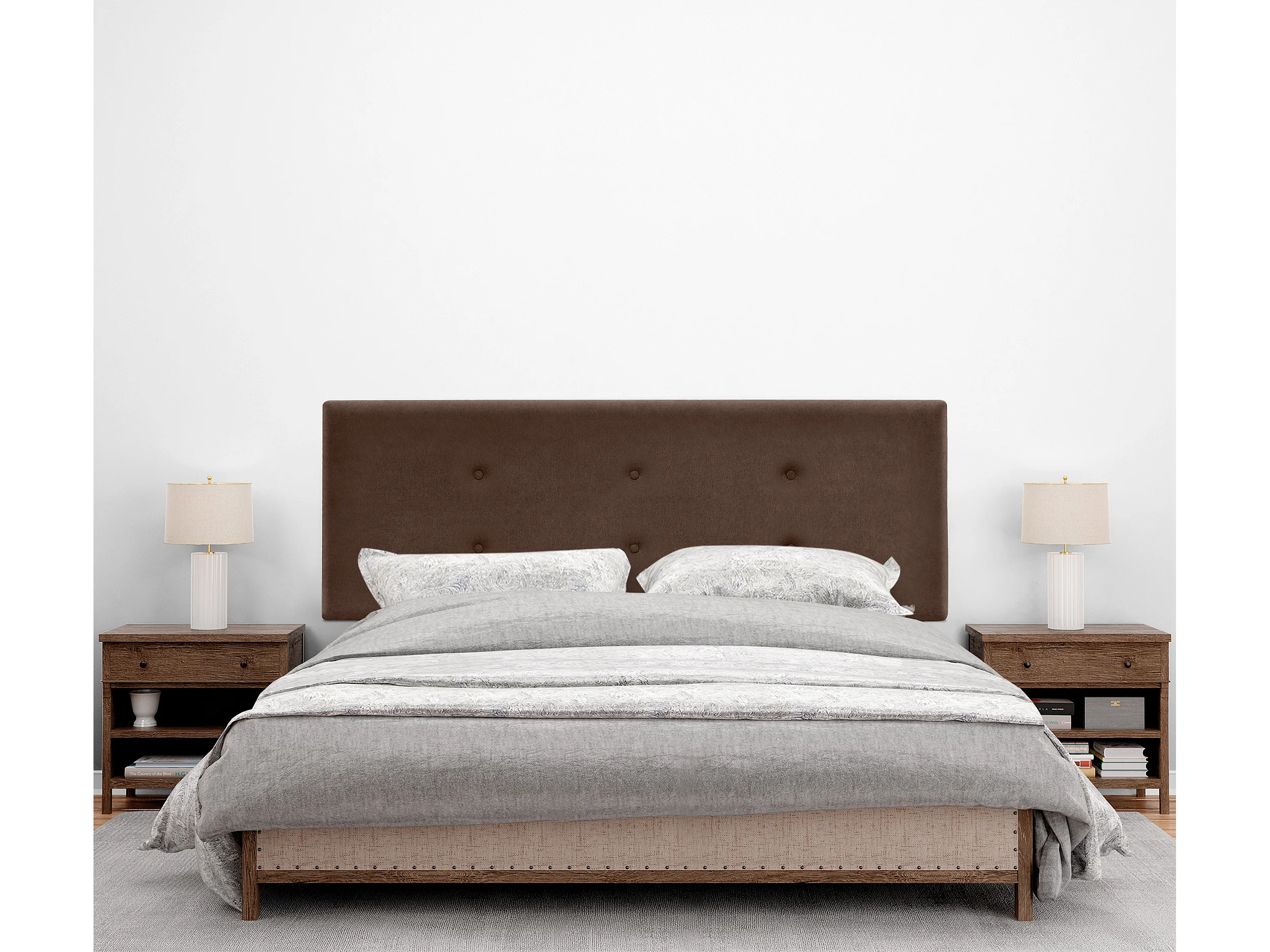 DHOME Aqualine Stoff-Kopfteil mit 2 Reihen von Knöpfen 135x105cm Mit Beinen Betten 120/135 - Braun