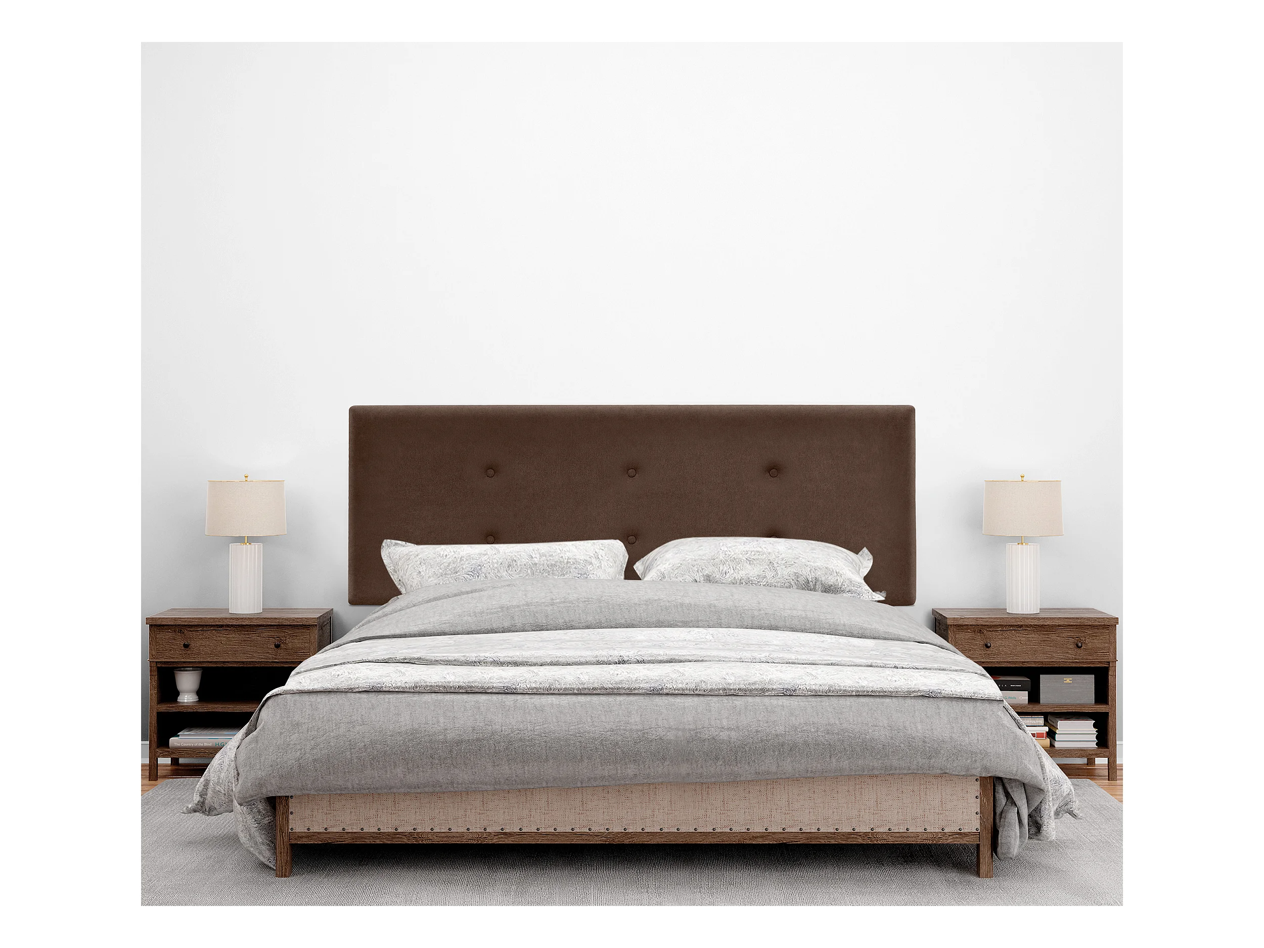 DHOME Aqualine Stoff-Kopfteil mit 2 Reihen von Knöpfen 145x50cm Betten 135/140 - Braun