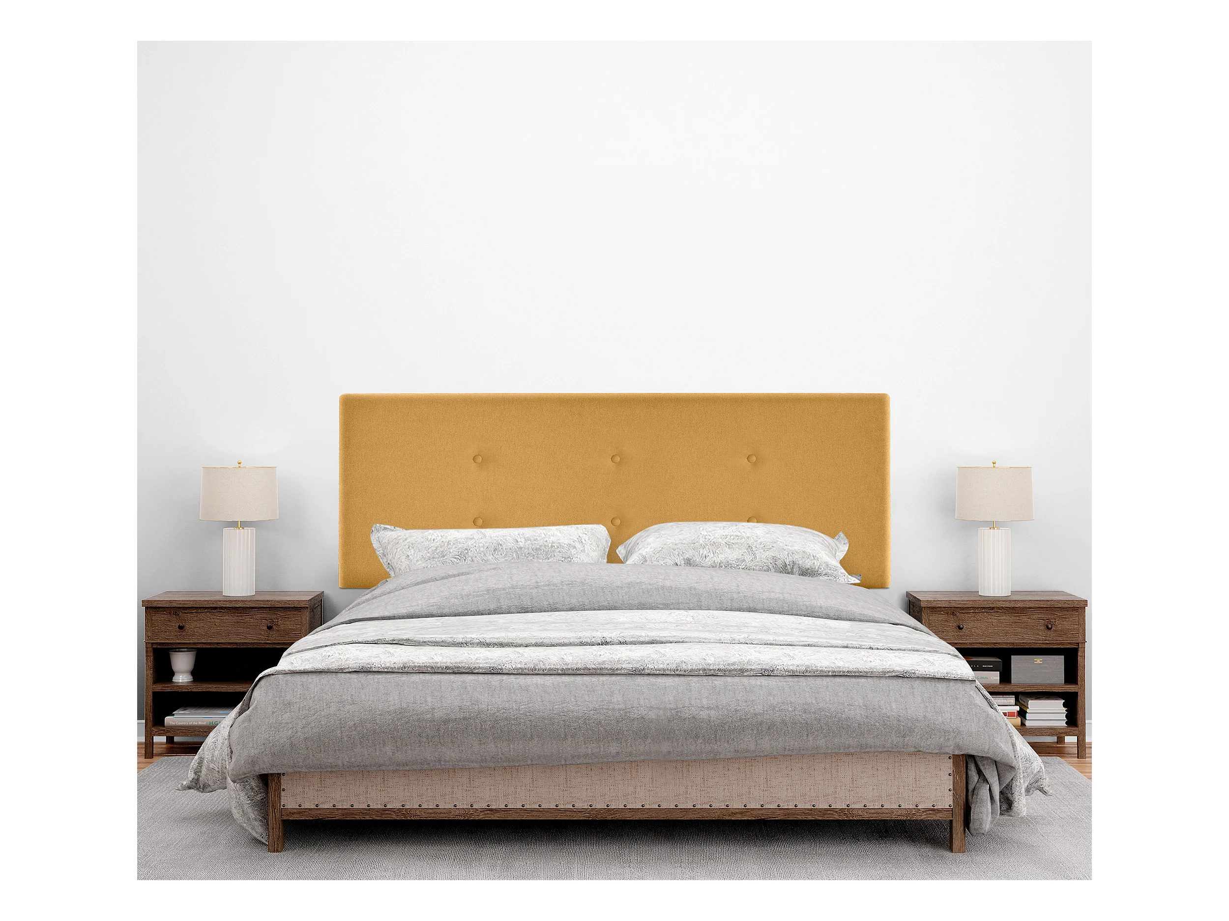 DHOME Aqualine Stoff-Kopfteil mit 2 Reihen von Knöpfen 160x50cm Betten 150/160 - Senf