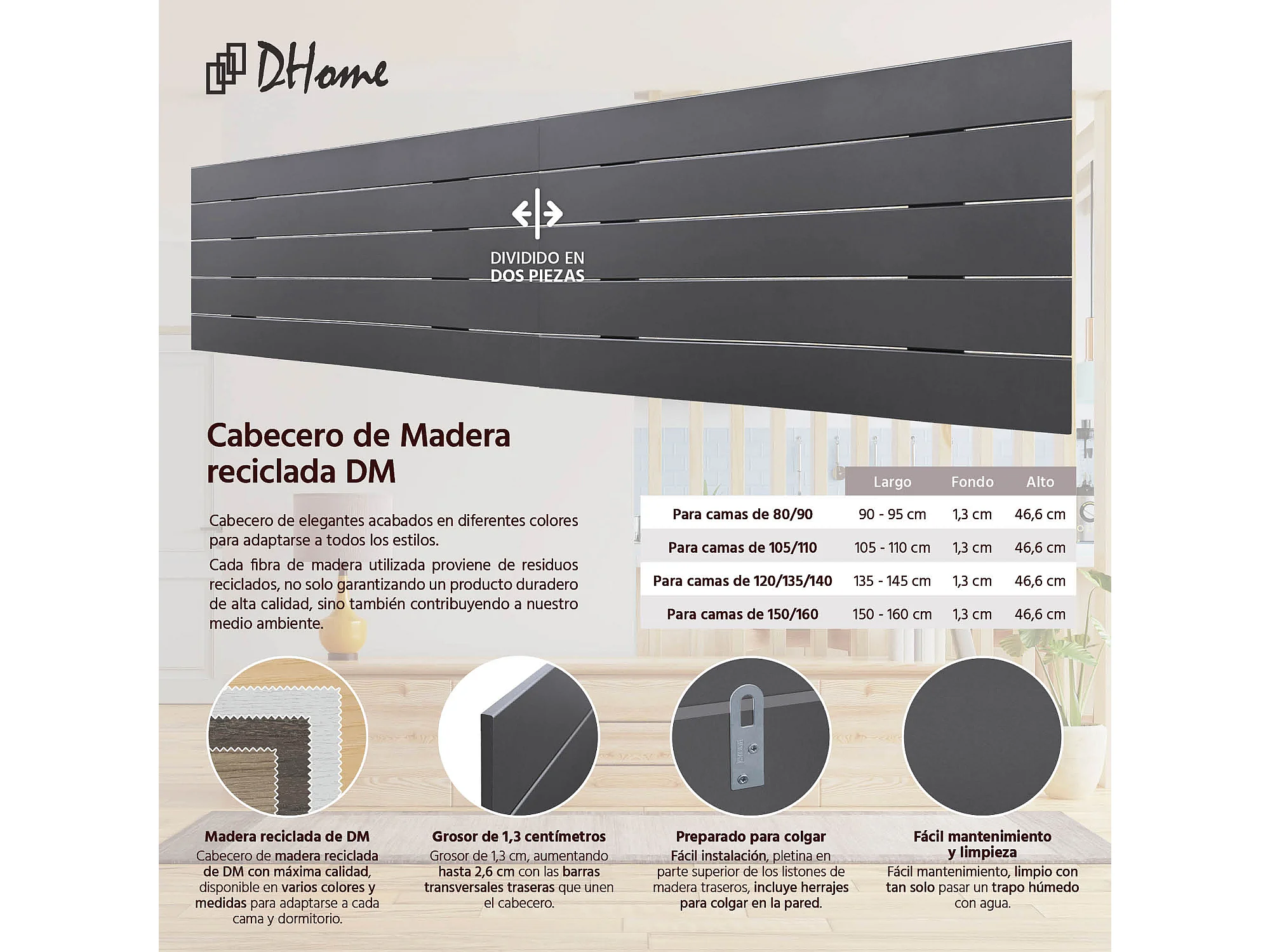 DHOME DM-Kopfteil aus recyceltem Holz, doppelter horizontaler Palettenstil, unterteilt in 2 Teile, 220 x 46 cm, Betten 220 – massives Grau