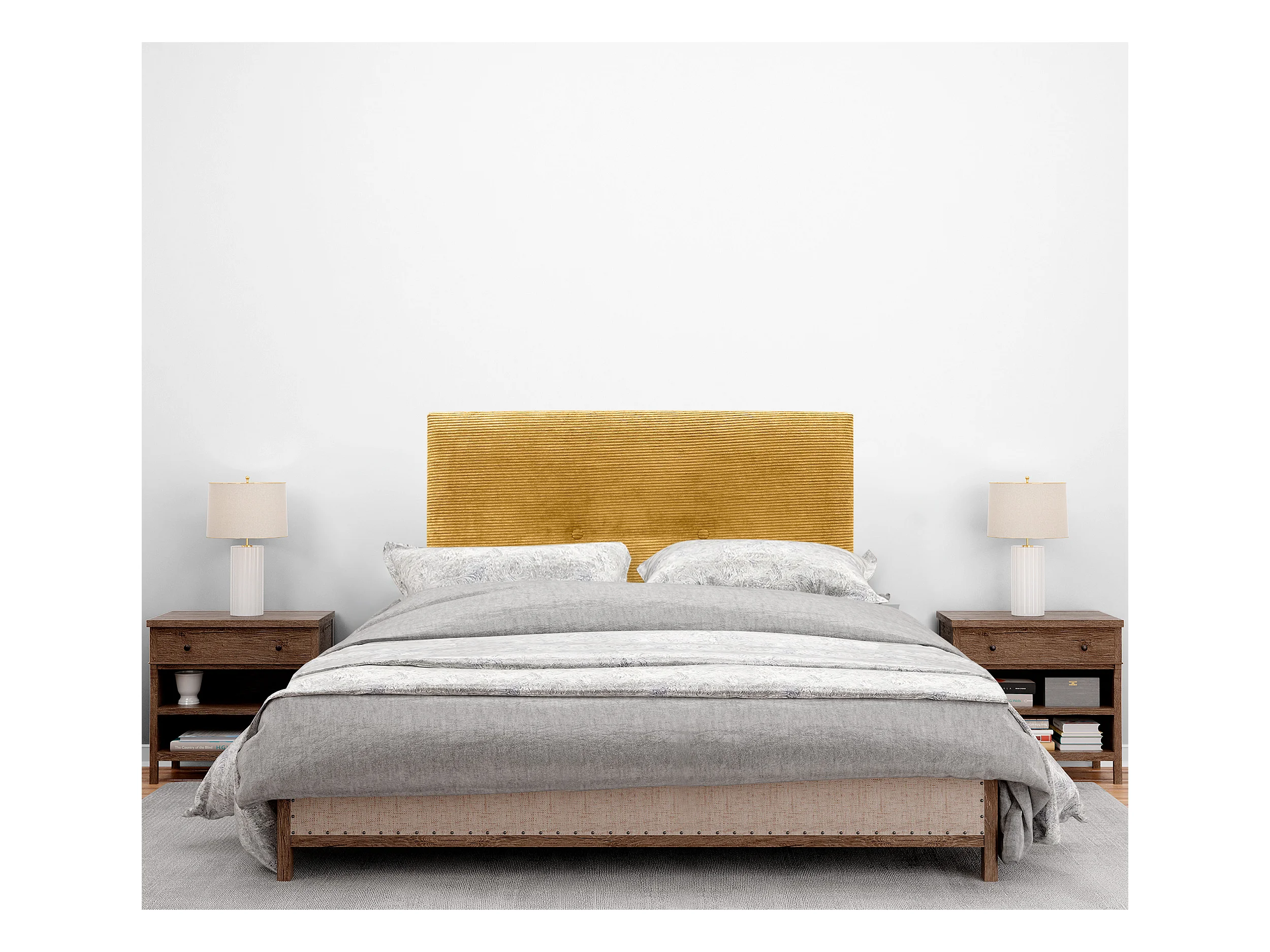 DHOME Einfarbiges Cord-Kopfteil mit Knöpfen 105x115 mit Bettbeinen 105 – Senf