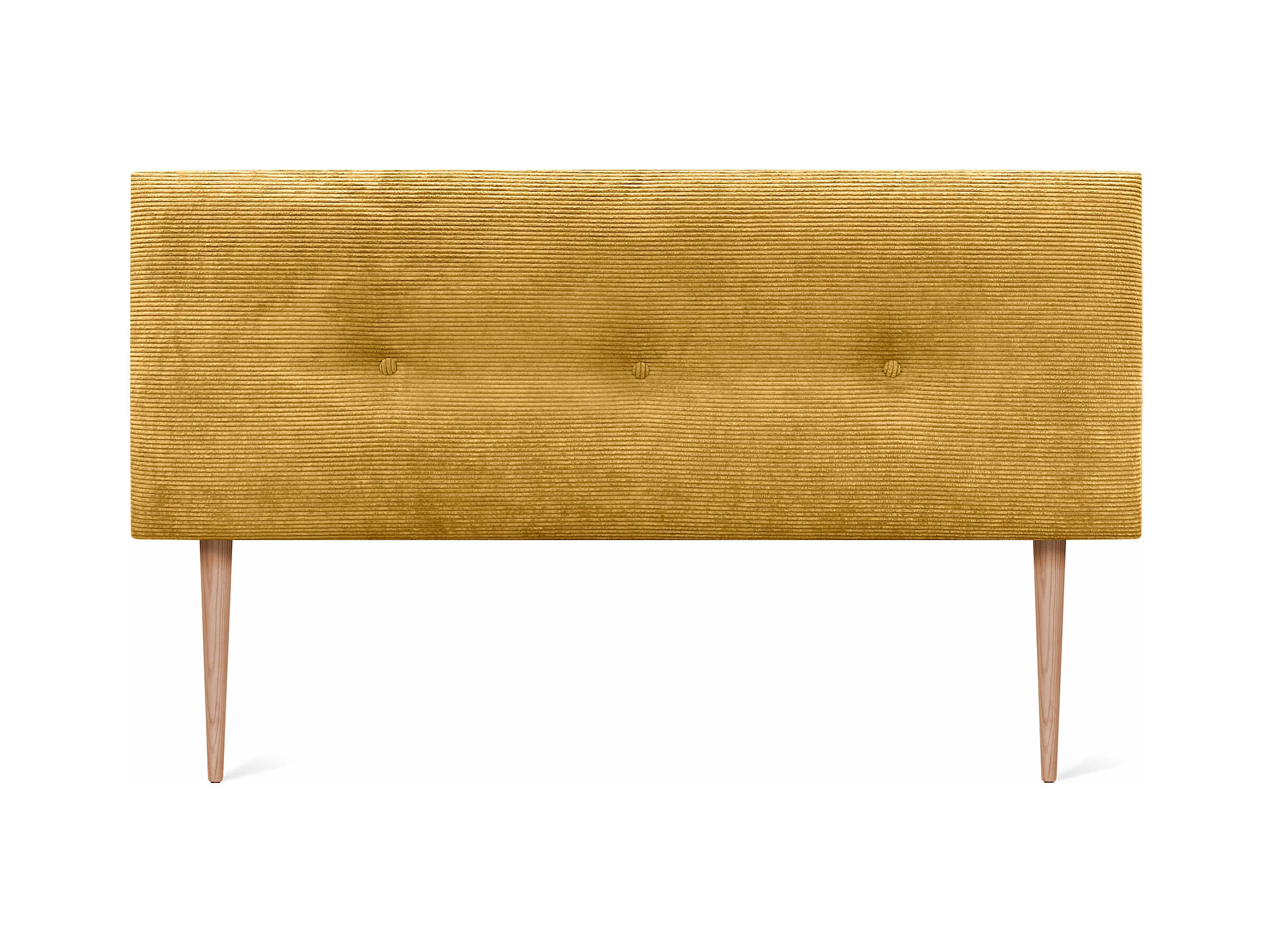 DHOME Einfarbiges Cord-Kopfteil mit Knöpfen 135 x 115 mit Bettbeinen 120/135/140 – Senf