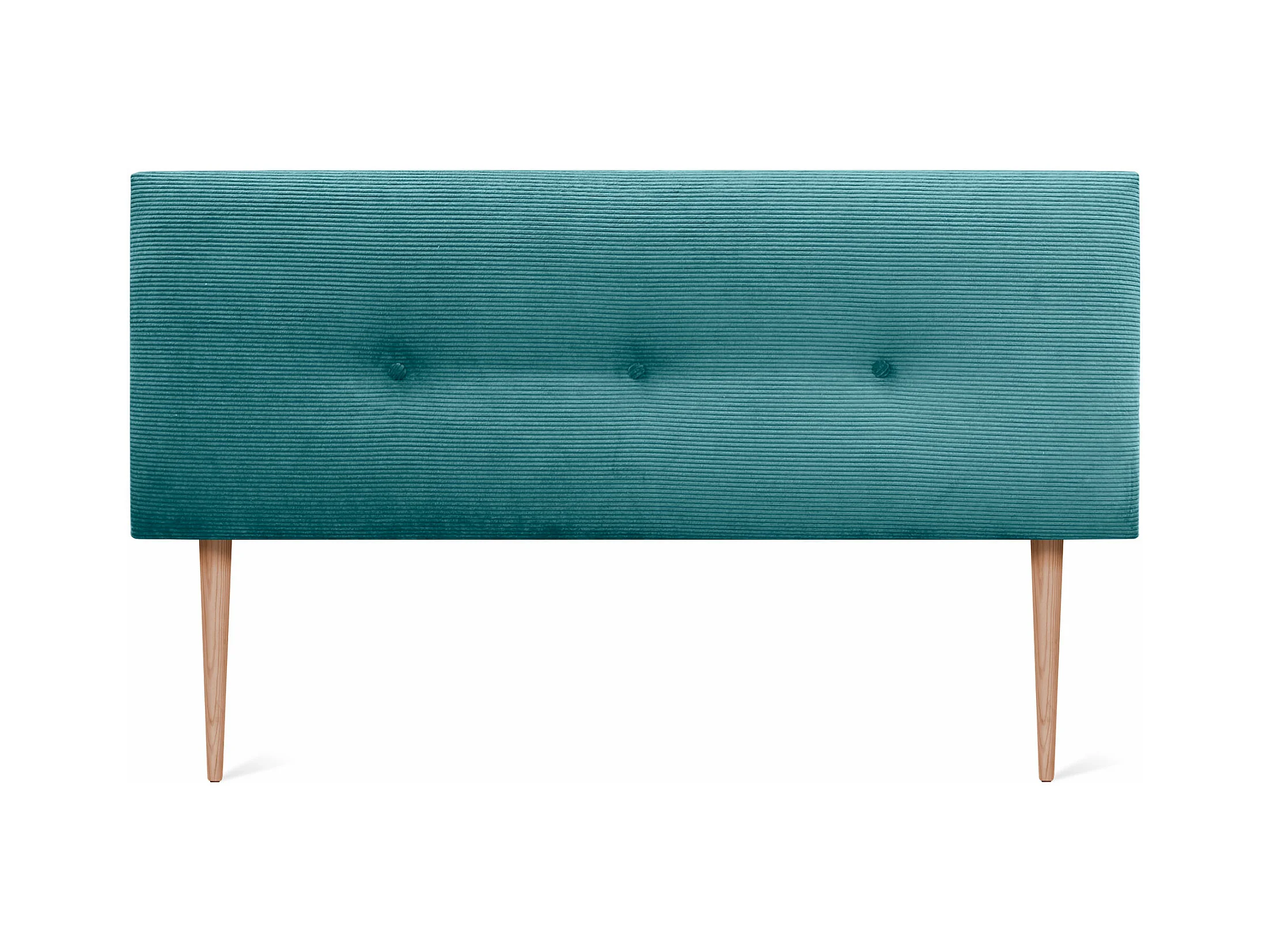 DHOME Einfarbiges Cord-Kopfteil mit Knöpfen 135 x 115 mit Bettbeinen 120/135/140 – Türkis