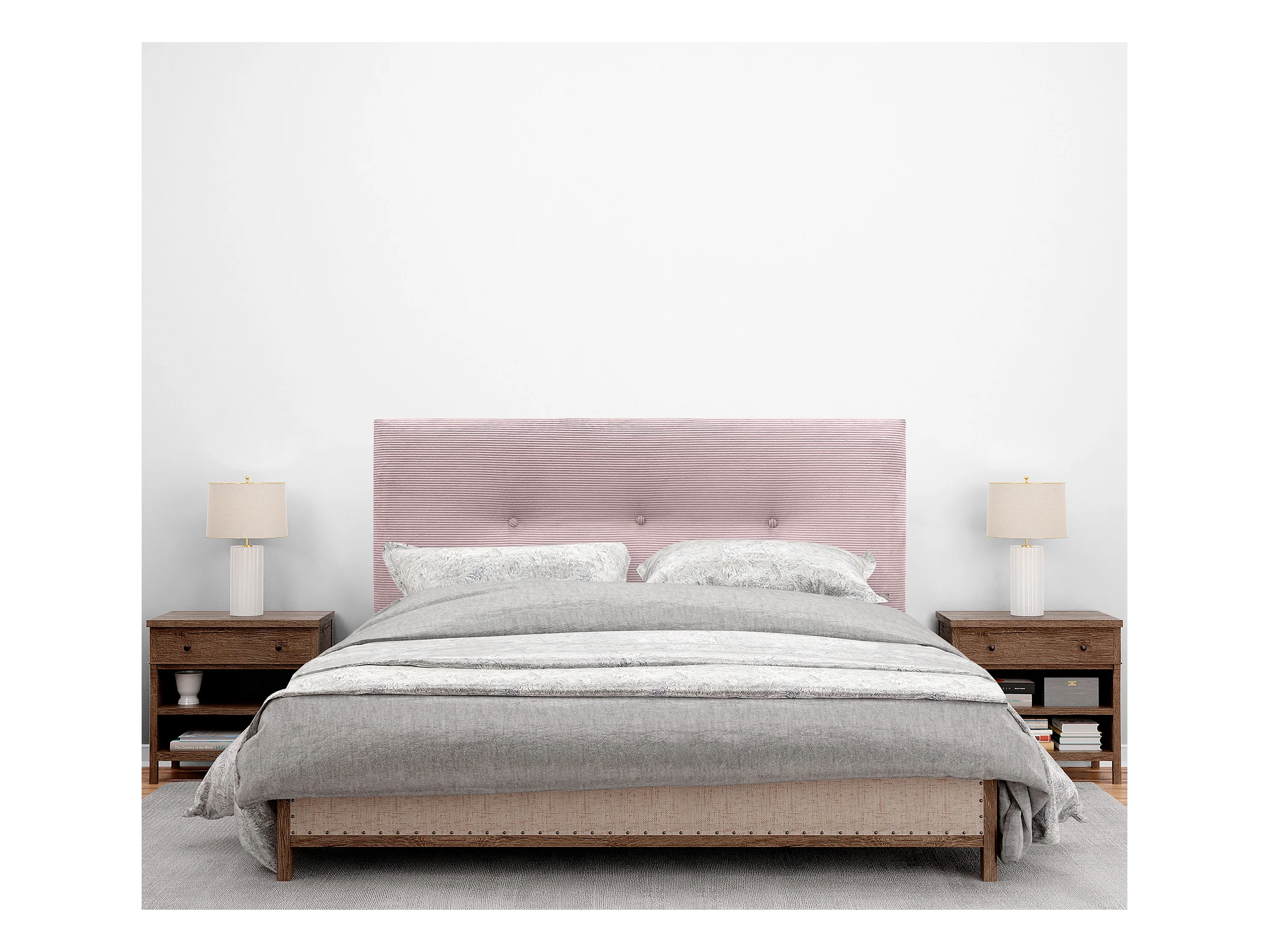 DHOME Einfarbiges Cord-Kopfteil mit Knöpfen 135x50 Betten 120/135/140 – Blassrosa