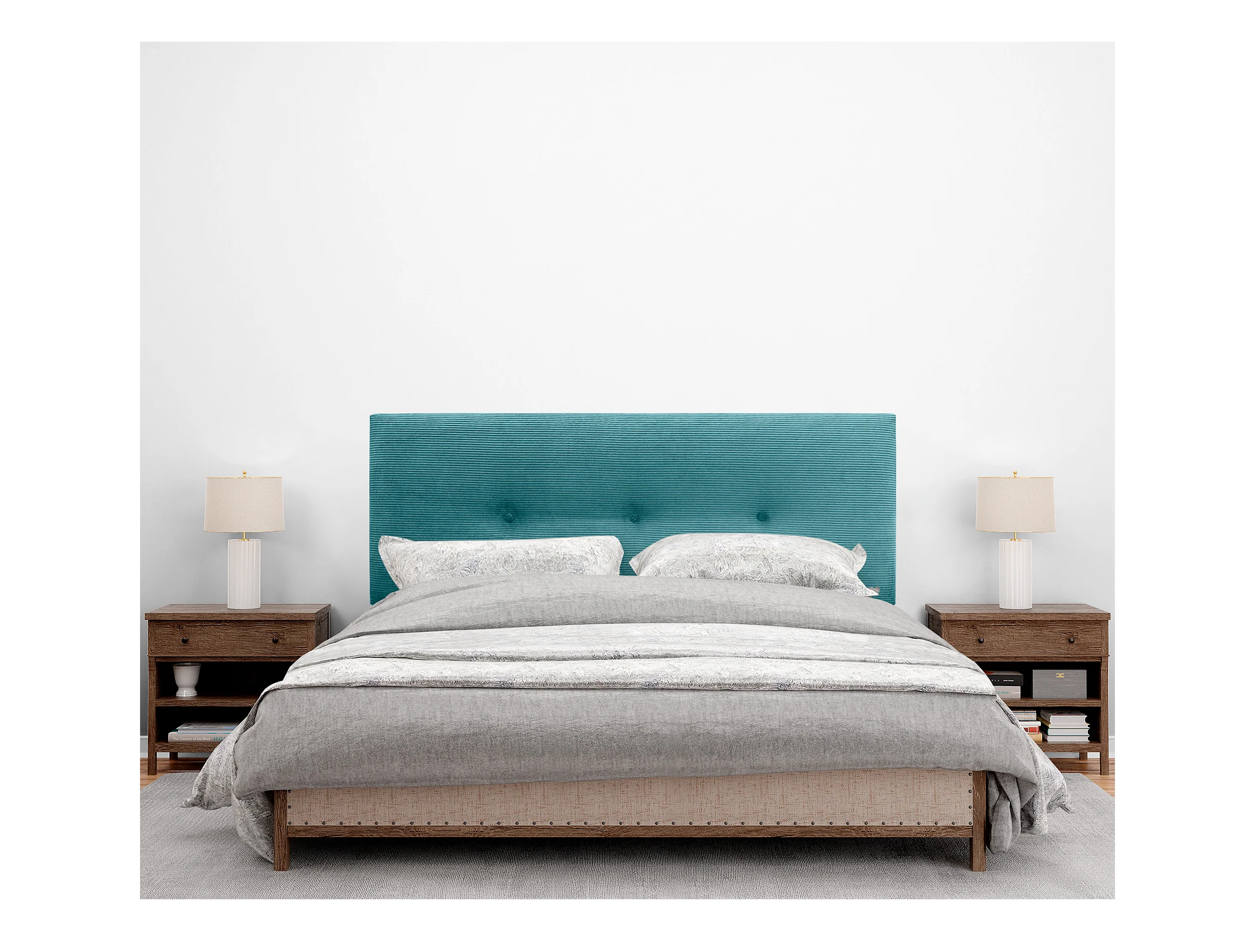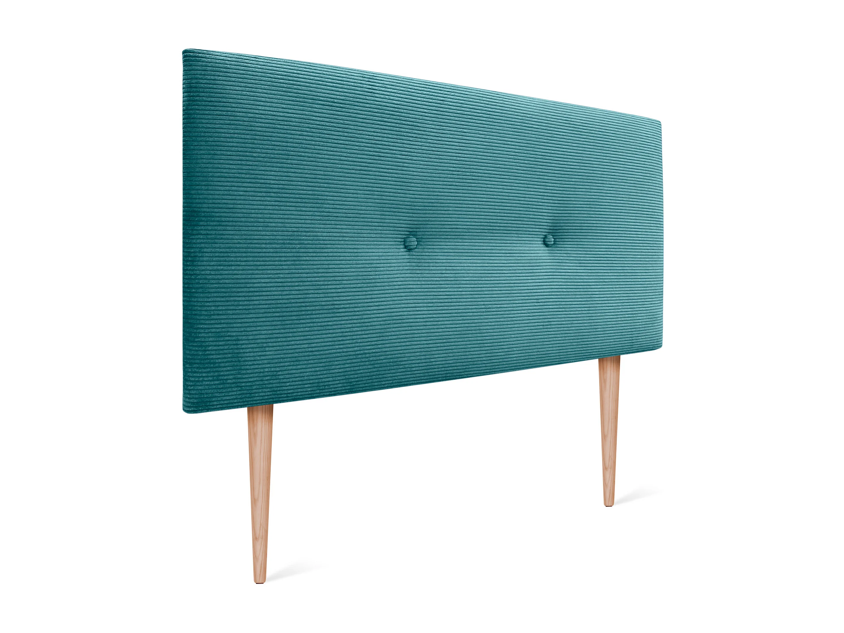 DHOME Einfarbiges Cord-Kopfteil mit Knöpfen 150x115 mit Bettbeinen 150/160 – Türkis