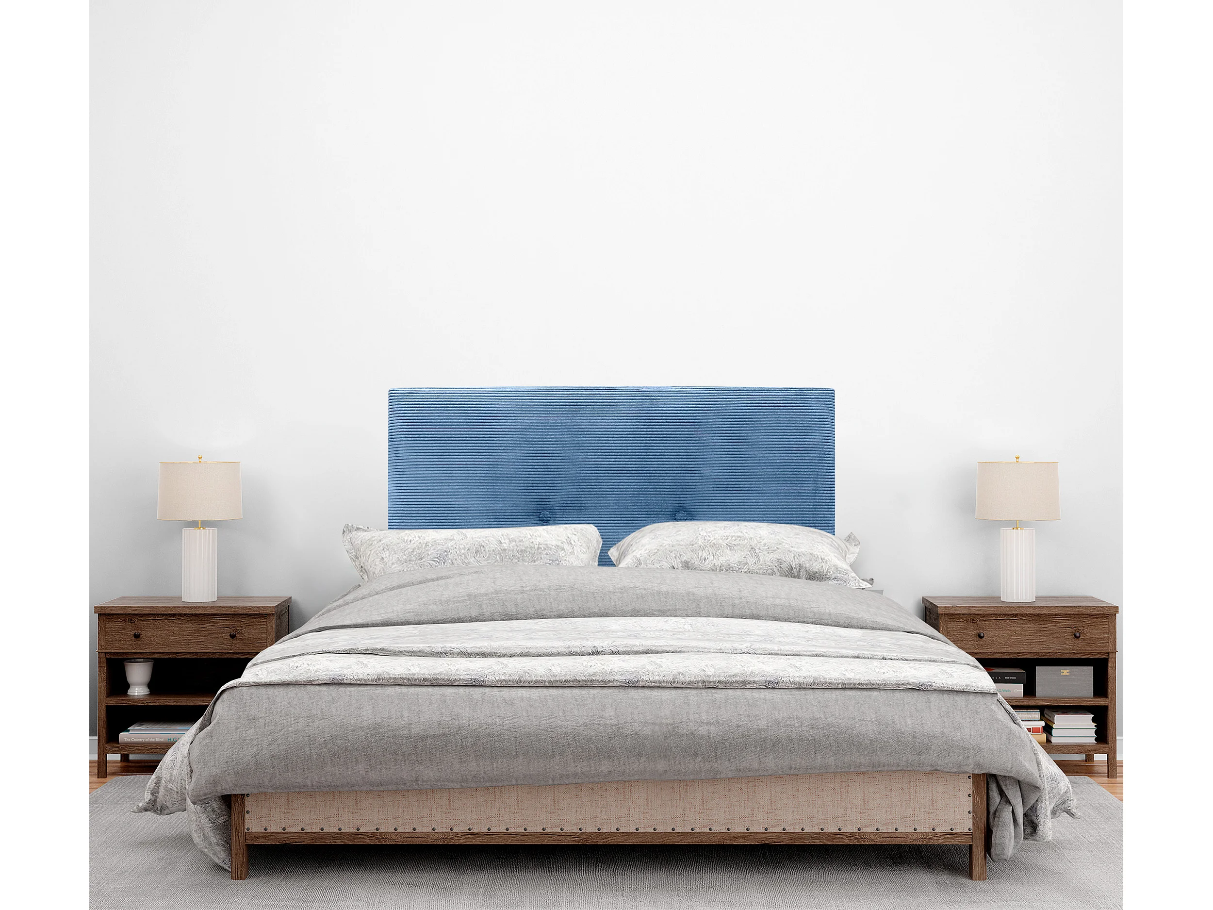 DHOME Einfarbiges Cord-Kopfteil mit Knöpfen 90x105 mit Bettbeinen 80/90 – Blau