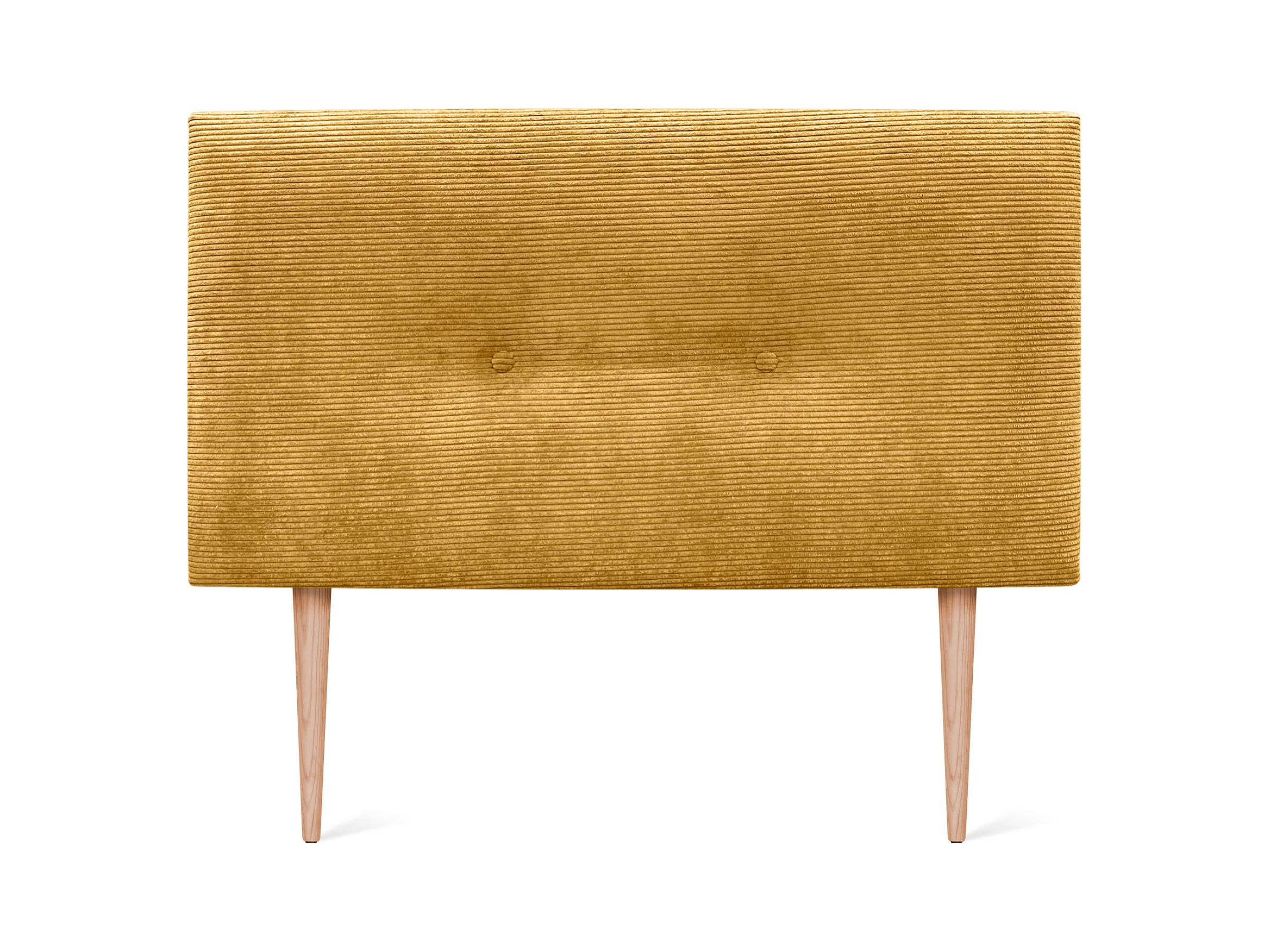 DHOME Einfarbiges Cord-Kopfteil mit Knöpfen 95x105 mit Bettbeinen 80/90 – Senf