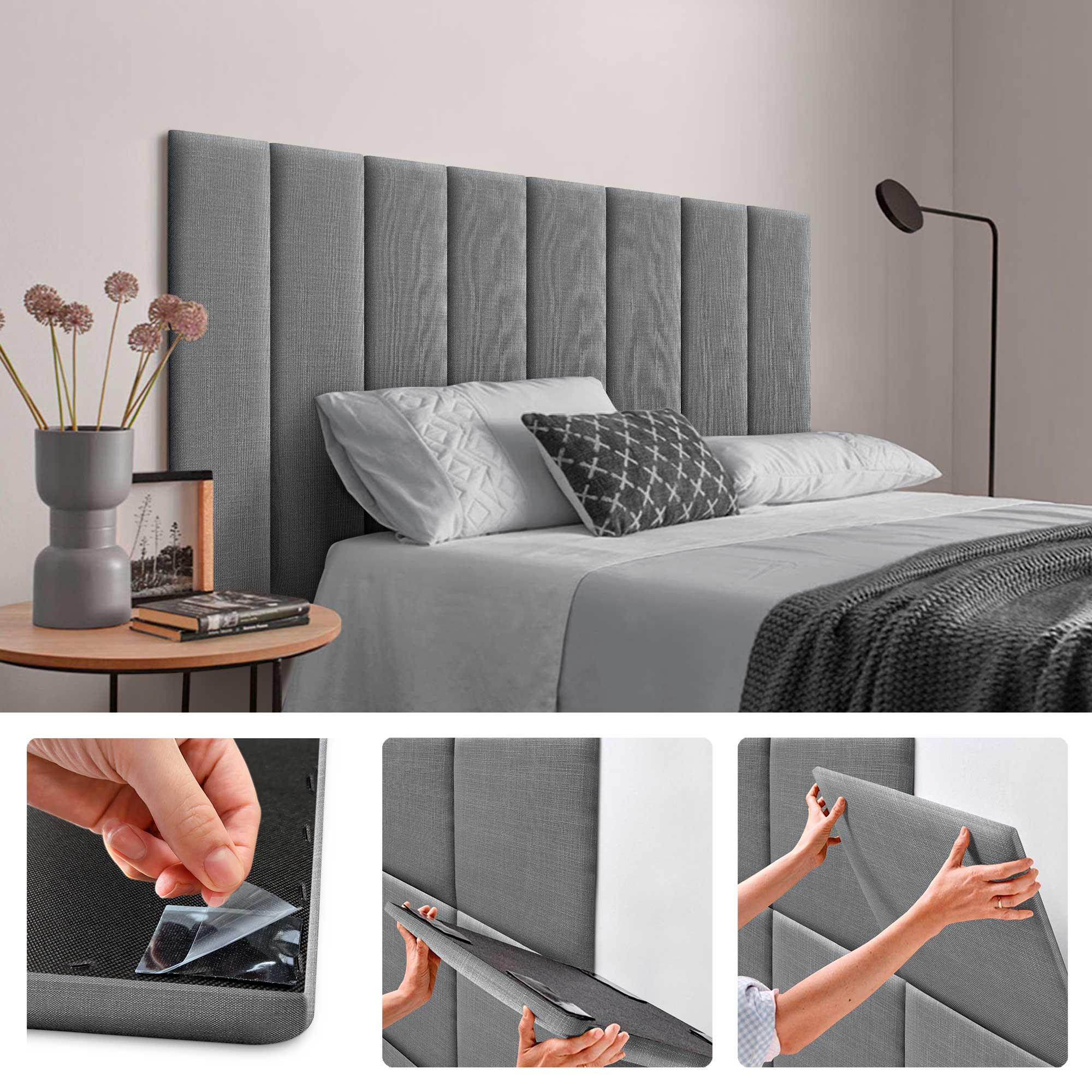 DHOME Gepolsterte Leinenpaneele Selbstklebend für Wände Akustisch Absorbierend Stoßschutz Kopfteil Dekoration (Dunkelgrau, 60x20cm)