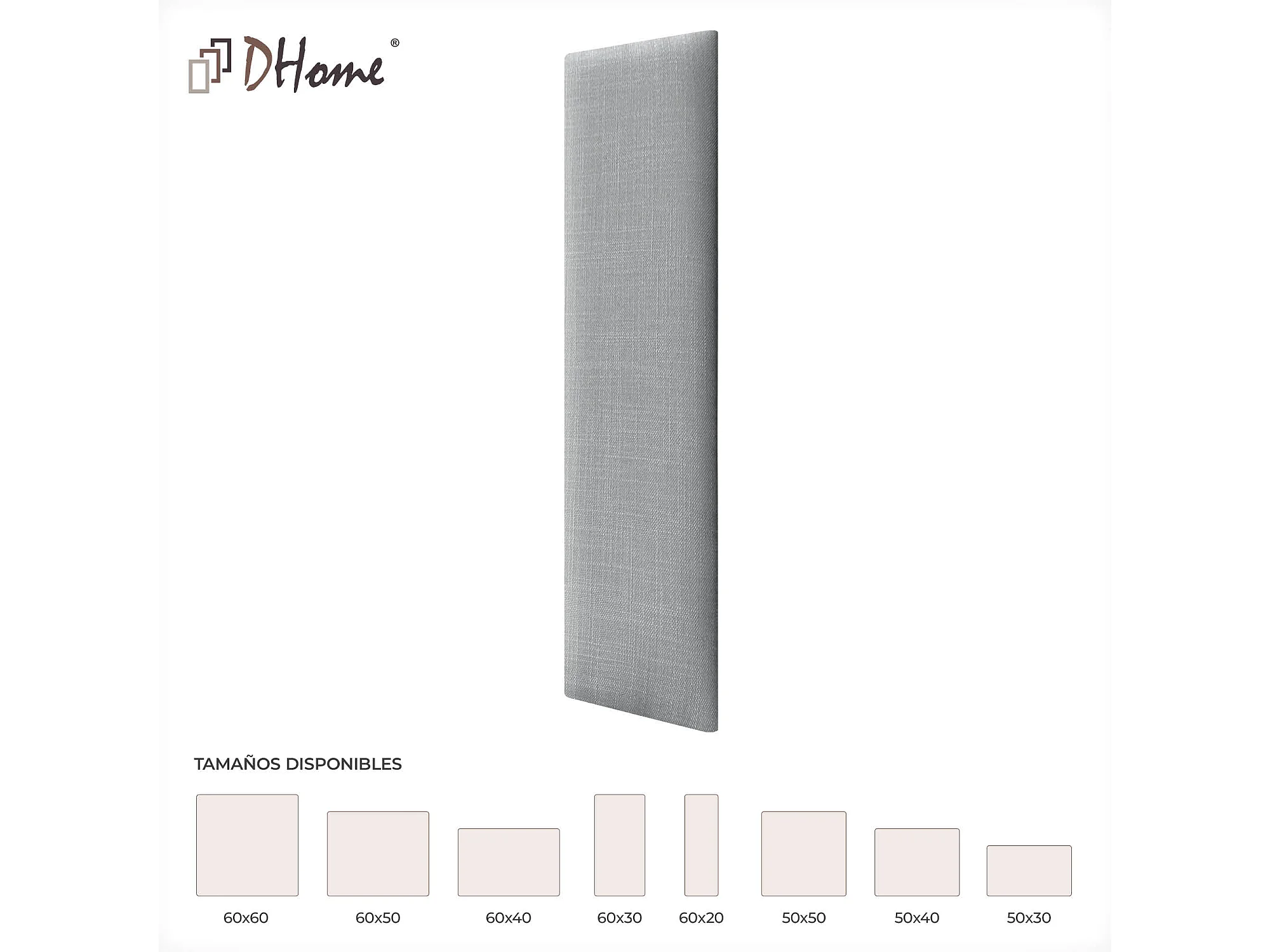 DHOME Gepolsterte Leinenpaneele Selbstklebend für Wände Akustisch Absorbierend Stoßschutz Kopfteil Dekoration (Hellgrau, 60x20cm)