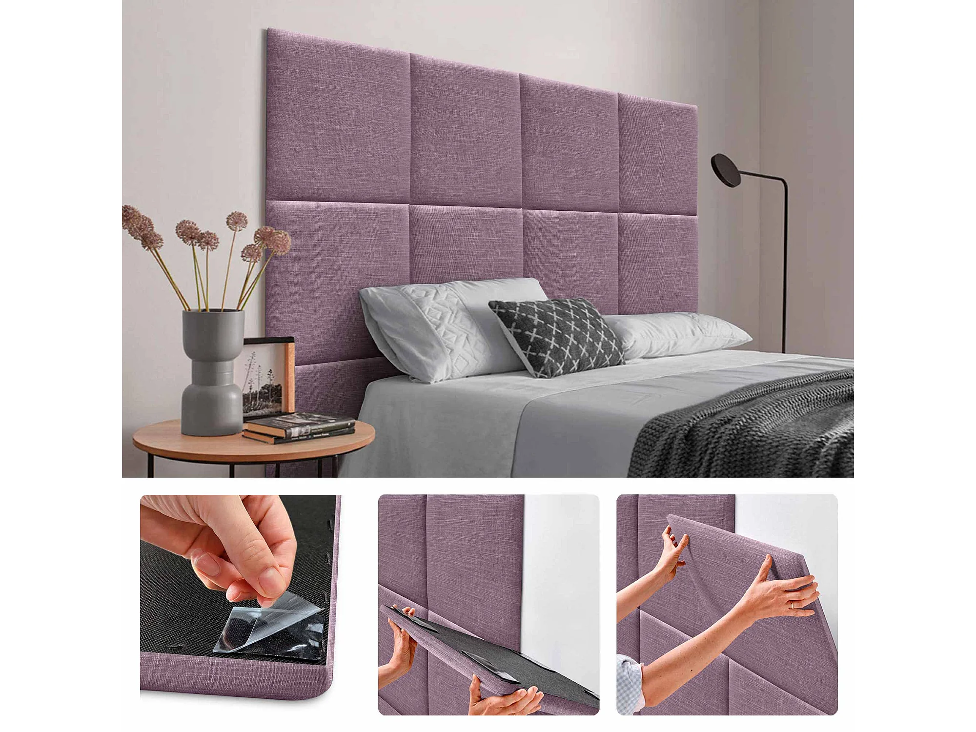 DHOME Gepolsterte Leinenpaneele Selbstklebend für Wände Akustisch Absorbierend Stoßschutz Kopfteil Dekoration (Lila, 60x60cm)