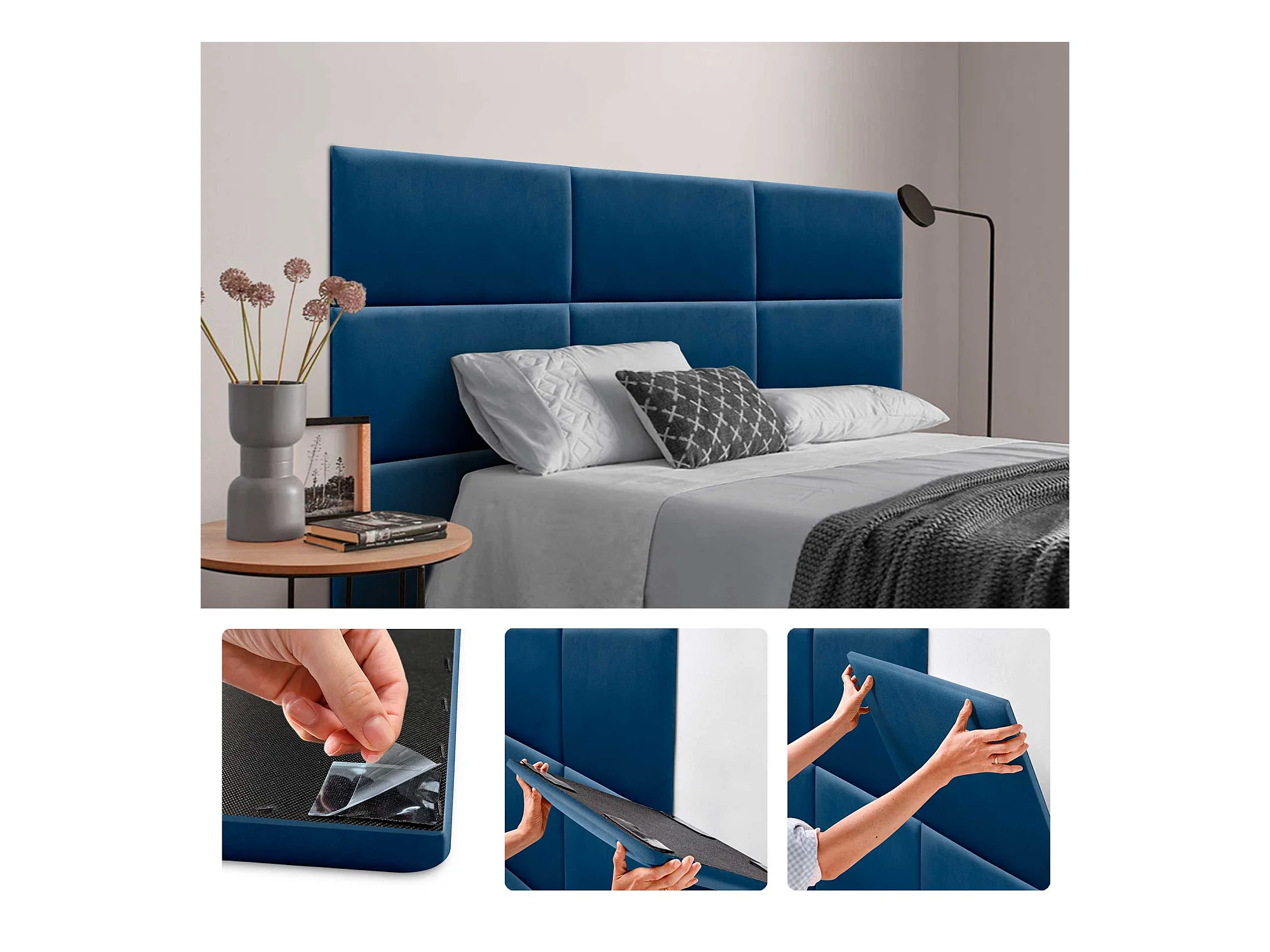 DHOME Gepolsterte Premium-Samt-Selbstklebepaneele für Wände Akustisch, schallabsorbierend, stoßfest, Kopfteil (Blau, 60x50cm)