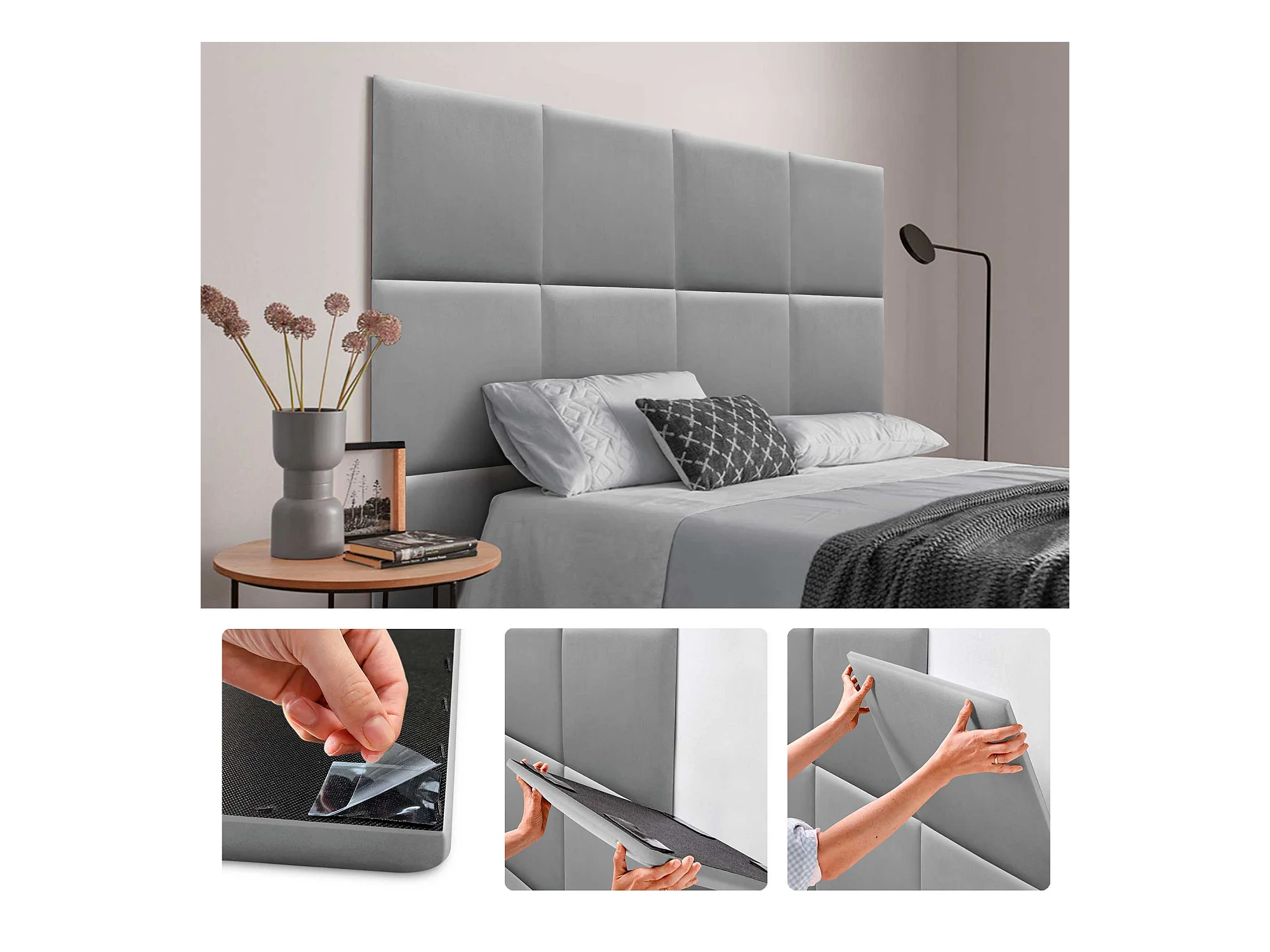 DHOME Gepolsterte Premium-Samtpaneele Selbstklebend für Wände Akustisch Schallabsorbierend Stoßschutz Kopfteil (Hellgrau, 50x50cm)