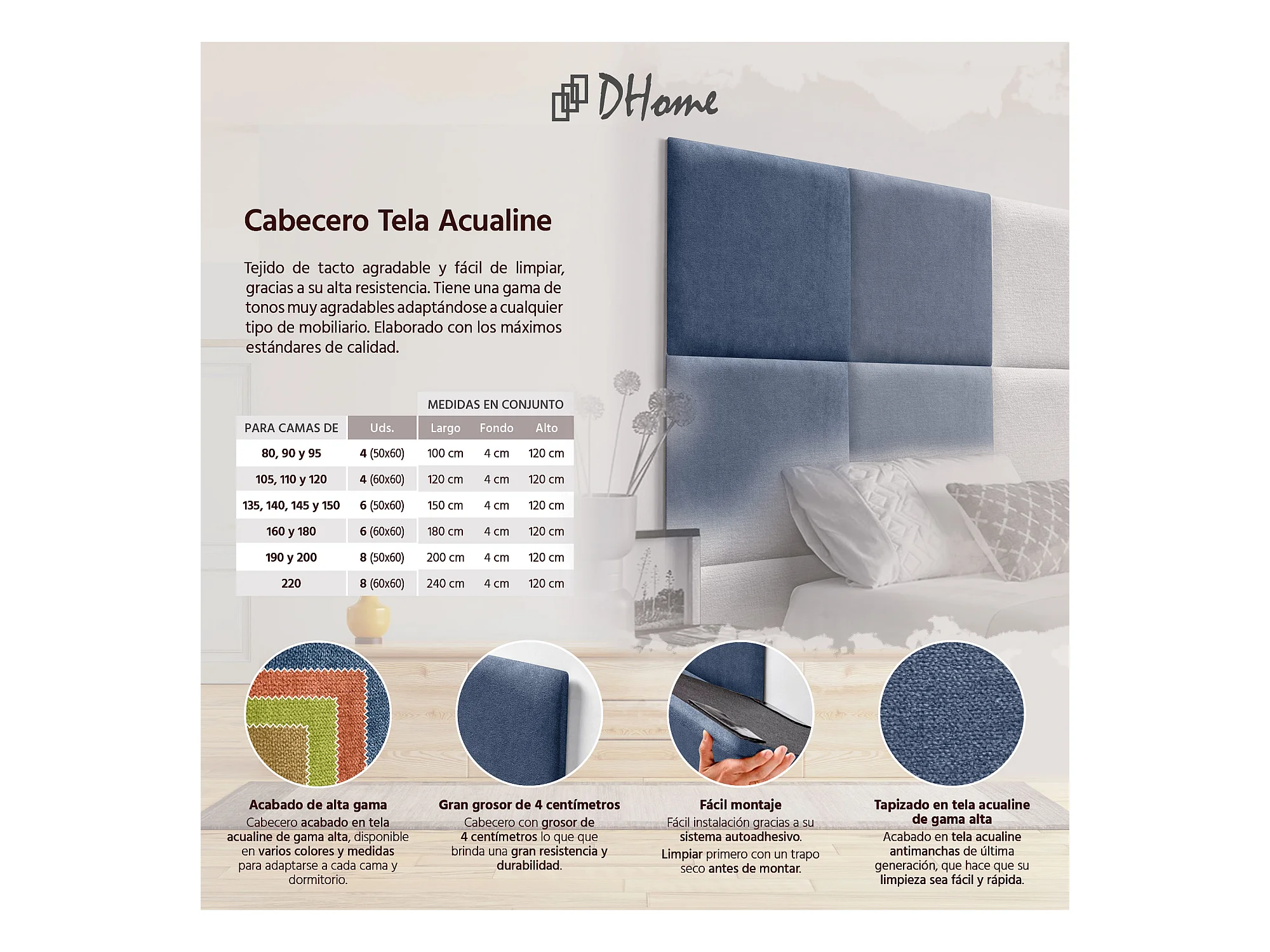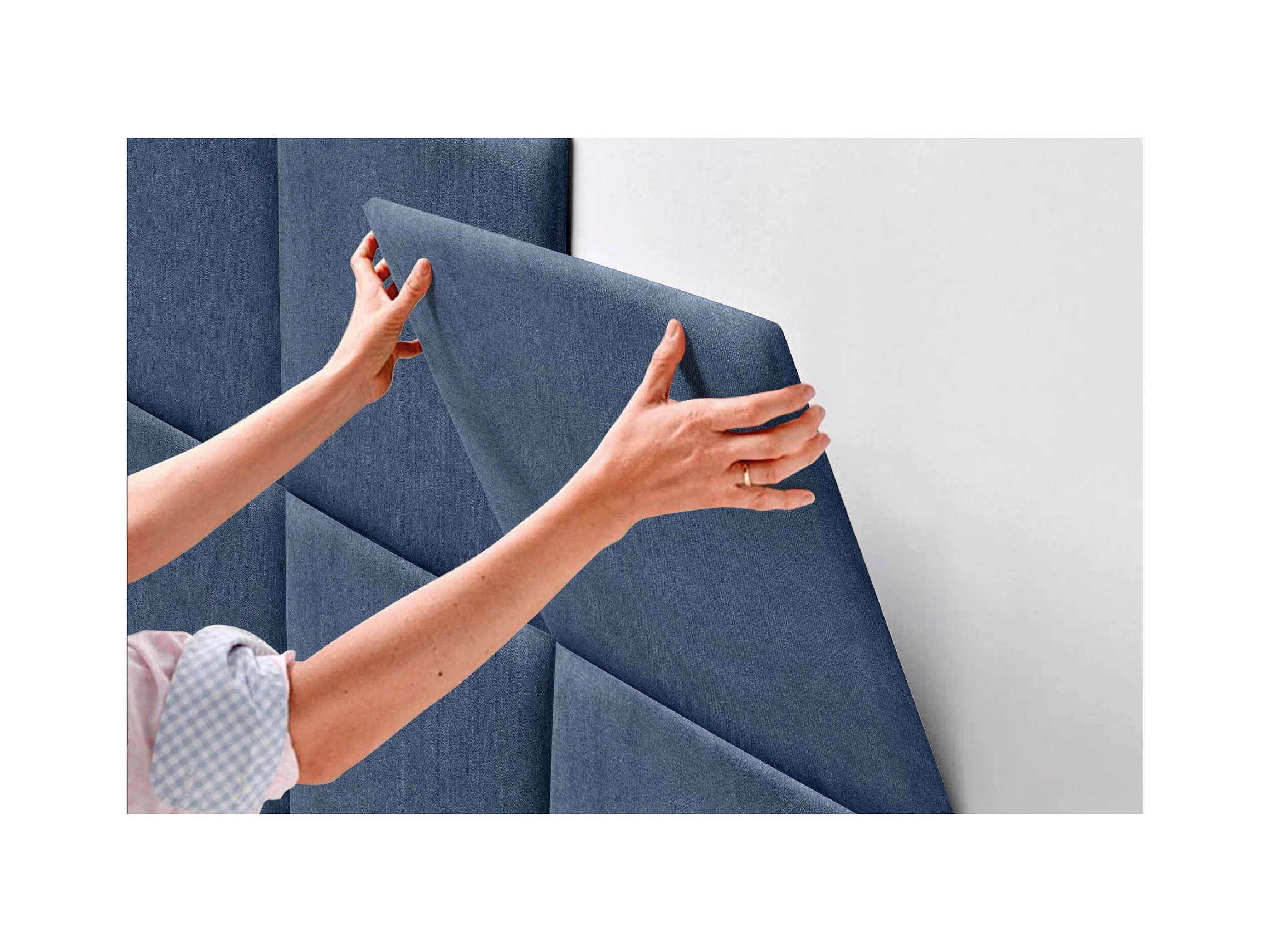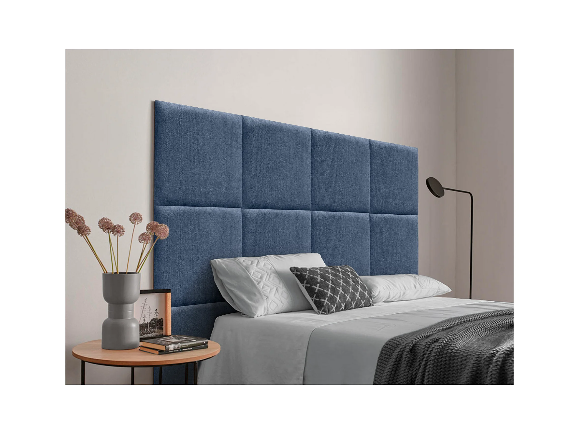 DHOME Gepolstertes Kopfteil aus Acualine-Stoff, aus selbstklebenden, austauschbaren Bettpaneelen, luxuriös gepolstertes Schlafzimmer (blau, 105 cm)