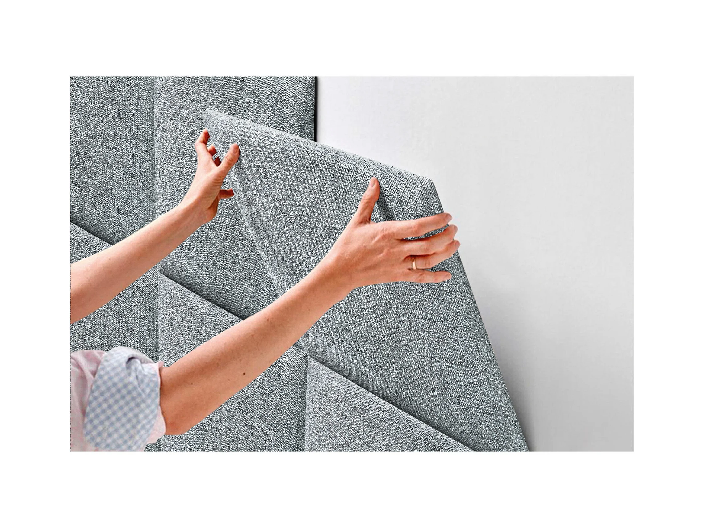 DHOME Gepolstertes Kopfteil aus Acualine-Stoff, aus selbstklebenden, austauschbaren Bettpaneelen, luxuriös gepolstertes Schlafzimmer (Perlgrau, 105 cm)