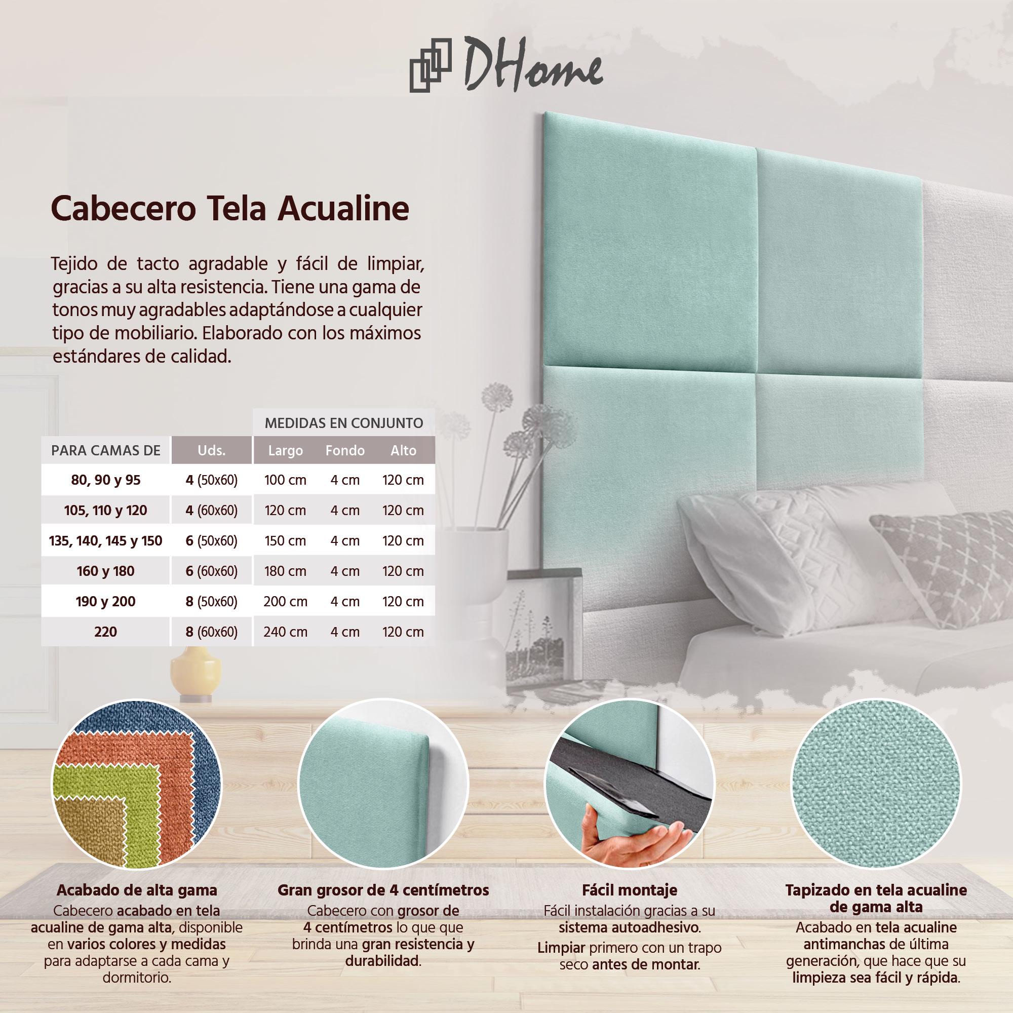 DHOME Gepolstertes Kopfteil aus Acualine-Stoff, aus selbstklebenden, austauschbaren Bettpaneelen, luxuriös gepolstertes Schlafzimmer (Wassergrün, 220 cm)
