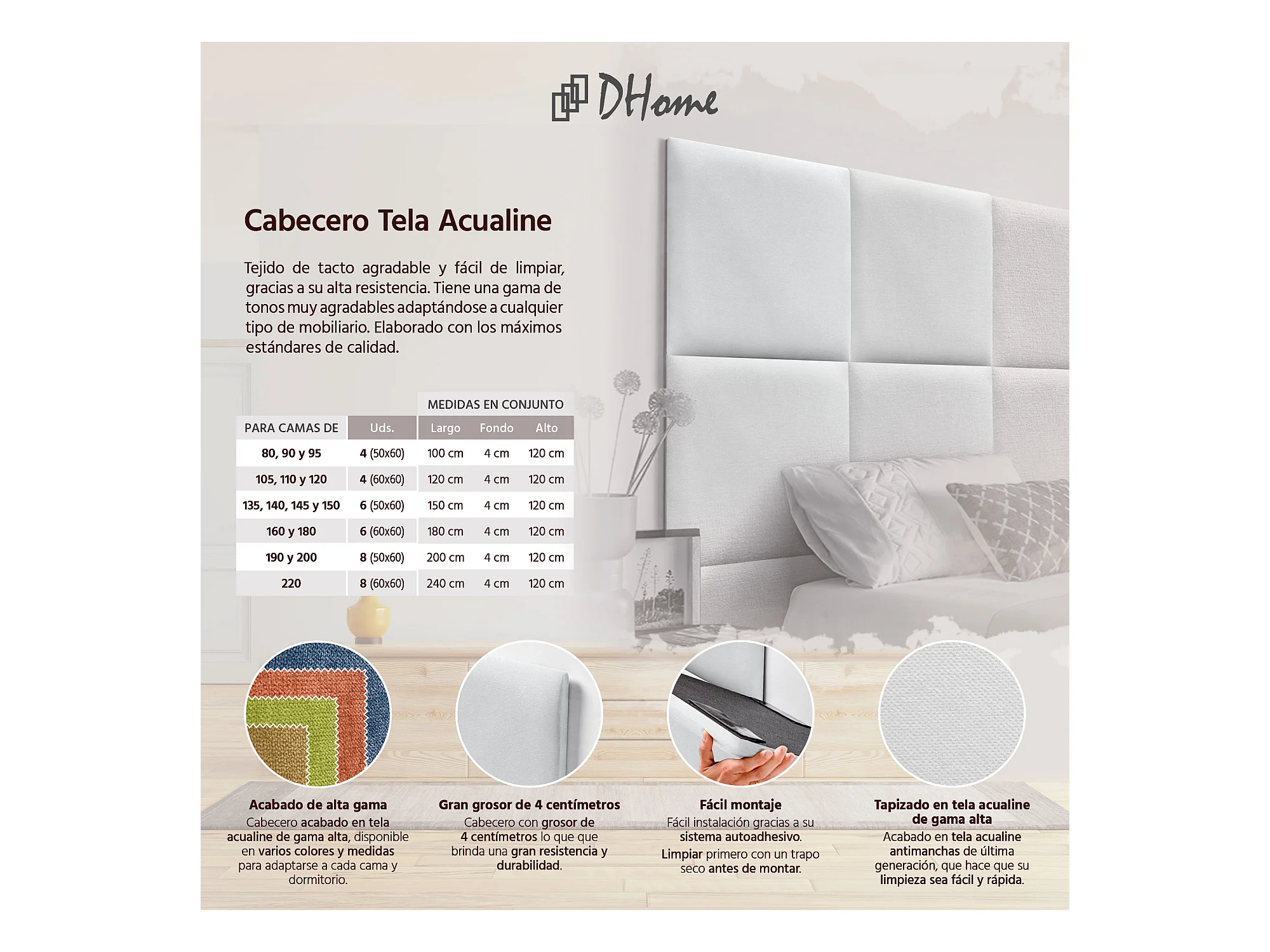 DHOME Gepolstertes Kopfteil aus Acualine-Stoff, aus selbstklebenden, austauschbaren Bettpaneelen, luxuriös gepolstertes Schlafzimmer (weiß, 90 cm)