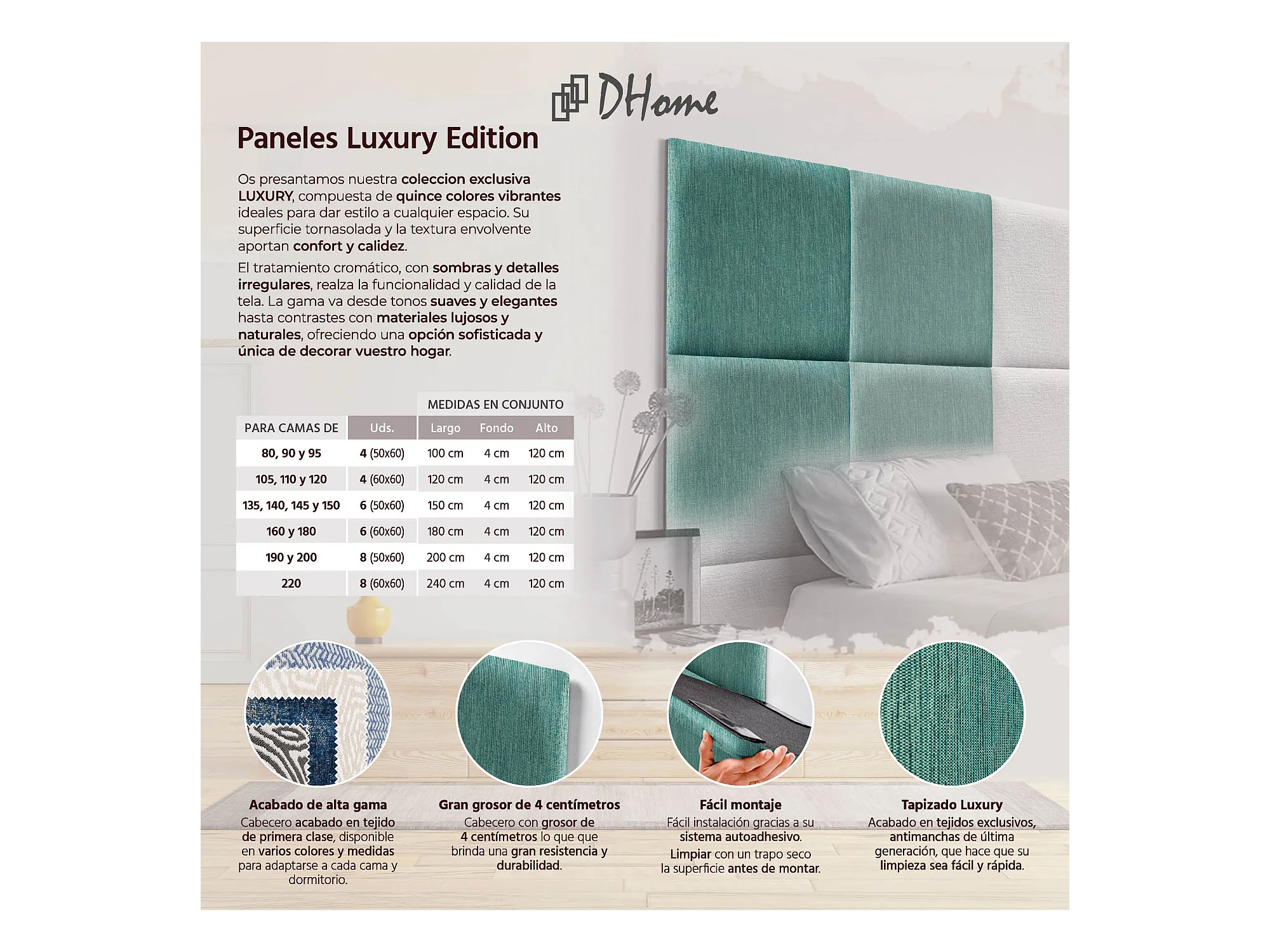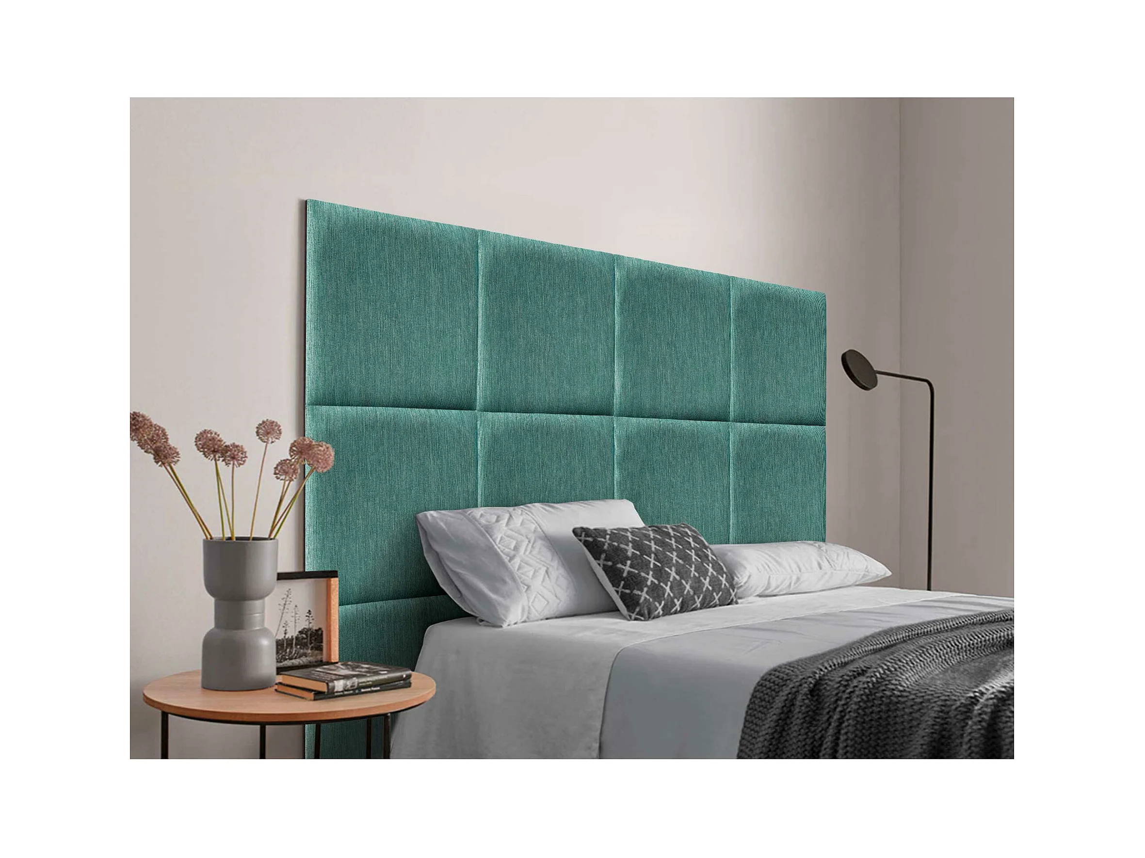 DHOME Gepolstertes Kopfteil aus austauschbaren selbstklebenden Paneelen Luxury Edition Serie Luxusbett Schlafzimmer (Lineal Green, 140cm)