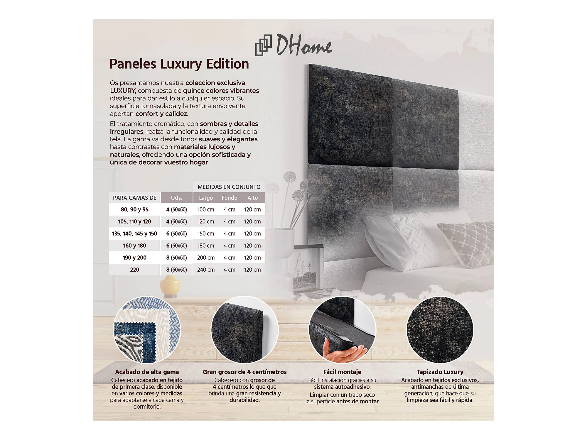 DHOME Gepolstertes Kopfteil aus austauschbaren selbstklebenden Paneelen Luxury Edition Serie Luxusbett Schlafzimmer (Luxurious Black, 90cm)
