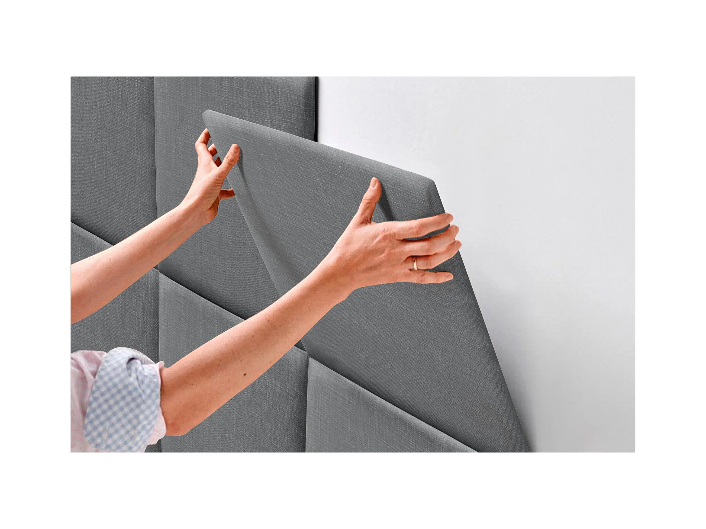 DHOME Gepolstertes Kopfteil aus Naturleinen, bestehend aus austauschbaren selbstklebenden Paneelen, luxuriöses gepolstertes Schlafzimmer (Dunkelgrau, 135 cm)