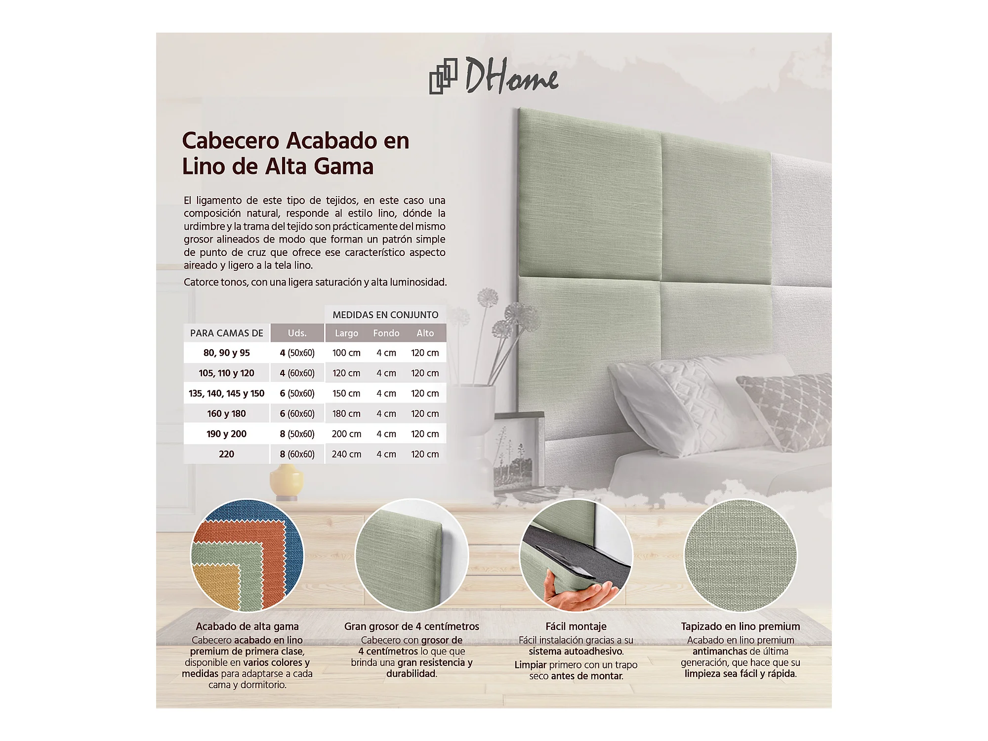 DHOME Gepolstertes Kopfteil aus Naturleinen, bestehend aus austauschbaren selbstklebenden Paneelen, luxuriöses gepolstertes Schlafzimmer (Grün, 105 cm)