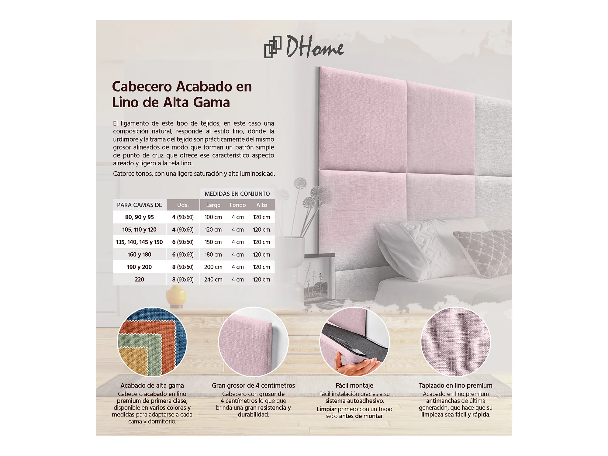 DHOME Gepolstertes Kopfteil aus Naturleinen, bestehend aus austauschbaren selbstklebenden Paneelen, luxuriöses gepolstertes Schlafzimmer (Rosa, 135 cm)
