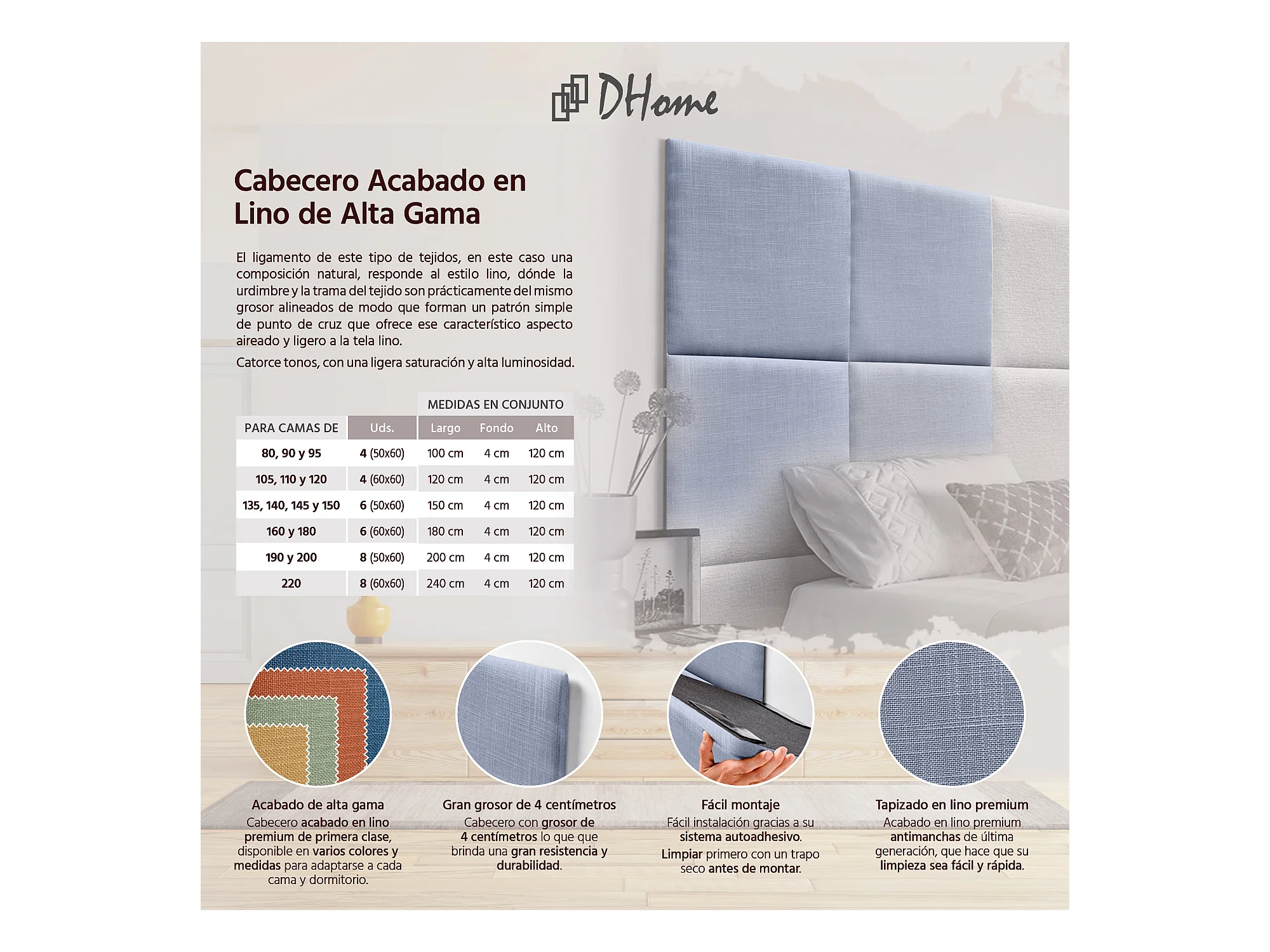 DHOME Gepolstertes Kopfteil aus Naturleinen, bestehend aus austauschbaren selbstklebenden Paneelen, luxuriöses Schlafzimmer, gepolstert (blau, 200 cm)