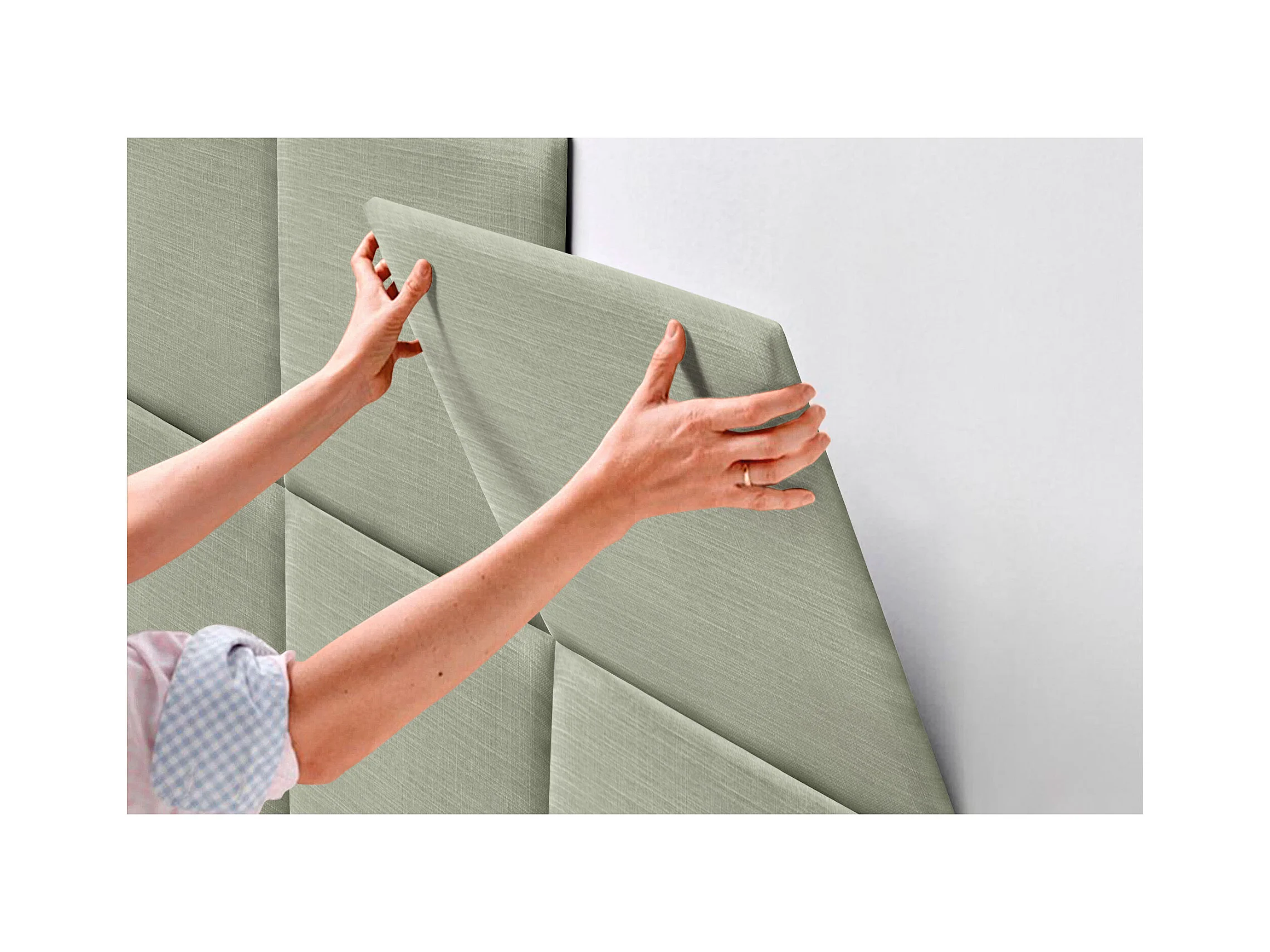 DHOME Gepolstertes Kopfteil aus Naturleinen, bestehend aus austauschbaren selbstklebenden Paneelen, luxuriöses Schlafzimmer gepolstert (Grün, 180 cm)
