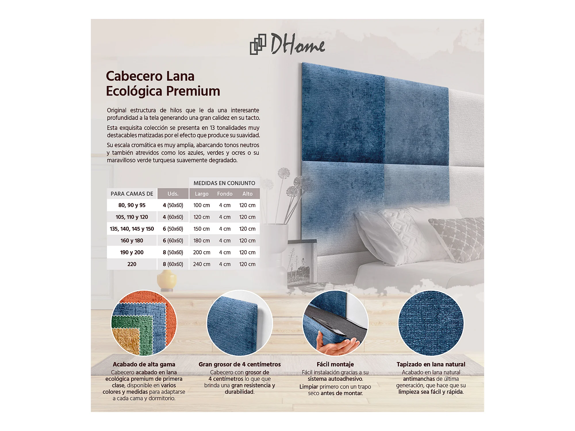 DHOME Gepolstertes Kopfteil aus ökologischer Wolle, bestehend aus austauschbaren selbstklebenden Paneelen, luxuriöses gepolstertes Schlafzimmer (blau, 110cm)