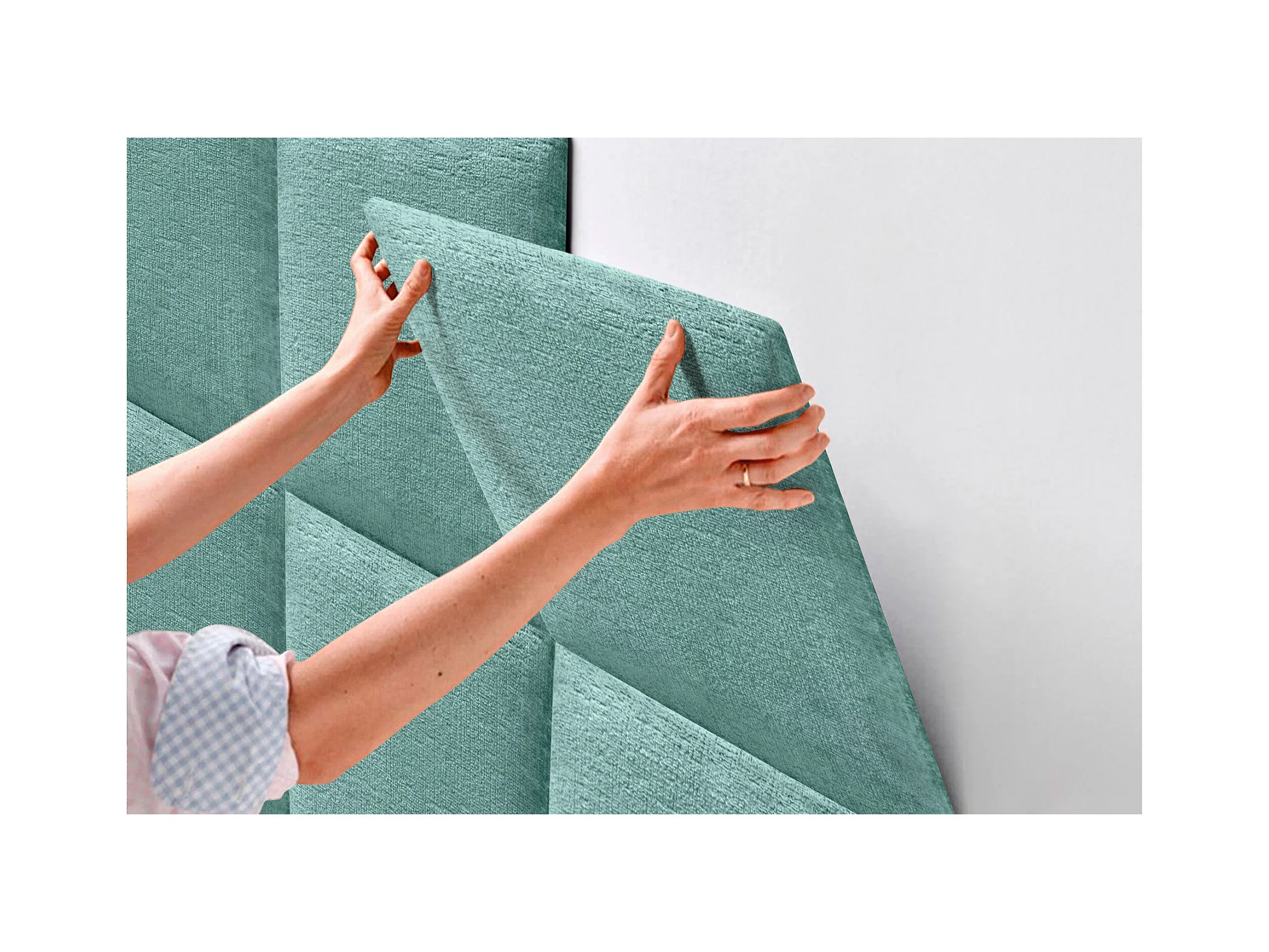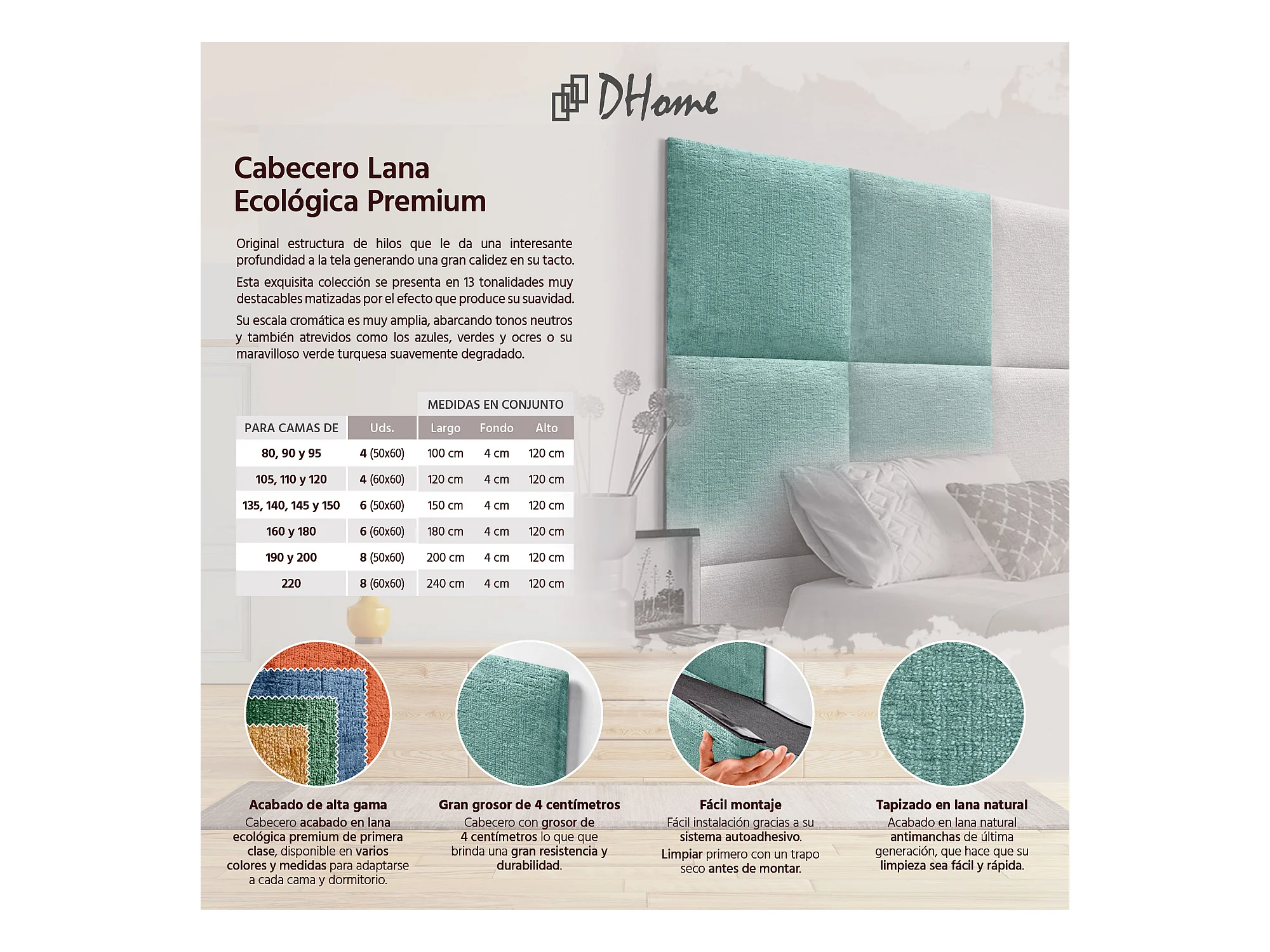 DHOME Gepolstertes Kopfteil aus ökologischer Wolle, bestehend aus austauschbaren selbstklebenden Paneelen, luxuriöses gepolstertes Schlafzimmer (Wassergrün, 145cm)