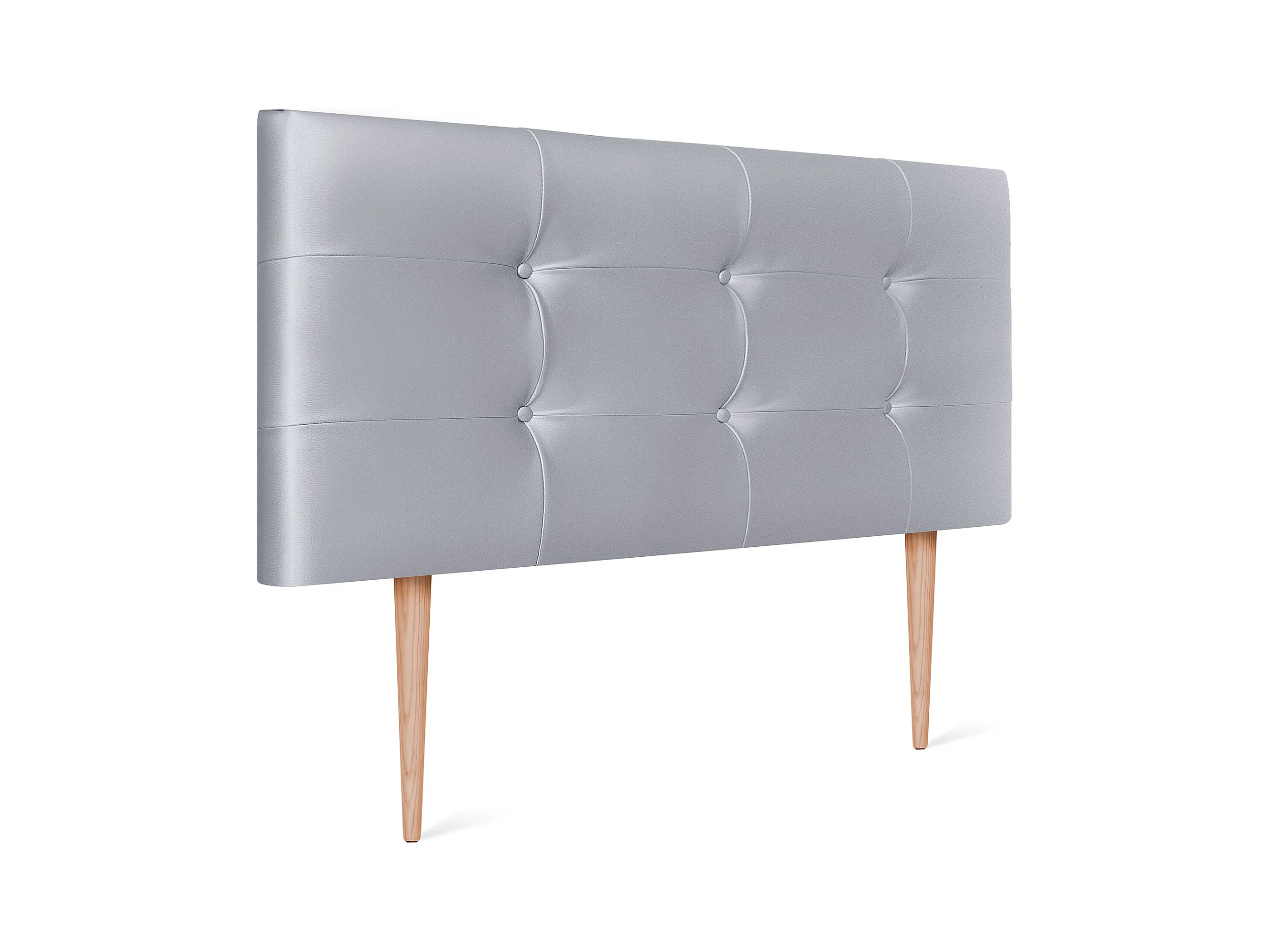 DHOME getuftetes Kunstleder-Kopfteil 110 x 115 cm mit Bettbeinen 105 – Silber