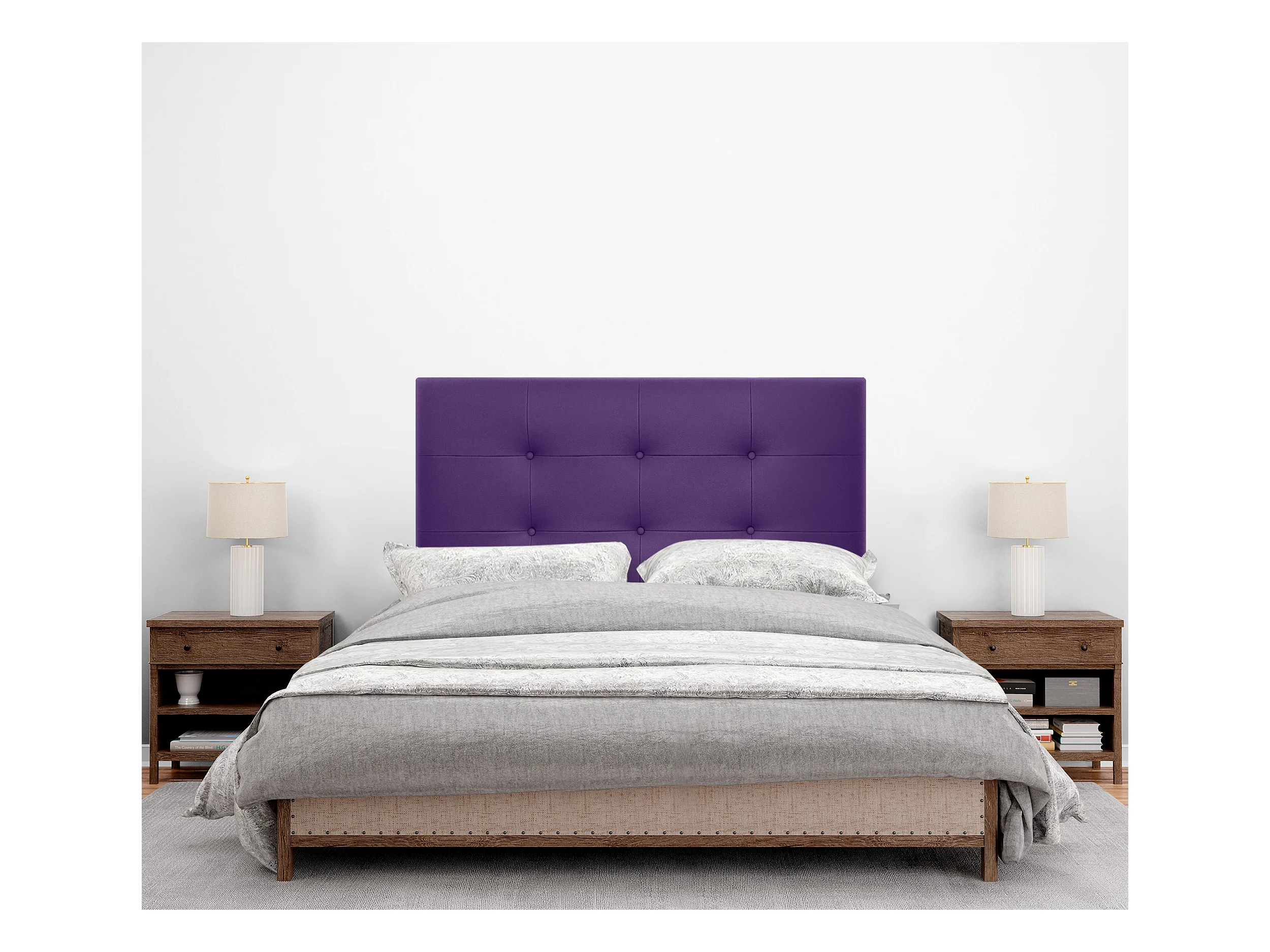 DHOME getuftetes Kunstleder-Kopfteil 90 x 115 cm mit Bettbeinen 80/90 – Lila