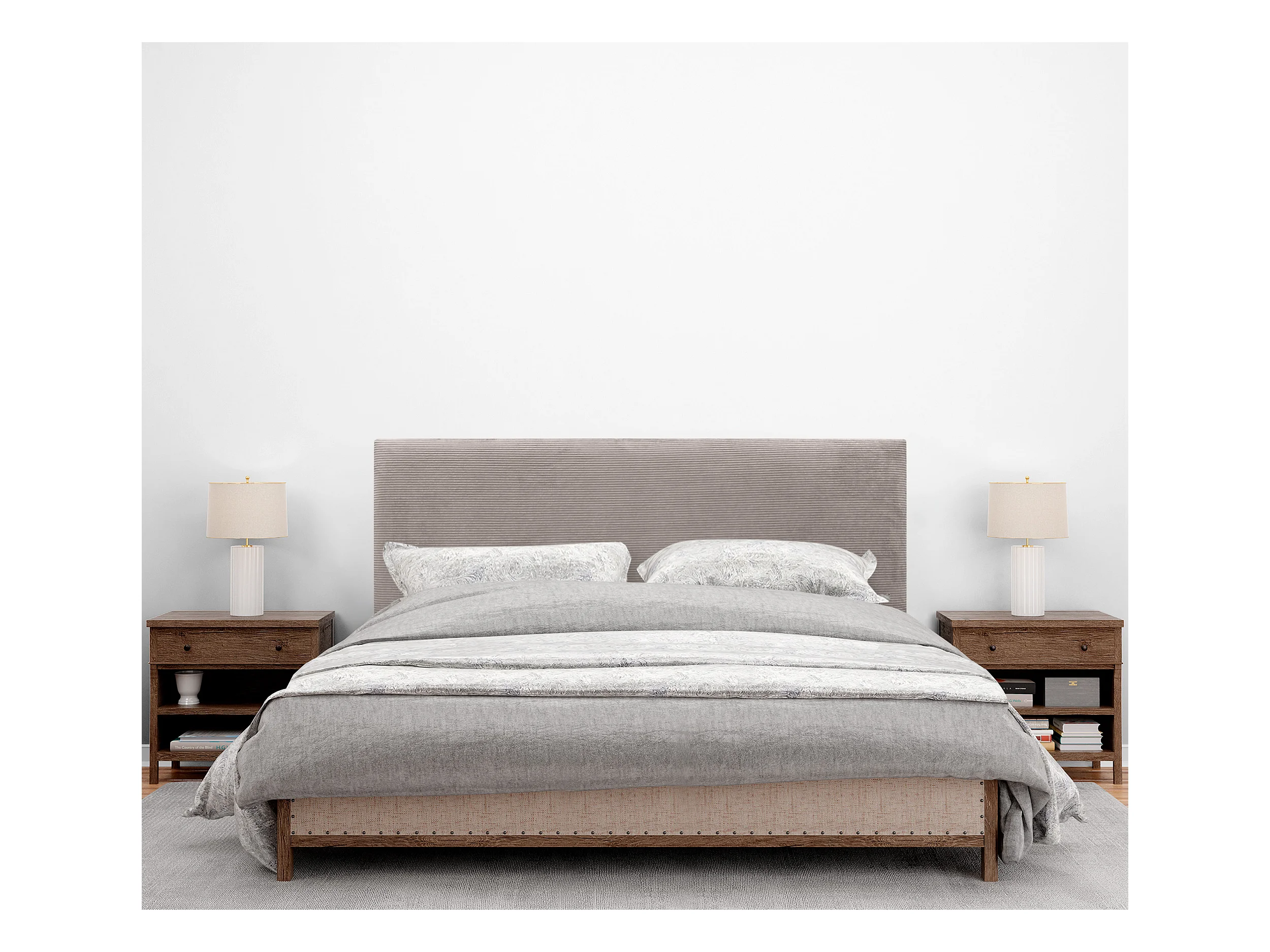 DHOME Glattes Cord-Kopfteil 150x105 mit Bettbeinen 150/160 – Braun