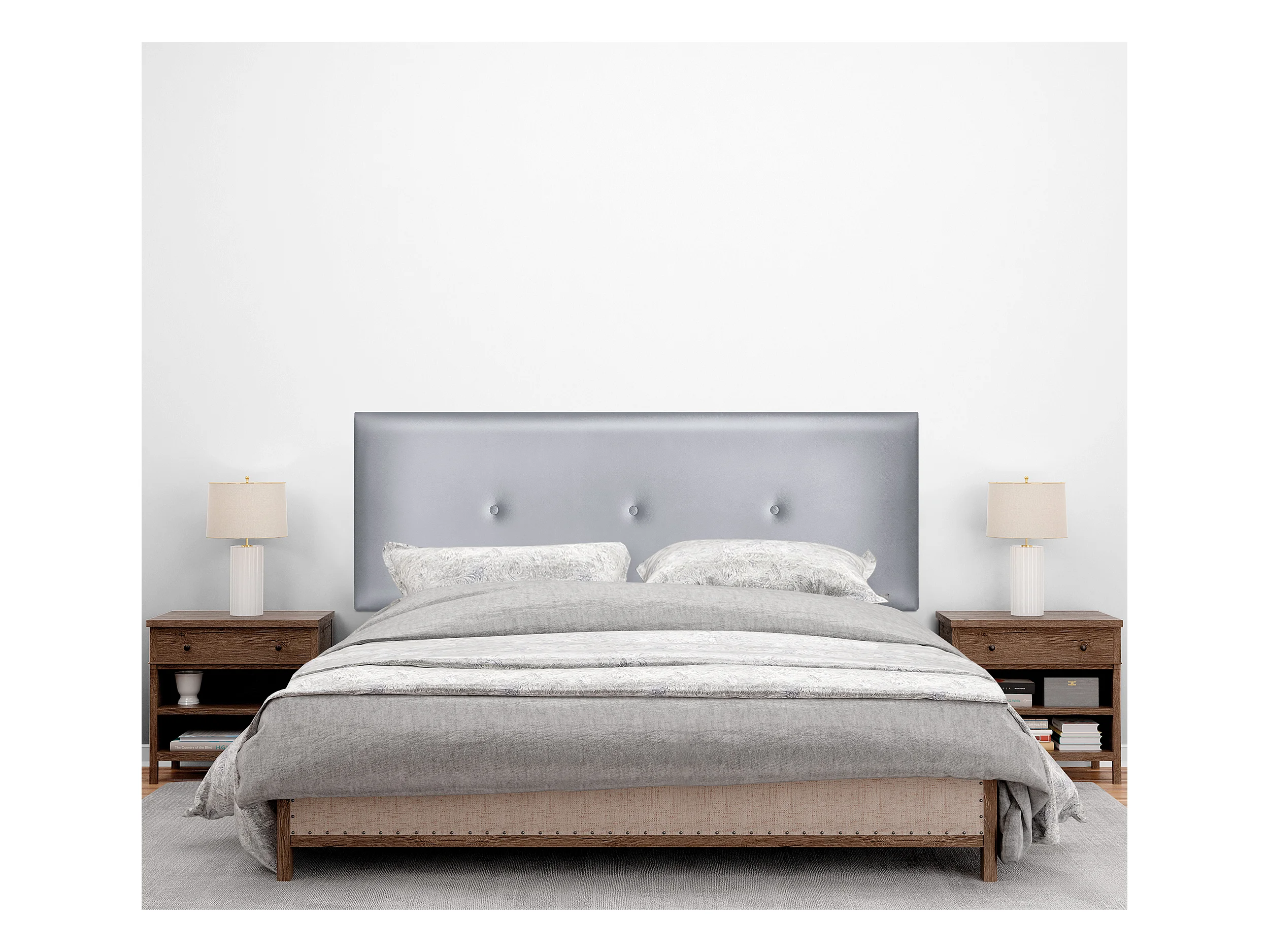 DHOME Kopfteil aus glattem Kunstleder mit Knöpfen 135x50cm Betten 120/135 - Silber