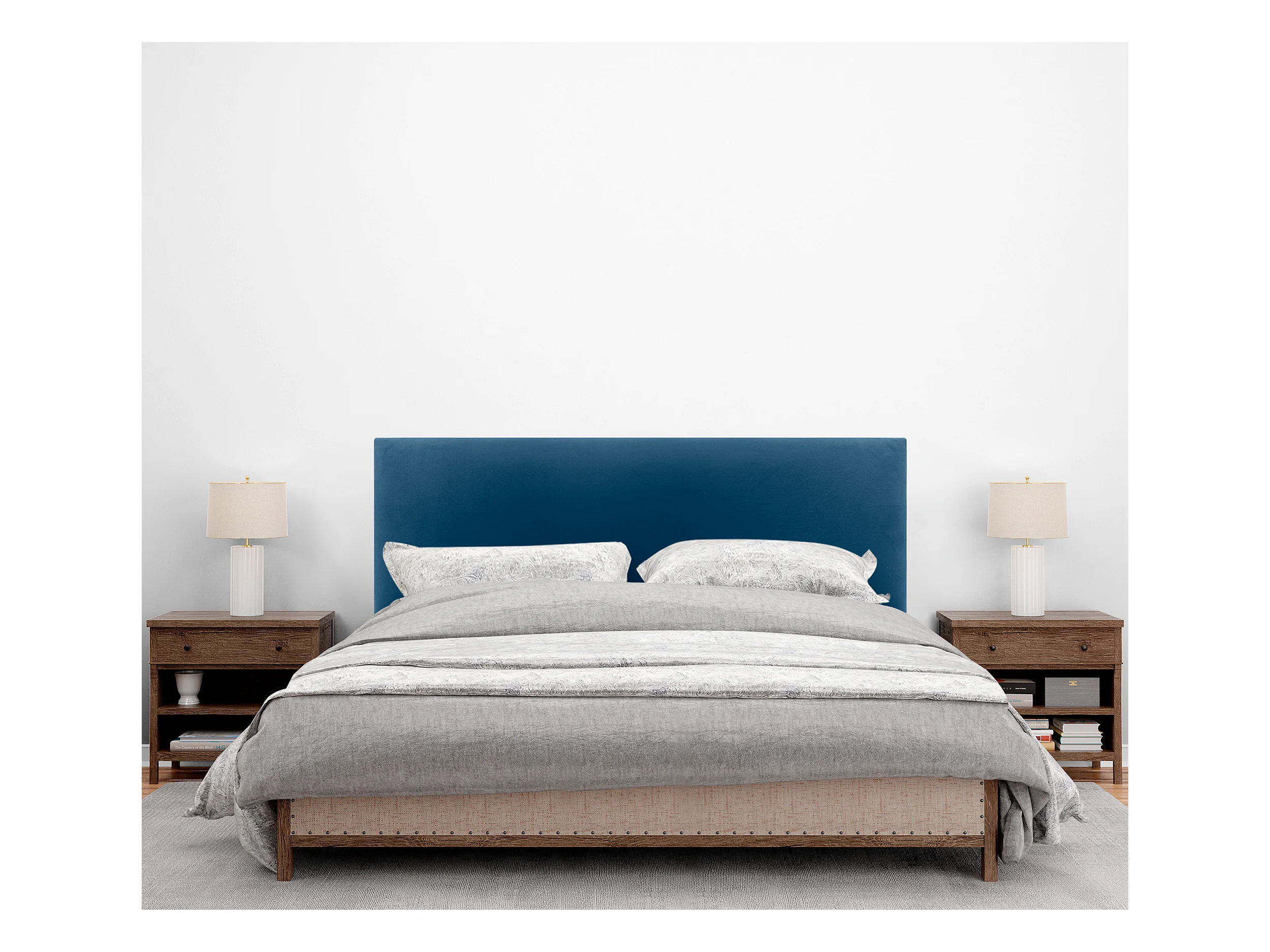 DHOME Kopfteil aus glattem Samt 135 x 115 mit Bettbeinen 120/135/140 – Blau