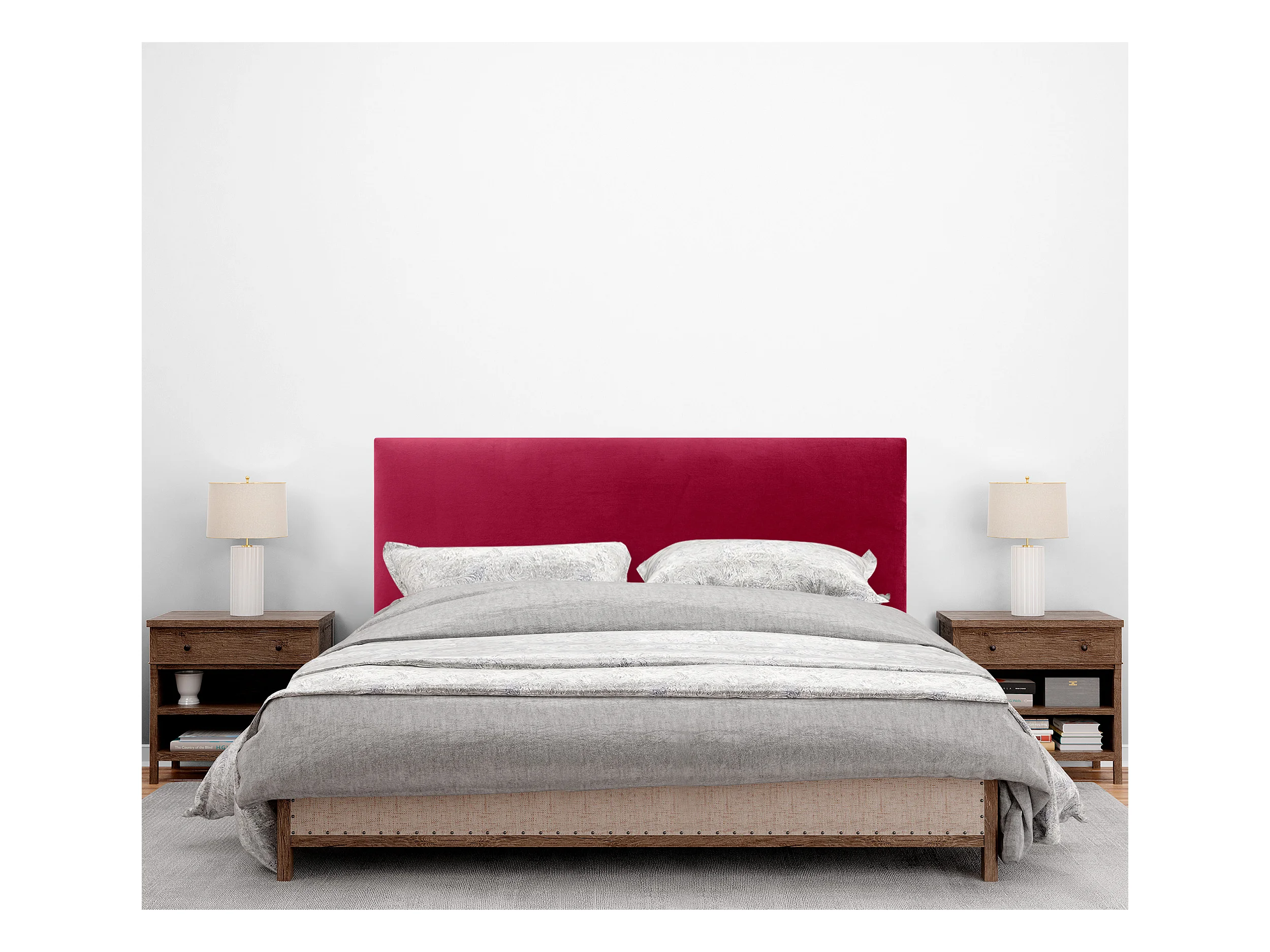 DHOME Kopfteil aus glattem Samt 135 x 115 mit Bettbeinen 120/135/140 – Rot